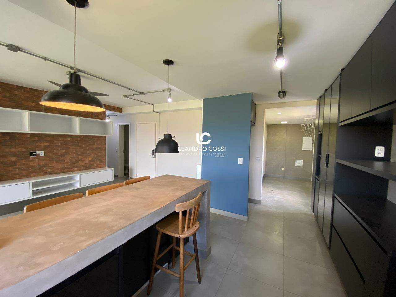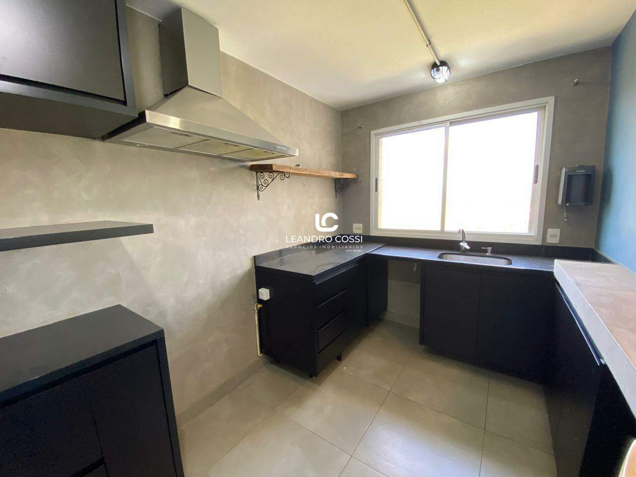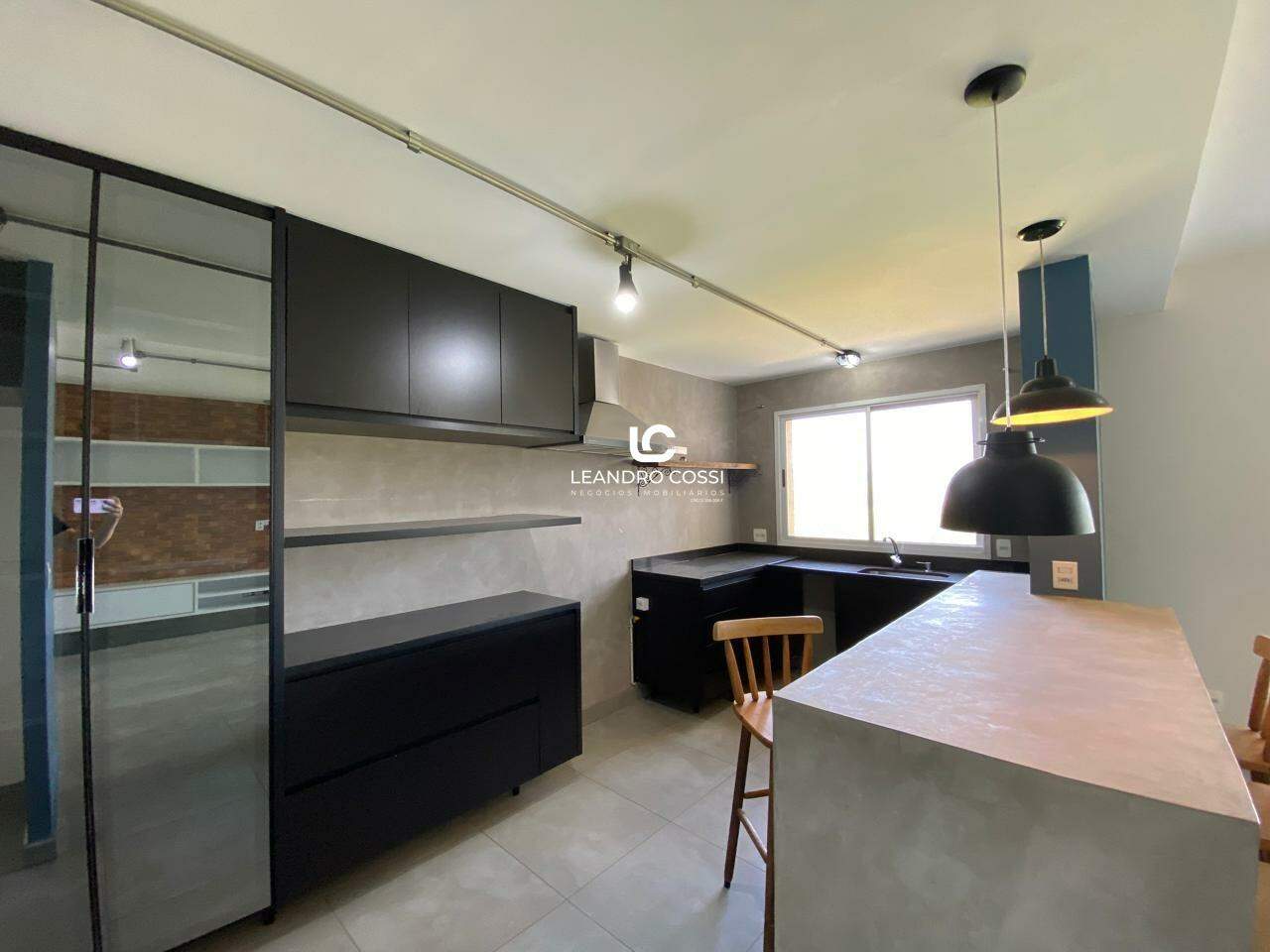 A cozinha, totalmente equipada com planejados, é funcional e moderna, conectando-se de forma prática à área de serviço, também planejada, garantindo organização no dia a dia.