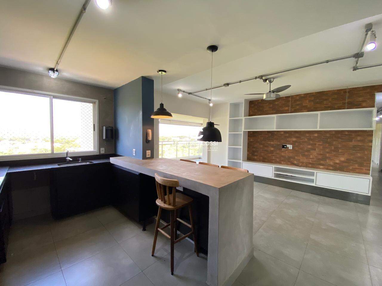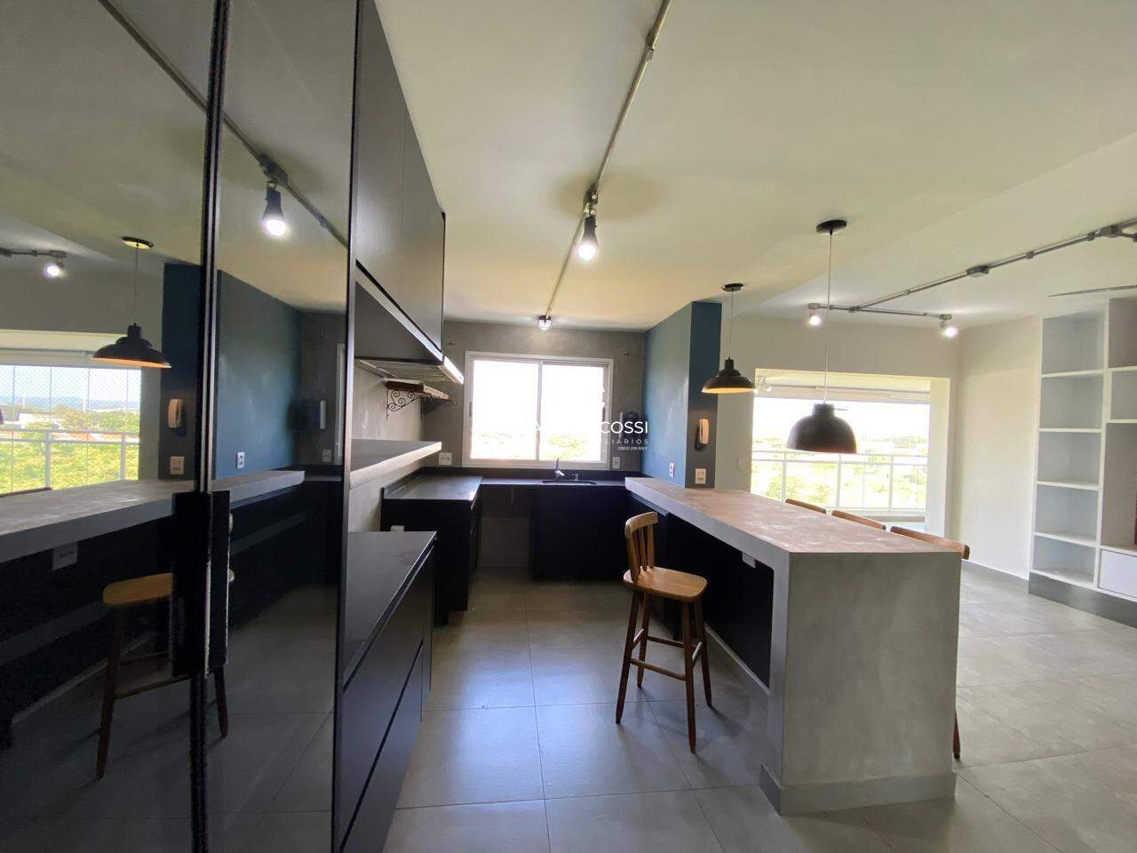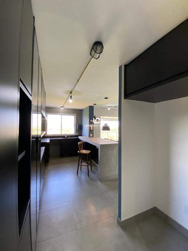 A cozinha, totalmente equipada com planejados, é funcional e moderna, conectando-se de forma prática à área de serviço, também planejada, garantindo organização no dia a dia.