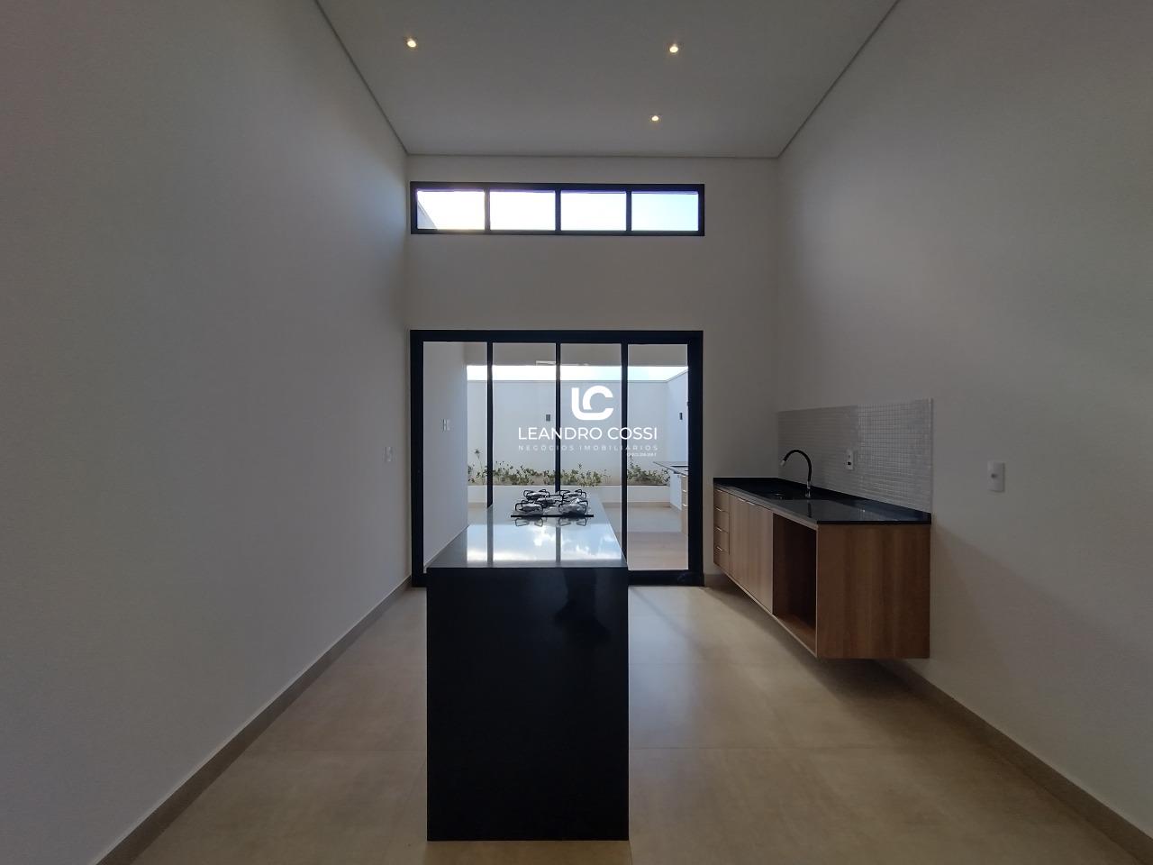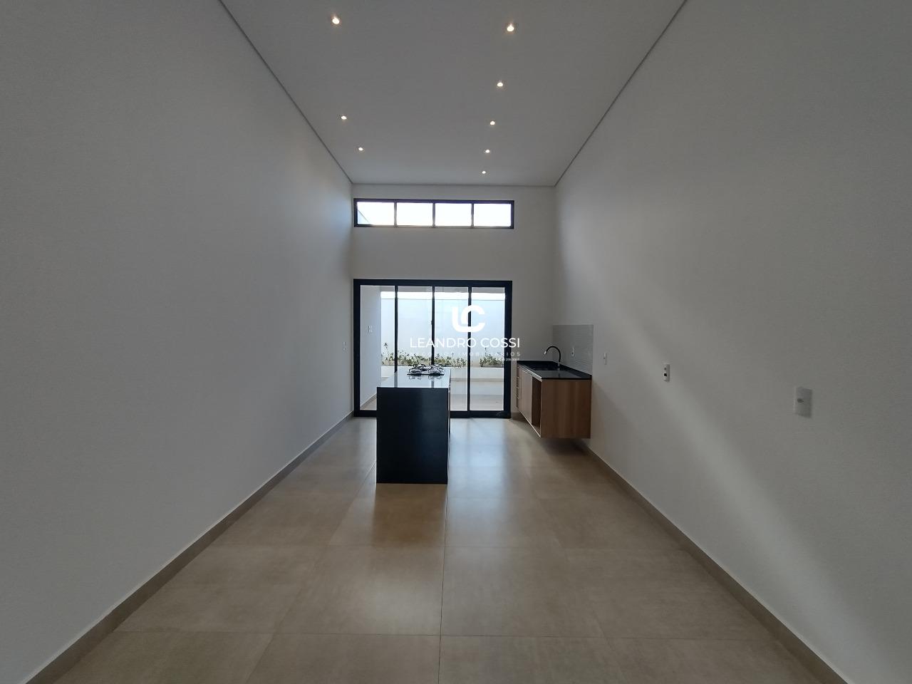 Casa térrea bem iluminada, com 3 dormitórios com armarios, incluindo uma suíte com closet. Conta com lavab, salas de estar e jantar integradas, com pé direito alto, proporcionando sensação de amplitude e conforto. A cozinha moderna possui ilha equipada com cooktop, ideal para quem gosta de cozinhar.
