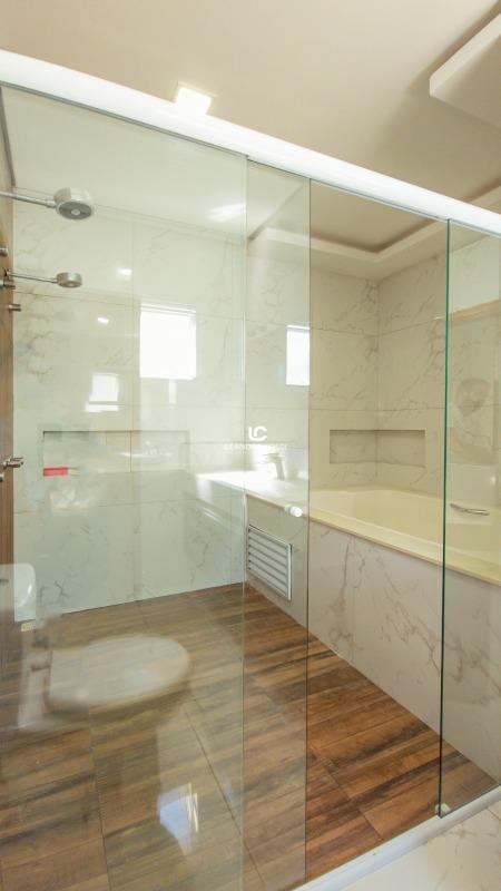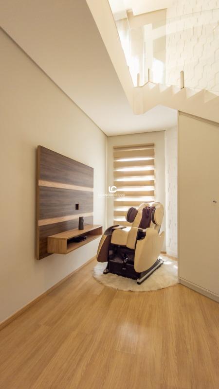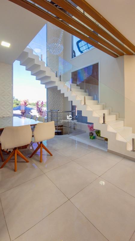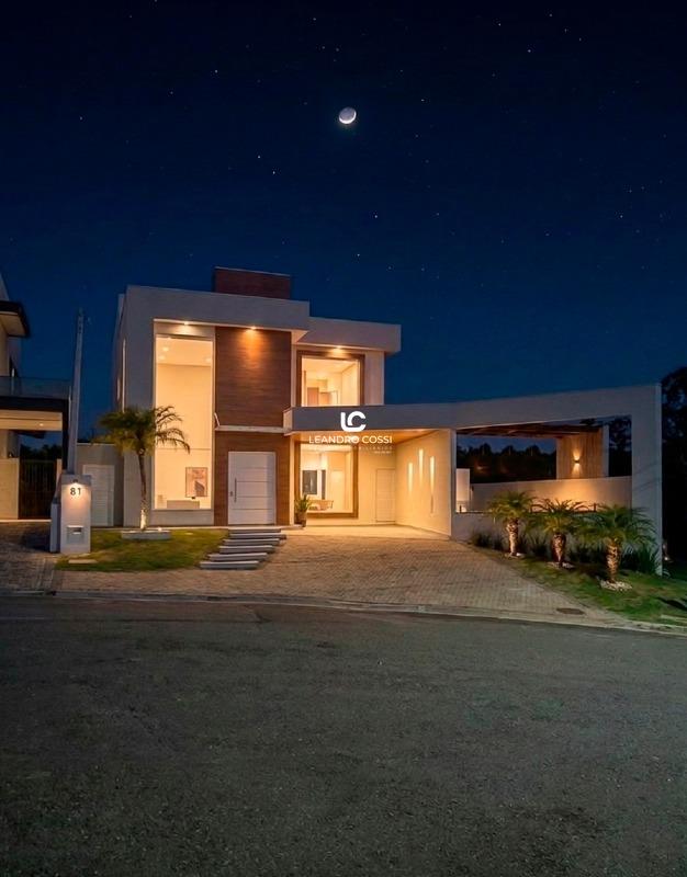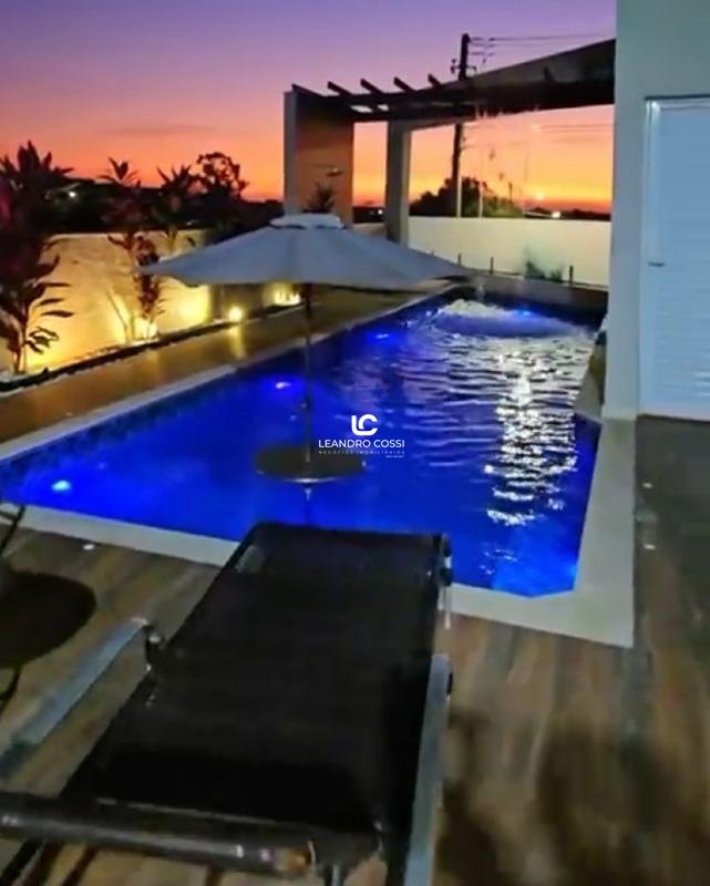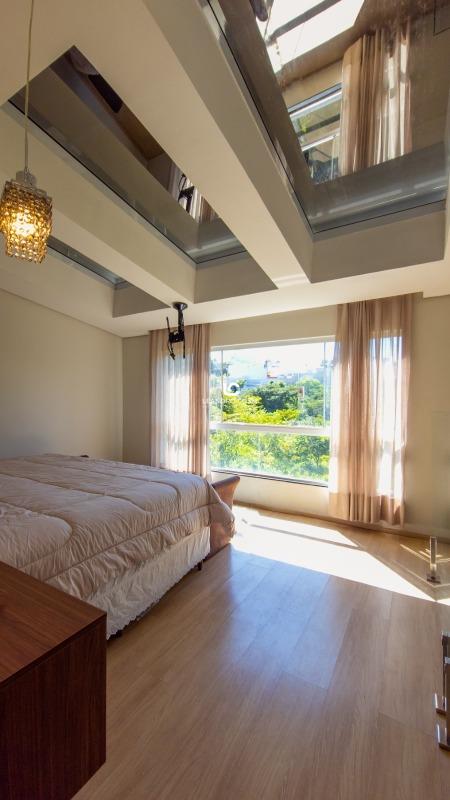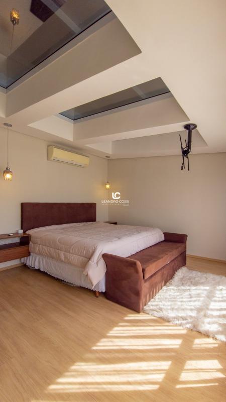 São 350 mts muito bem distribuídos, com 3 maravilhosas suites, sendo 2 suítes completas com guarda roupa e cama Quemm, e 1 suíte master, com closet, hidromassagem , ducha dupla, pia dupla , cadeira de massagem , cama Quing em um mesanino com uma vista de tirar o fôlego, onde você tem a opção de abrir o teto panorâmico automatizado, para contemplar uma vista maravilhosa para a área verde.