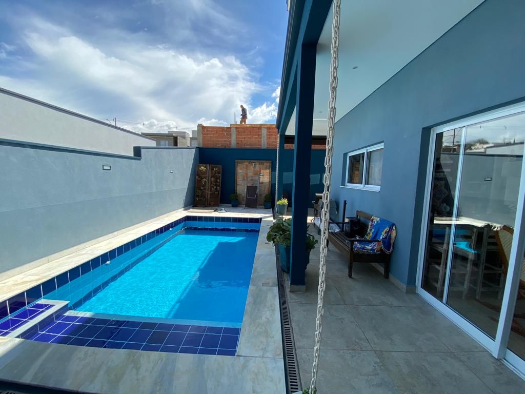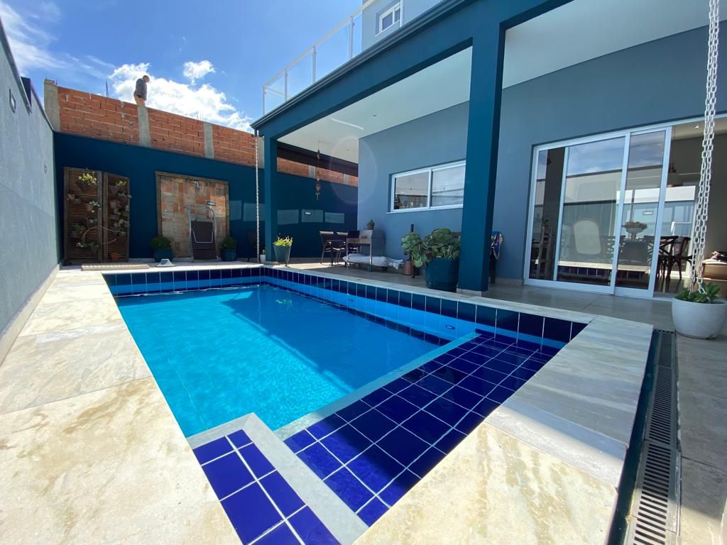 A área externa conta com um agradável espaço gourmet, quintal com piscina e garagem para 4 veículos, sendo 2 vagas cobertas.
