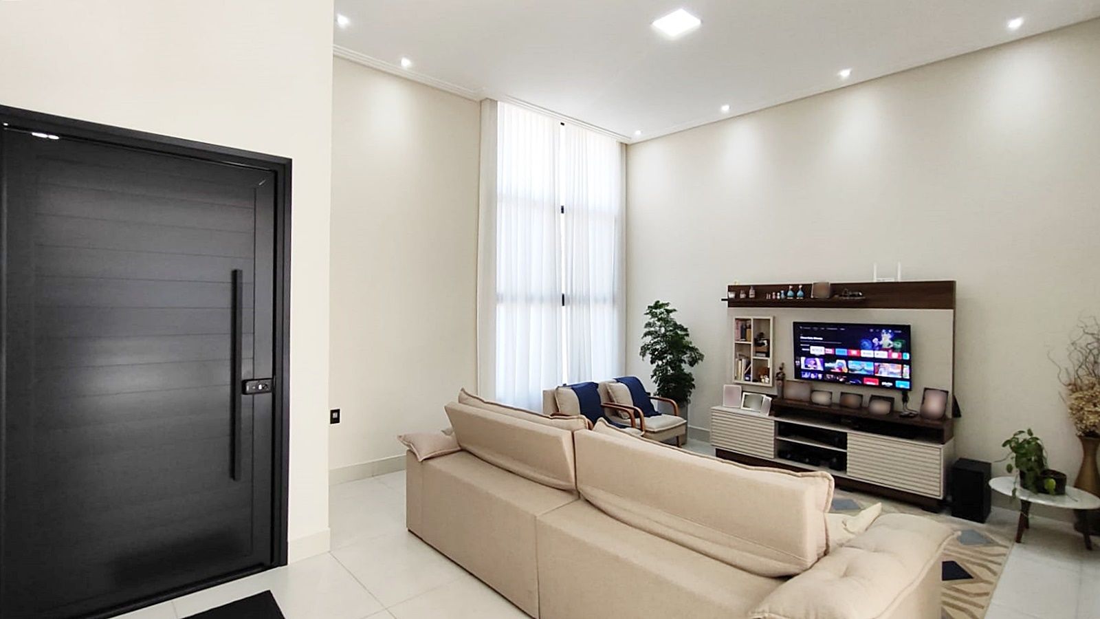 Entre os diferenciais, há ar-condicionado instalado na suíte, infraestrutura pronta nos demais cômodos, preparo para aquecimento solar e persianas elétricas nos dormitórios.