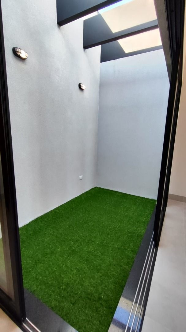 Dispõe ainda de lavabo, banheiro social, área de serviço, e quintal preparado para instalação de piscina e ducha. A garagem comporta até 4 veículos, sendo 2 vagas cobertas.