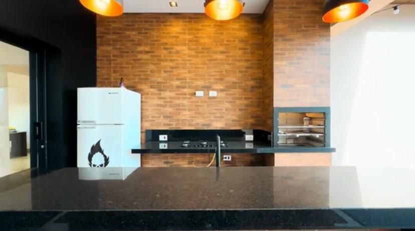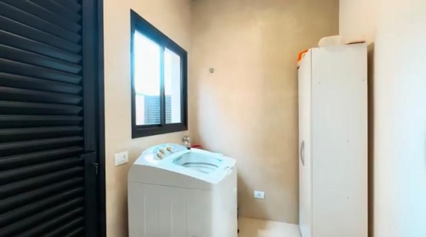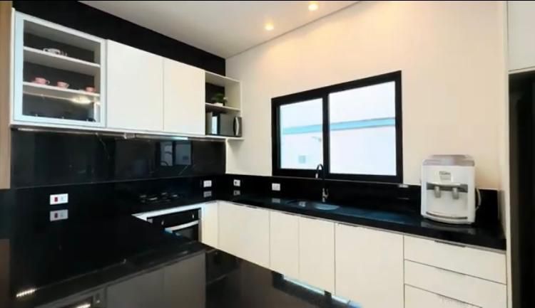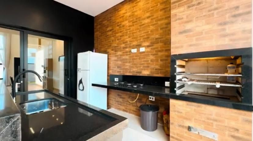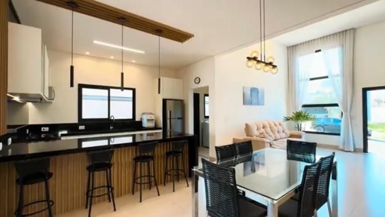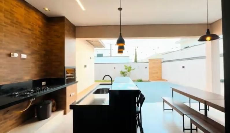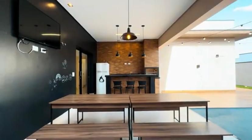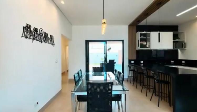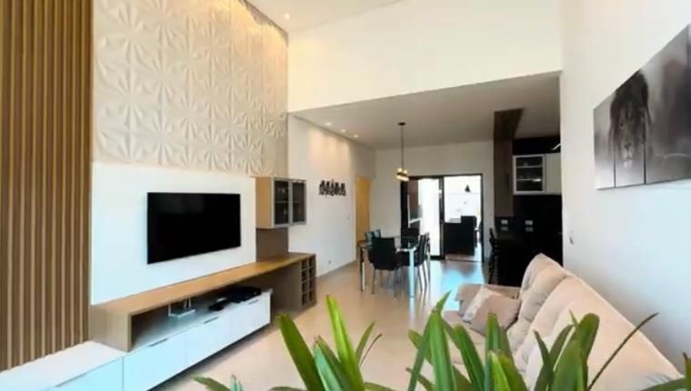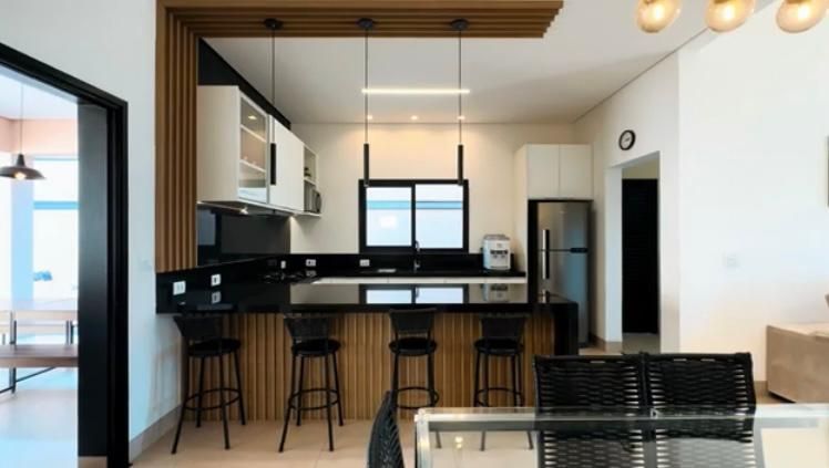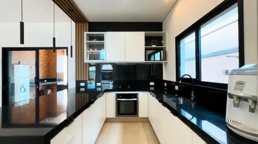 A casa conta com ampla sala de TV, bem iluminada e perfeita para momentos em família ou para receber amigos. A cozinha planejada, repleta de armários modernos, é funcional e oferece espaço para refeições rápidas.
