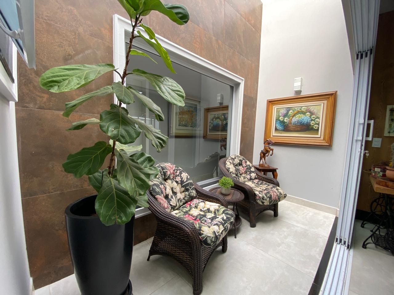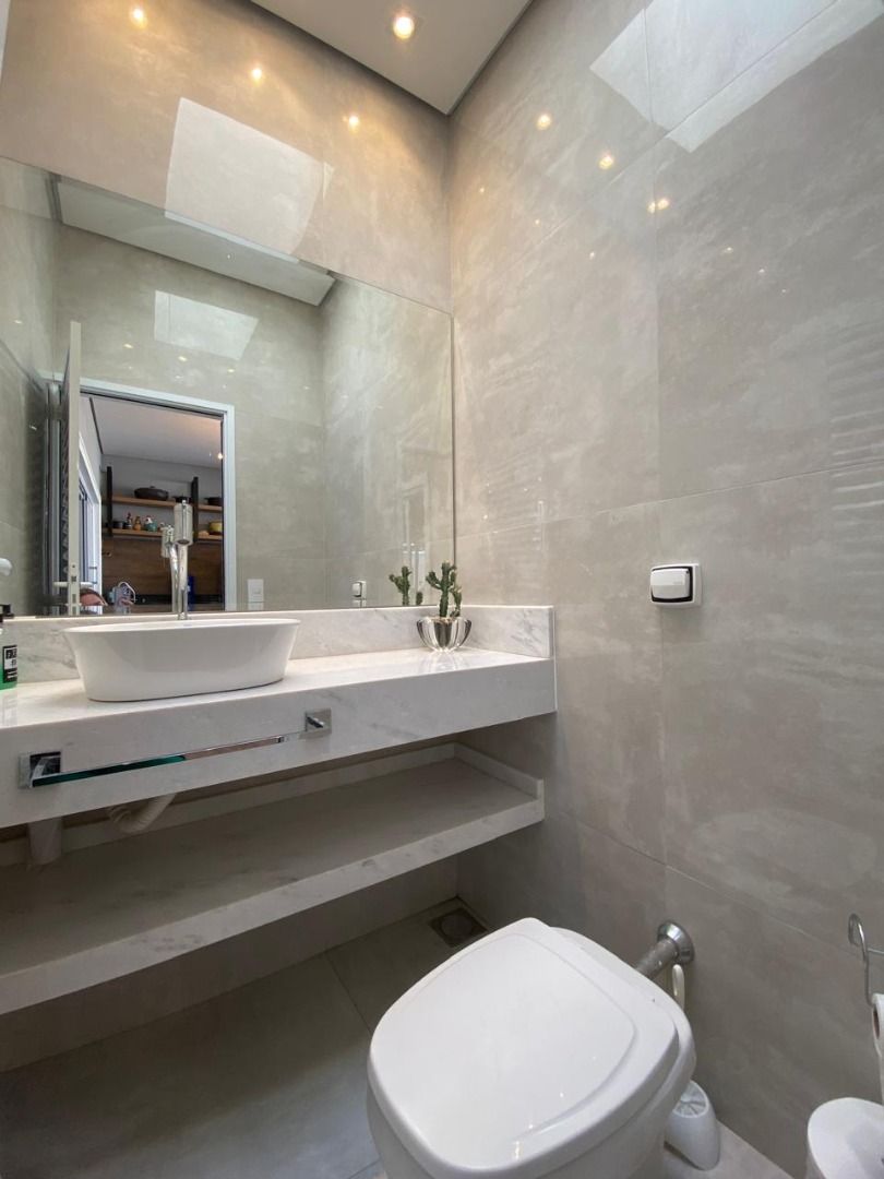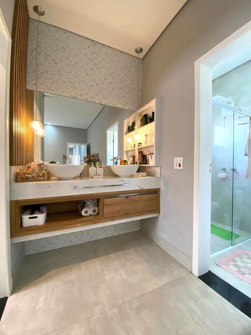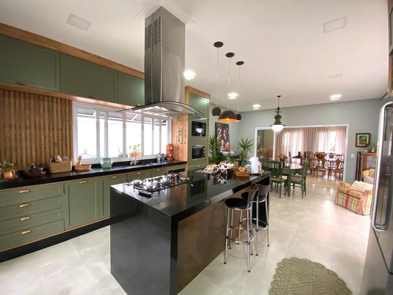 Com ambientes integrados e muita luz natural, a residência proporciona conforto e interação aos moradores. Possui 3 suítes, sendo 1 master com closet. O pé direito alto da sala de TV traz sensação de amplitude e bem-estar, além de lavabo e sala de jantar com abundante iluminação natural.