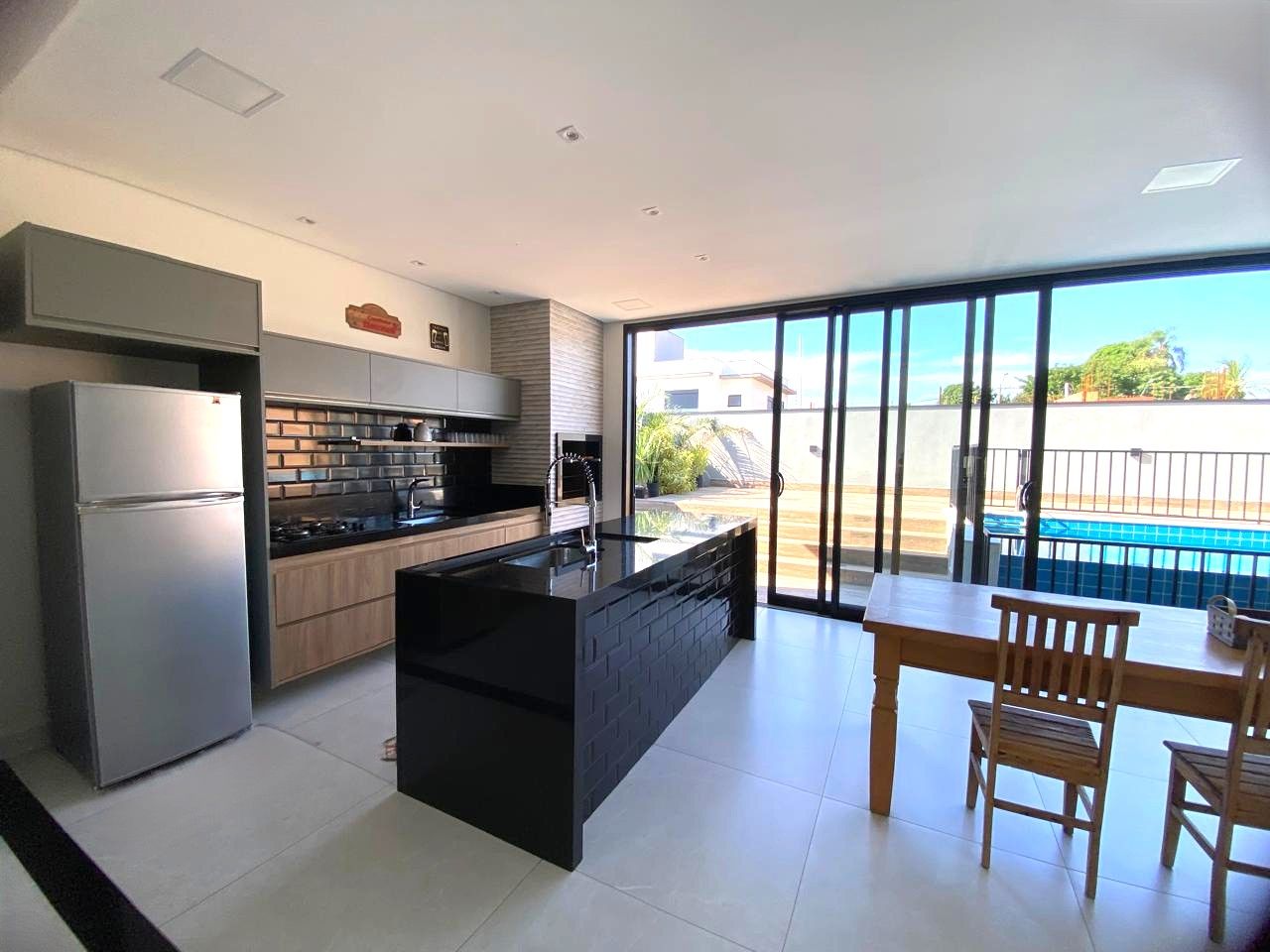 Composta por 3 suítes, a residência foi cuidadosamente projetada para proporcionar um ambiente aconchegante e funcional. A cozinha é um destaque à parte, repleta de armários planejados, ideal para quem aprecia cozinhar e receber amigos. O espaço gourmet também conta com planejados e uma ilha, além de oferecer uma vista encantadora para a piscina, perfeita para momentos de lazer.