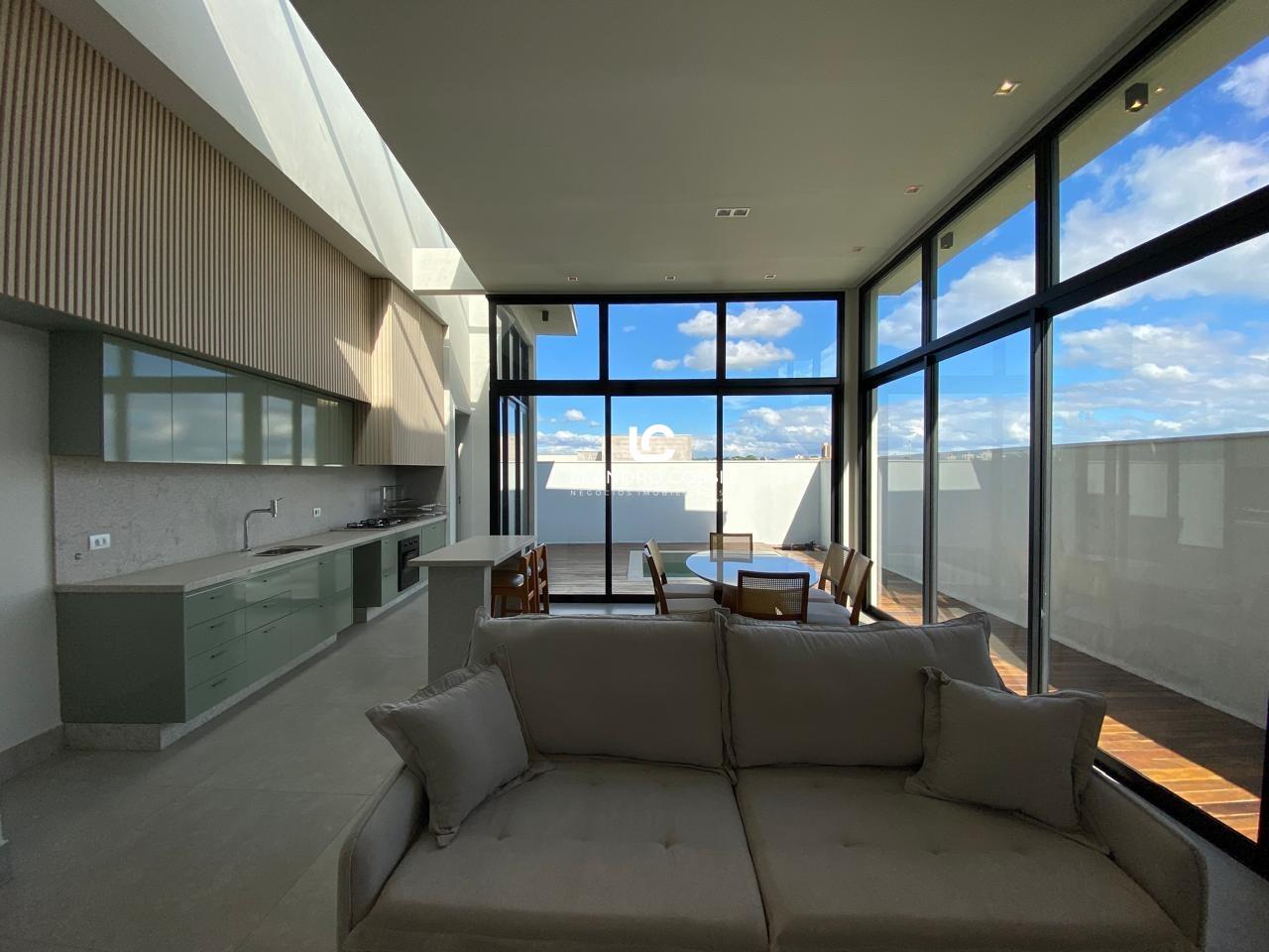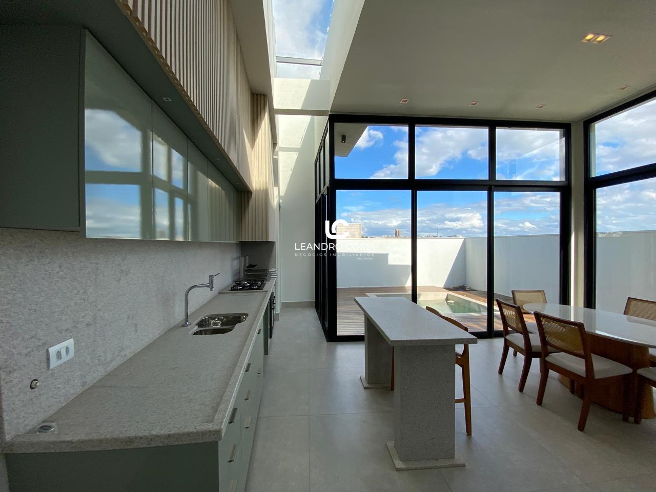 A cozinha gourmet é integrada, perfeita para receber amigos e familiares, e o imóvel ainda dispõe de lavabo, escritório (ideal para home office) e lavanderia.