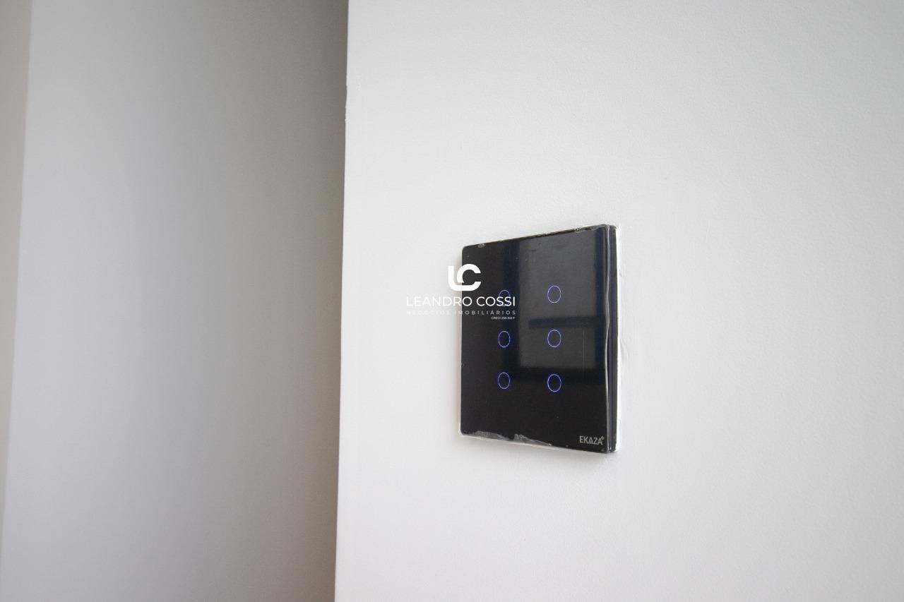 A residência conta ainda com lavanderia com bancada em granito e armário planejado, despensa e garagem para dois veículos, com acabamento diferenciado em pedra madeira e estrutura metálica aparente. O imóvel possui cinco pontos de infraestrutura para ar-condicionado distribuídos nos principais ambientes, iluminação automatizada com sistema touch compatível com Alexa, Android e iOS, além de pintura em textura granfino em toda a área externa e nos muros.