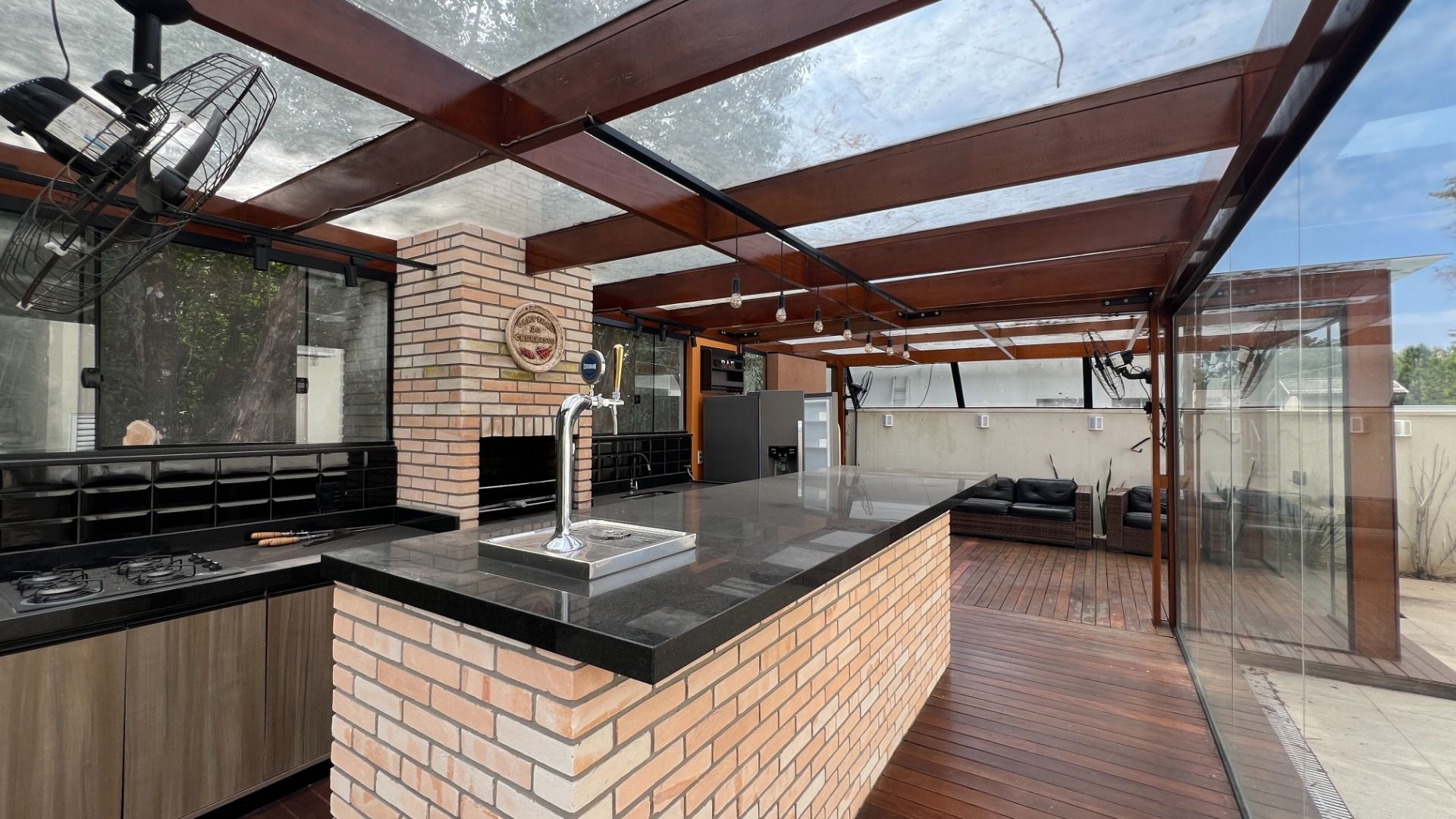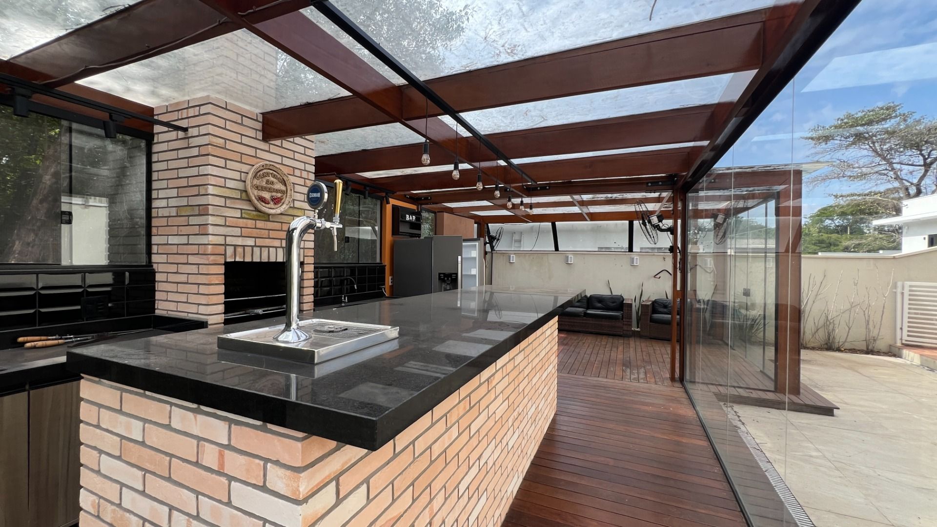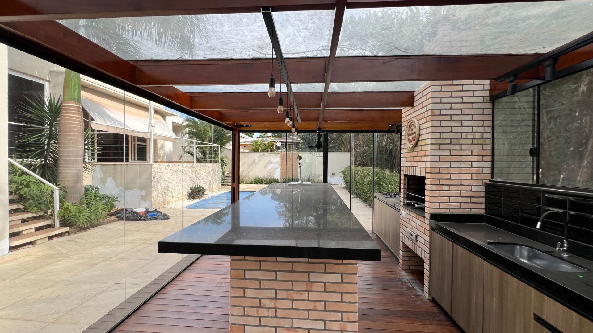 Na área externa, a casa oferece um verdadeiro refúgio de lazer. Piscina aquecida, espaço gourmet completo com churrasqueira e chopeira, além de uma vista livre para a área verde nos fundos do terreno, proporcionando mais privacidade e conexão com o meio ambiente. Outro diferencial importante é o sistema de energia fotovoltaica instalado, que garante sustentabilidade e economia na conta de luz.