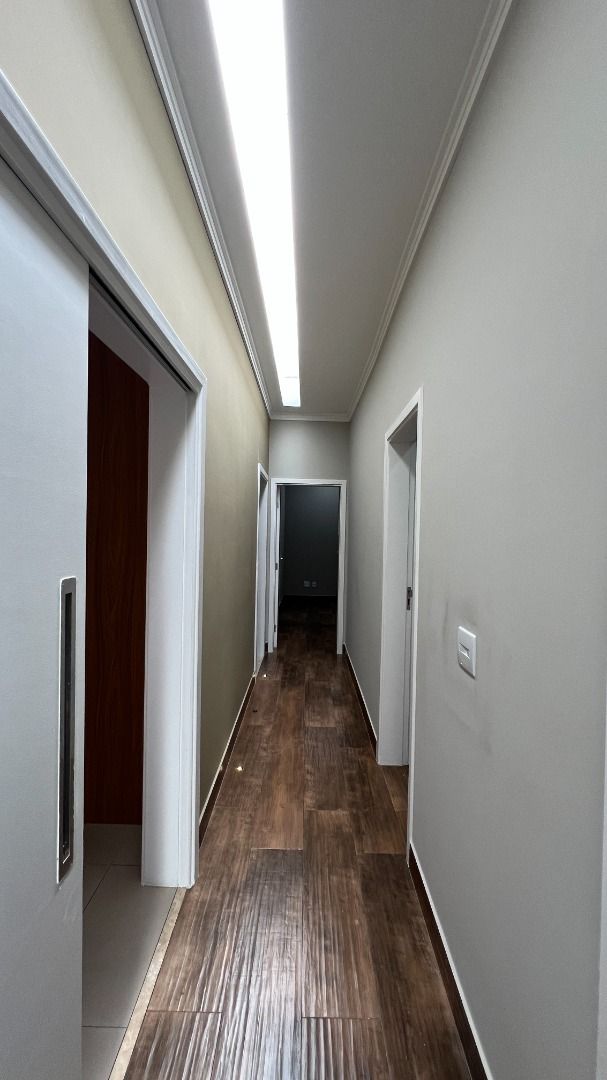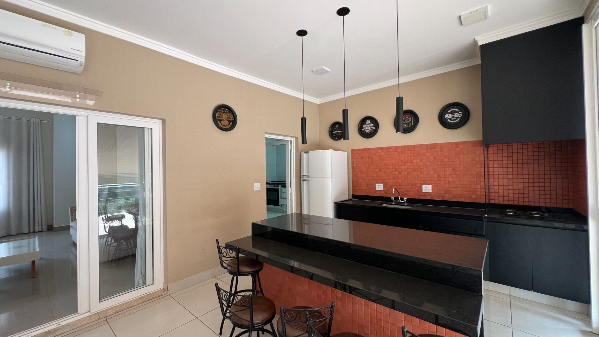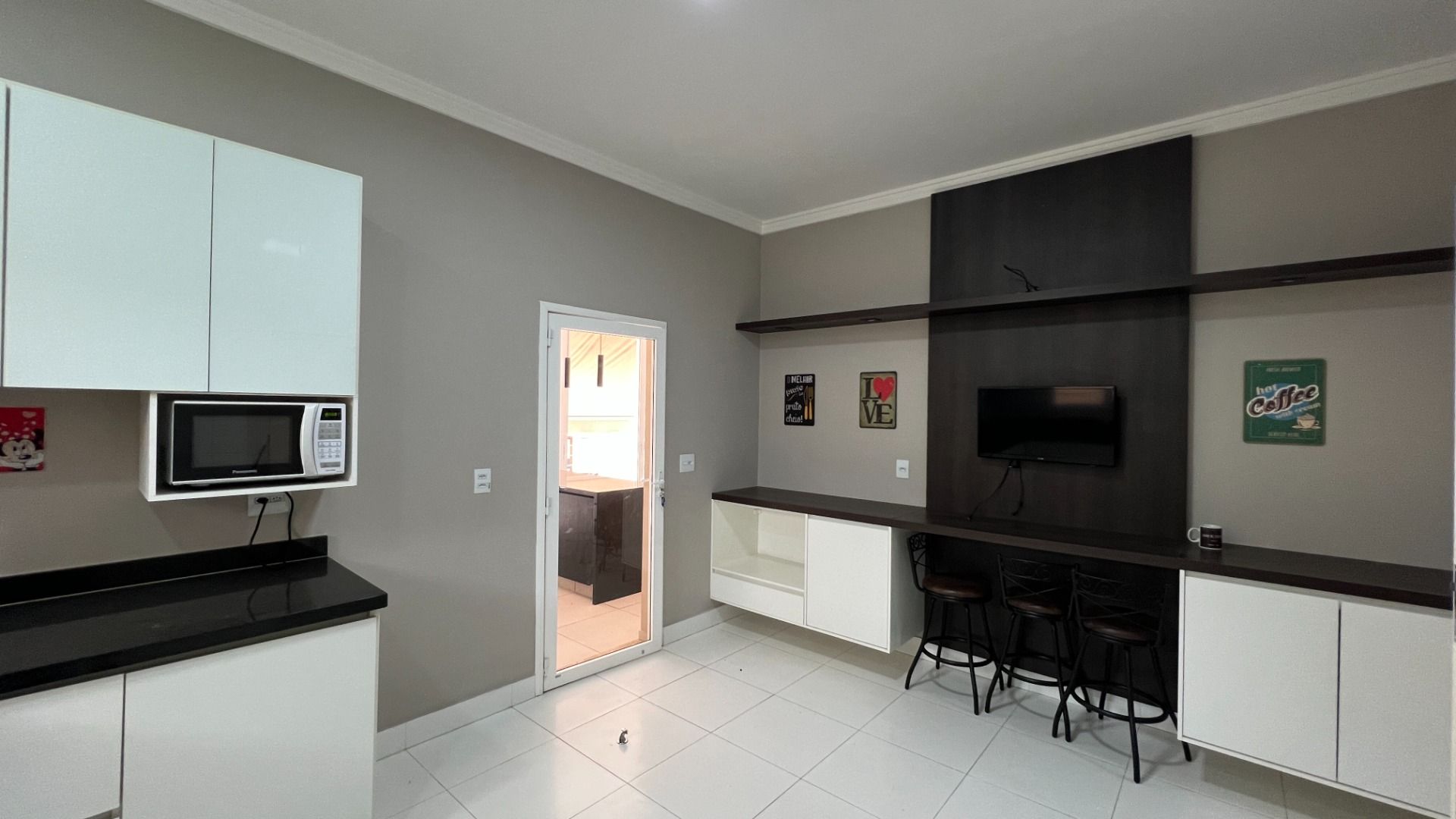 A casa conta com ampla sala de visita integrada ao espaço gourmet, ideal para receber amigos e familiares com praticidade e sofisticação. A cozinha é equipada com móveis planejados e conectada à lavanderia funcional, também com armários embutidos.