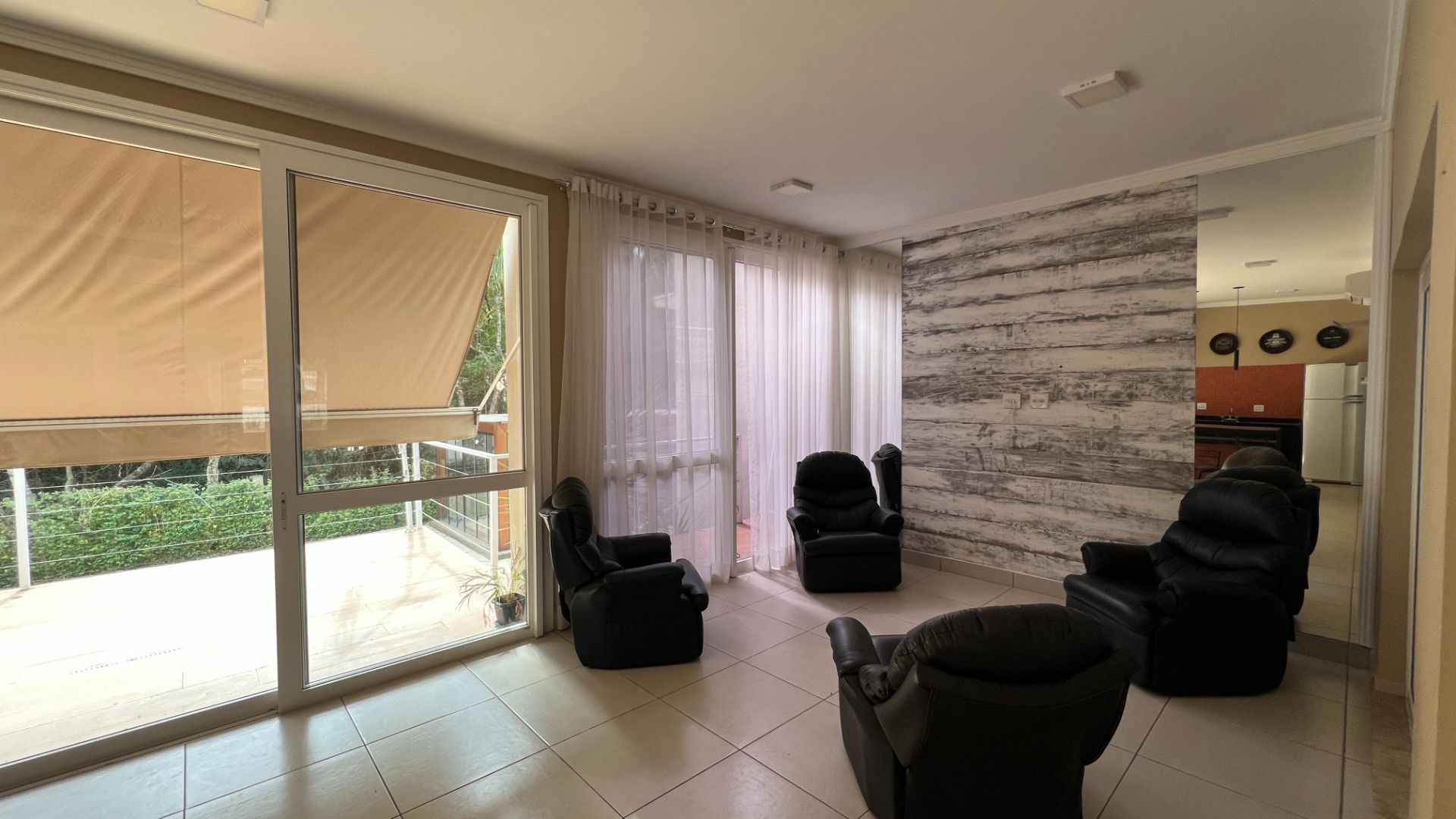O imóvel possui três dormitórios, sendo duas suítes com armários embutidos, uma delas com closet, além de um terceiro quarto com móveis planejados que pode ser utilizado como quarto de hóspedes ou home office. Dispõe ainda de lavabo de apoio e uma sala de estar acolhedora, com ótima iluminação natural.