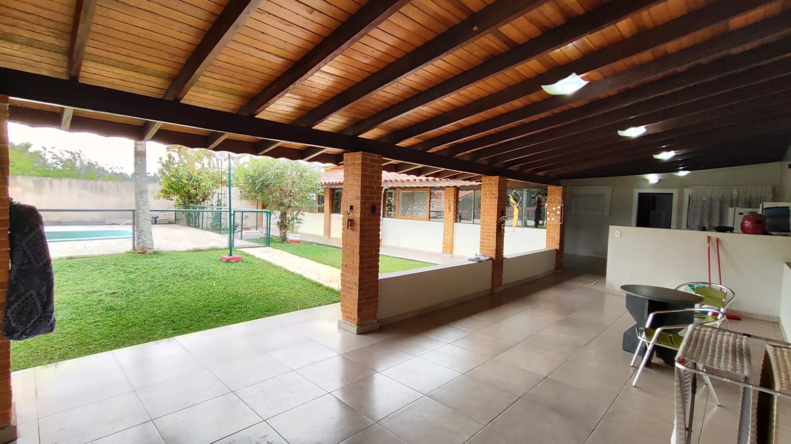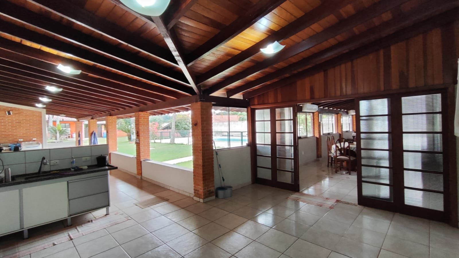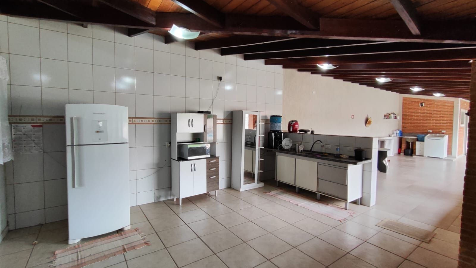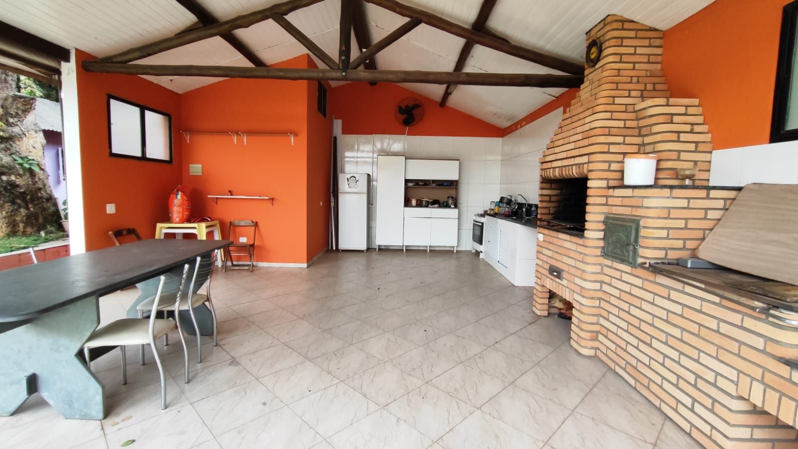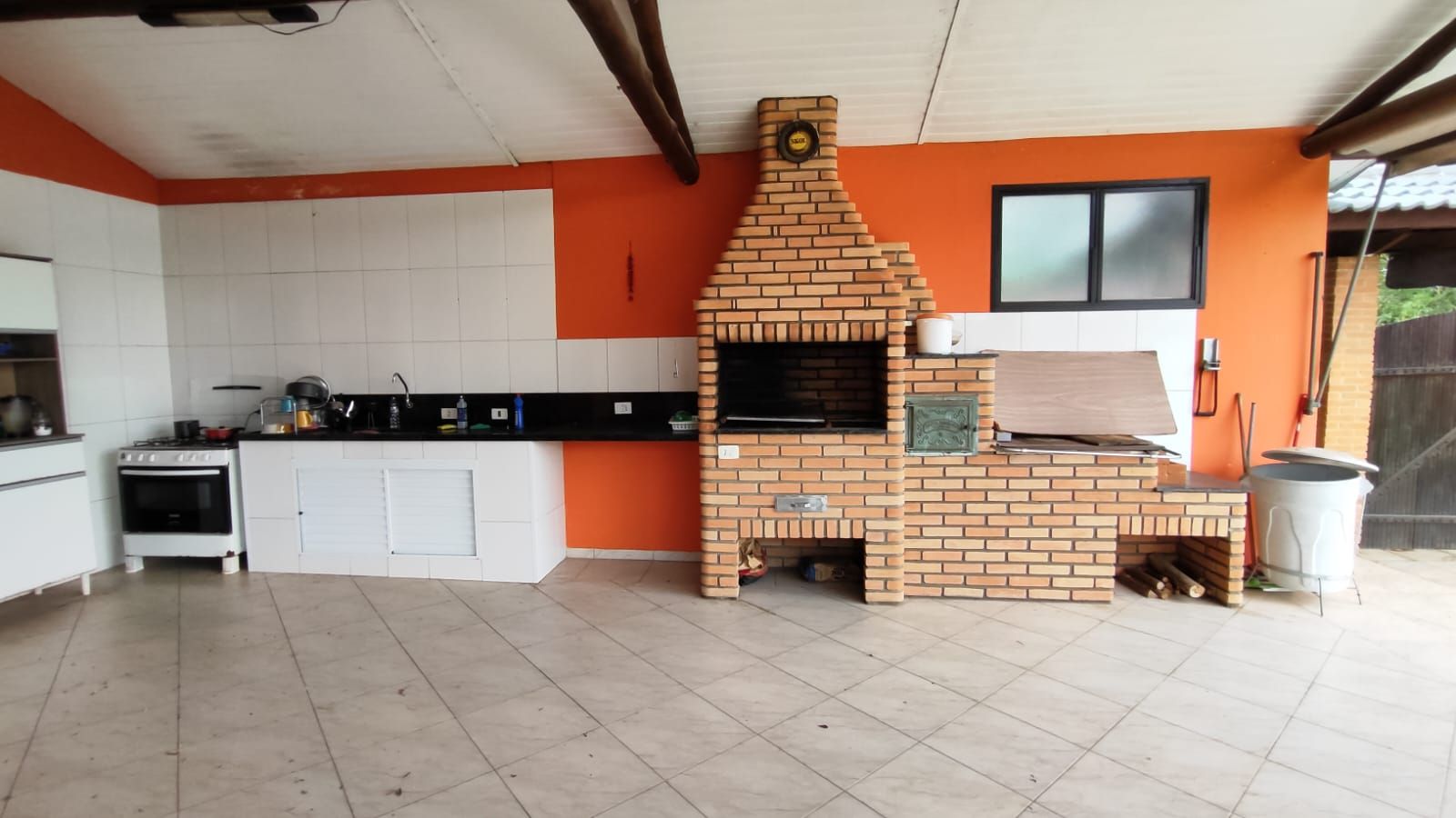 Amplo espaço gourmet com churrasqueira, pia e banheiro