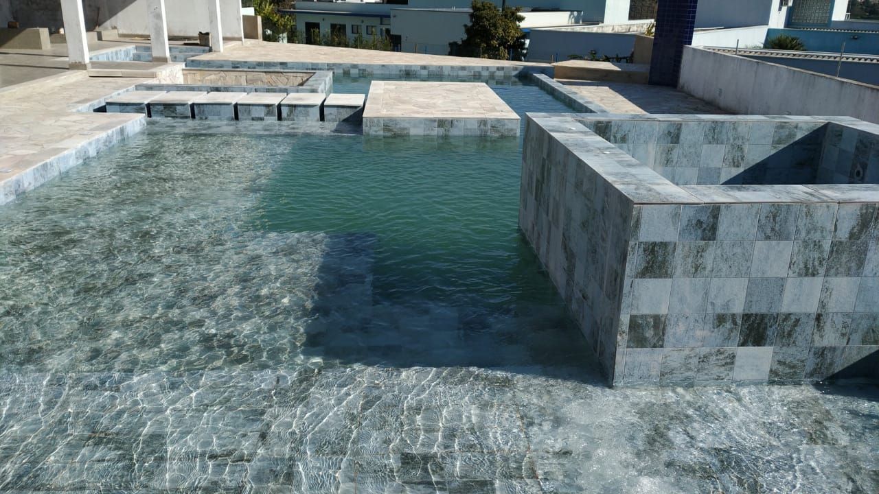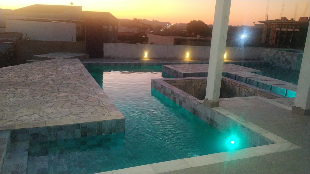 Projeto em construção: área gourmet e piscina.