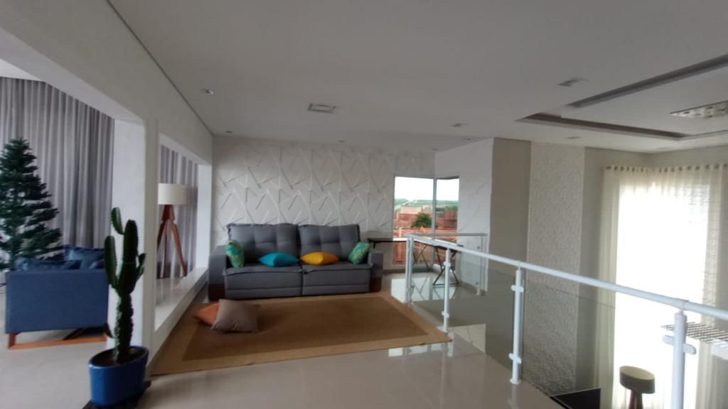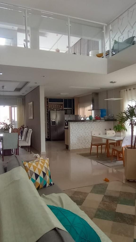 No mezanino, há uma sala para home theater, sala de leitura e sala de estar, podendo ser adaptada para sala de jogos. O imóvel possui acesso interno e externo pelo espaço gourmet, que dispõe de 40 m² de sala, cozinha independente, completa, além de churrasqueira.