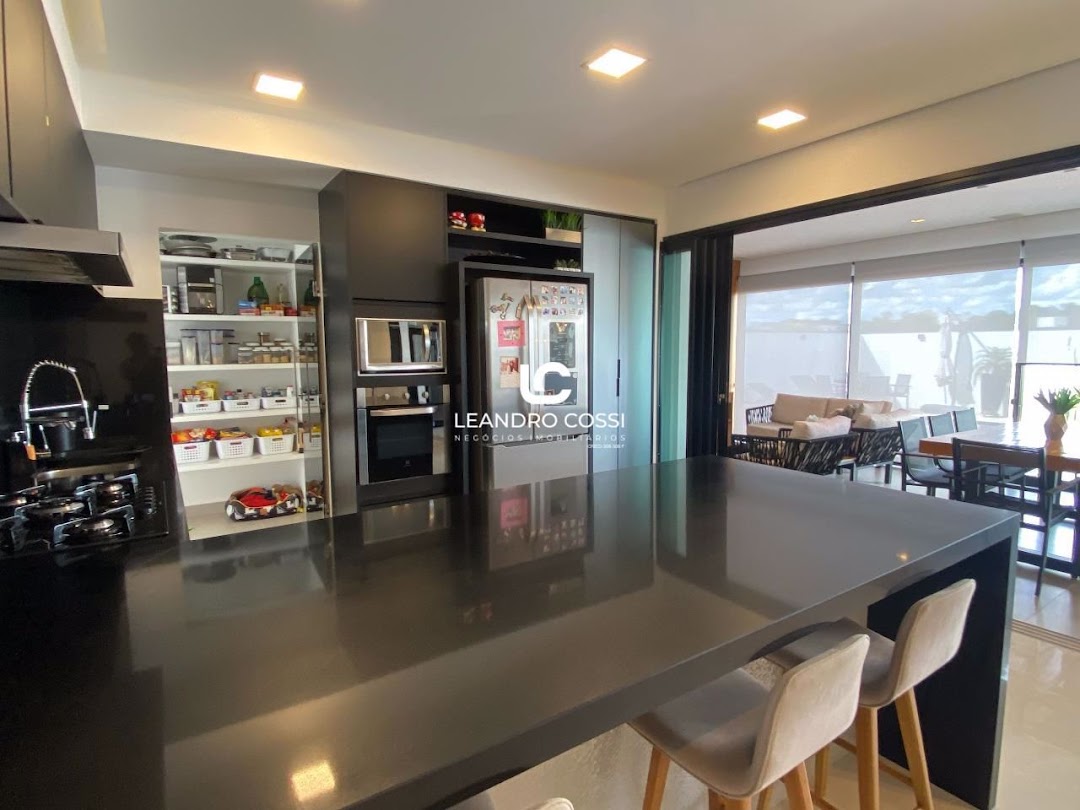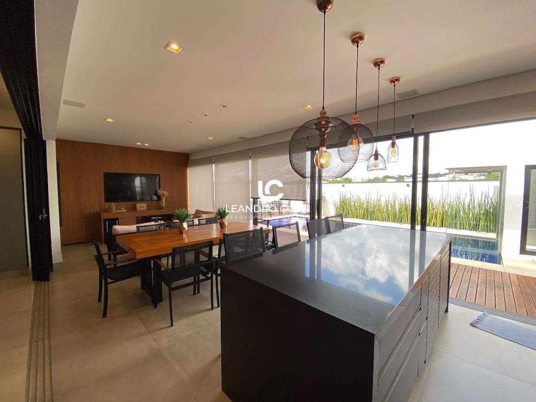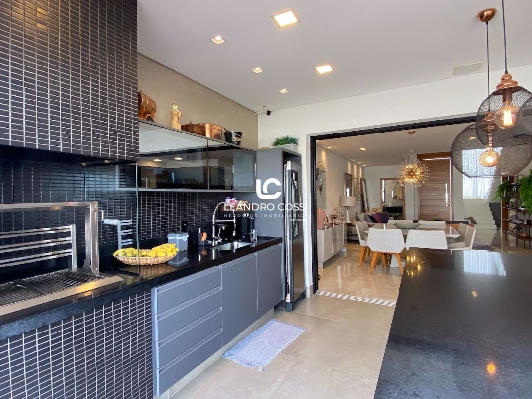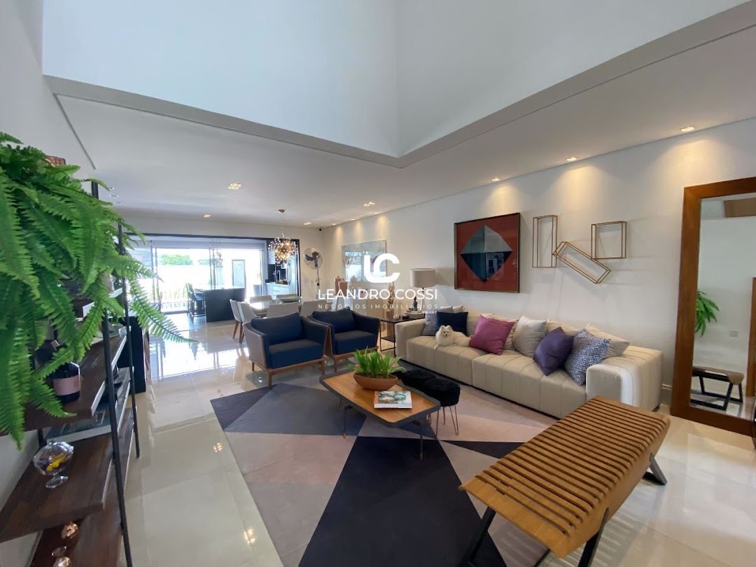 Dispõe de 3 suítes com closet, sala de dois ambientes e home cinema. Conta também com cozinha com ilha e despensa, lavabo e lavanderia coberta.