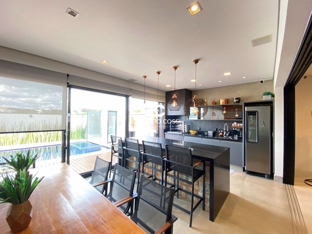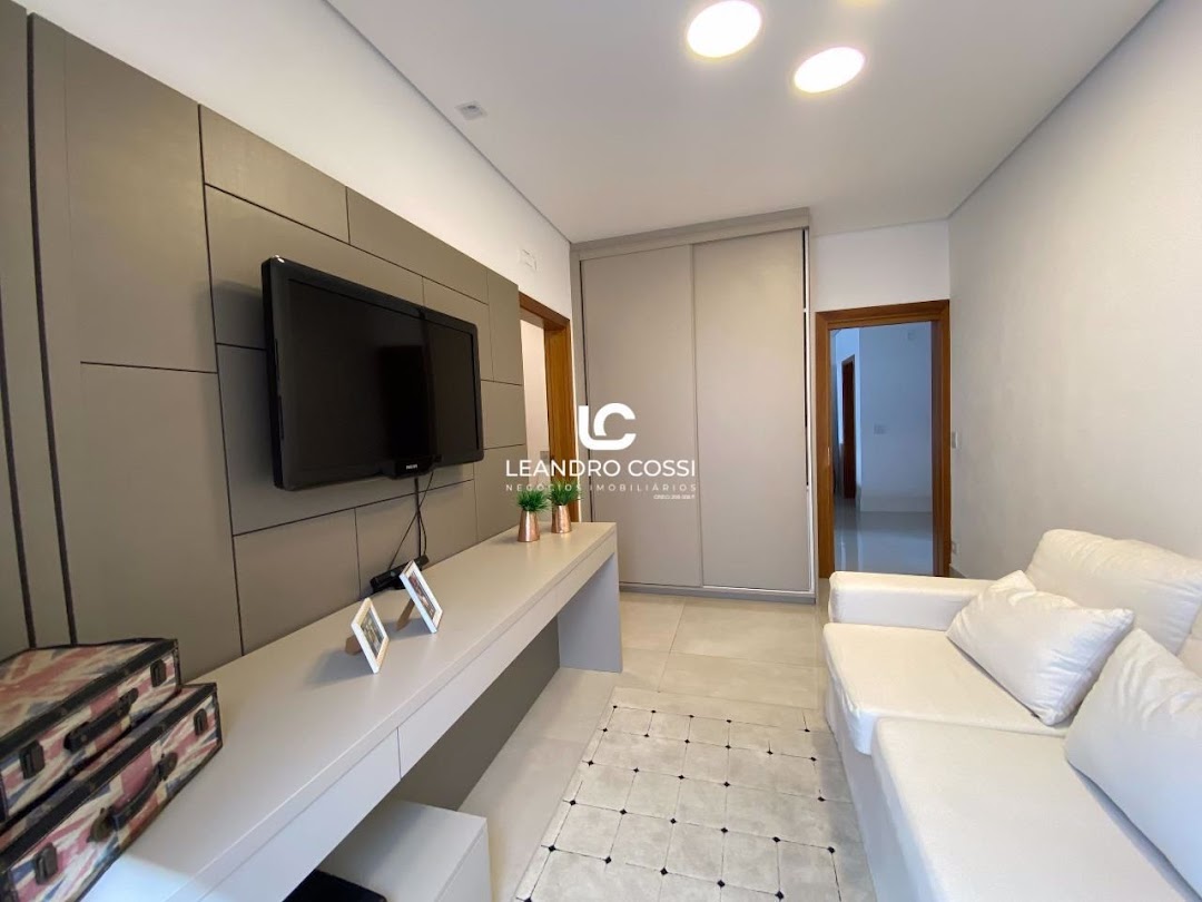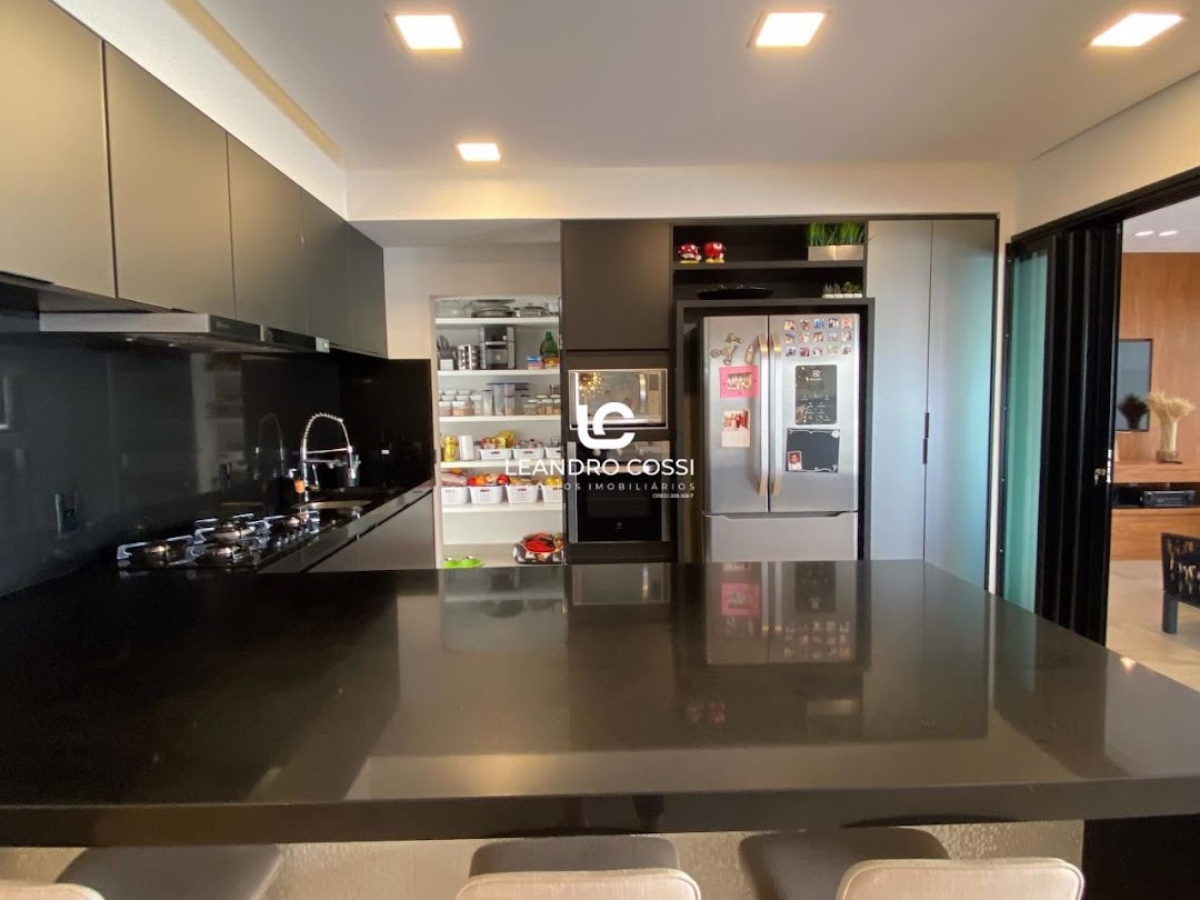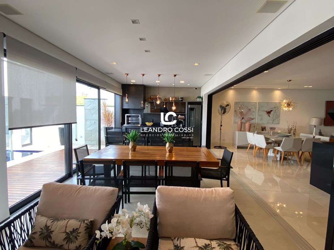 Dispõe de 3 suítes com closet, sala de dois ambientes e home cinema. Conta também com cozinha com ilha e despensa, lavabo e lavanderia coberta.