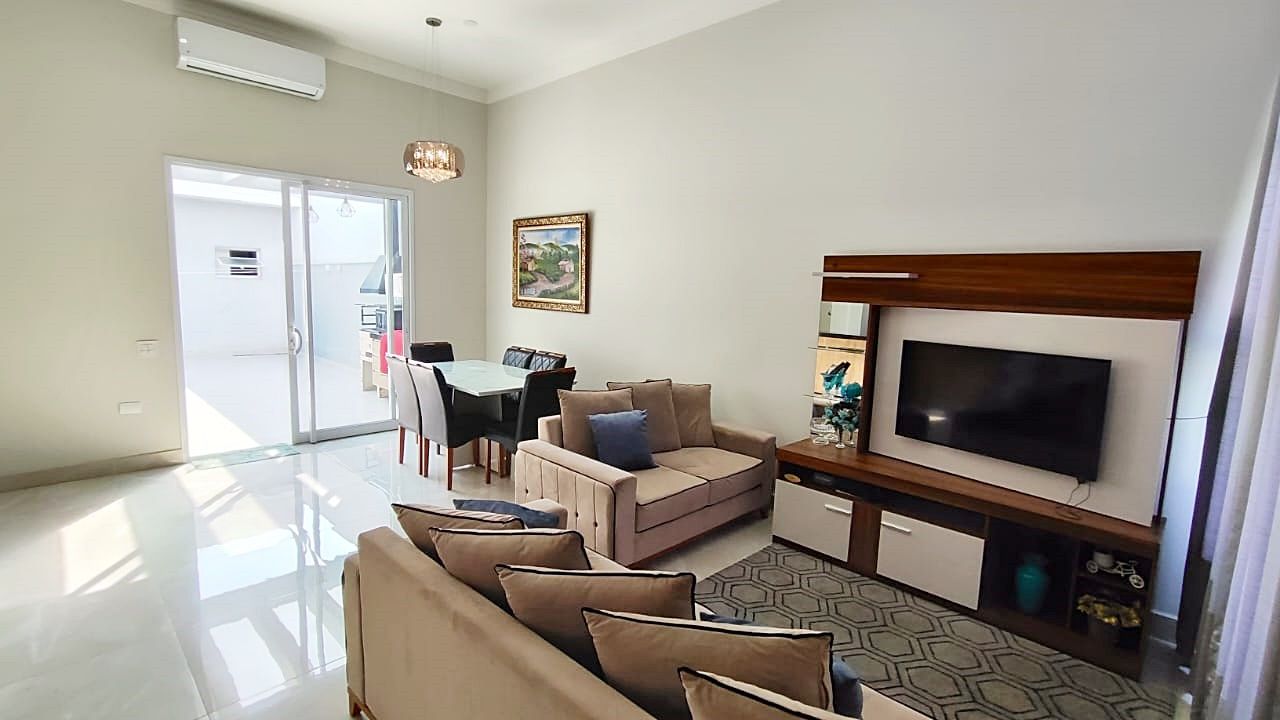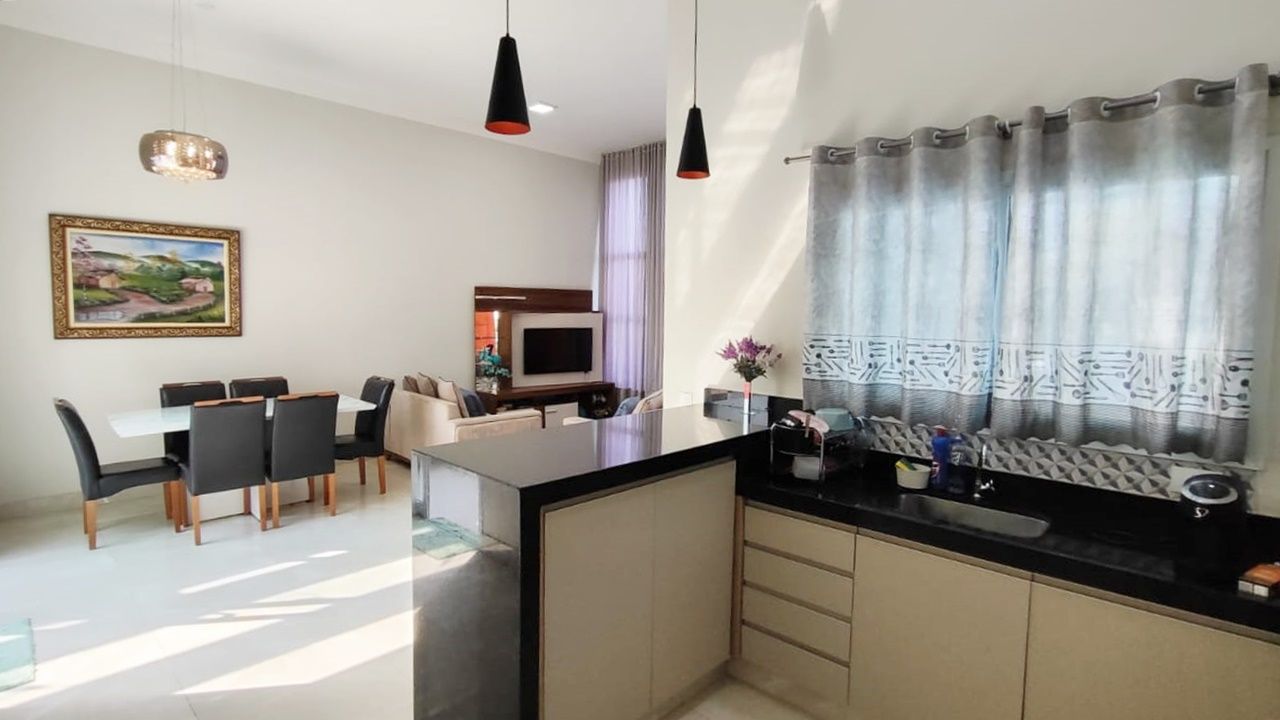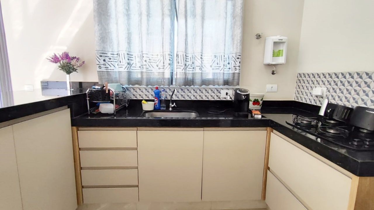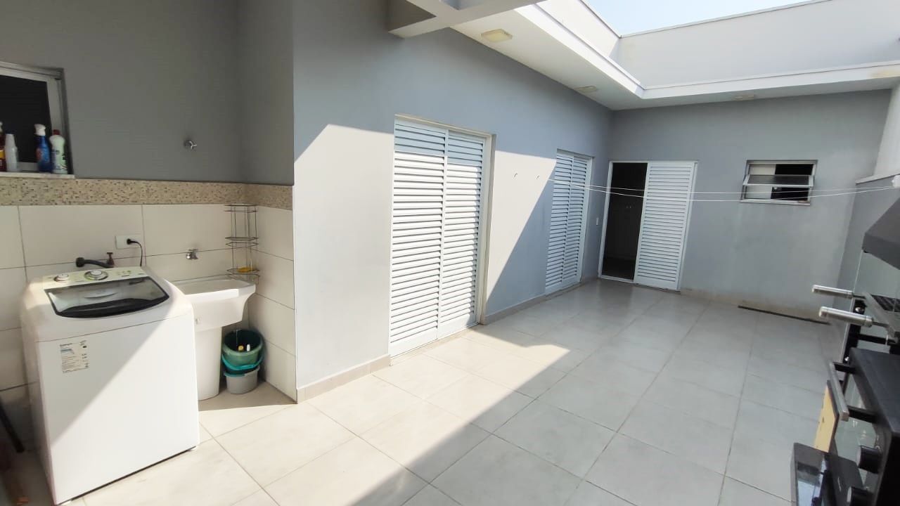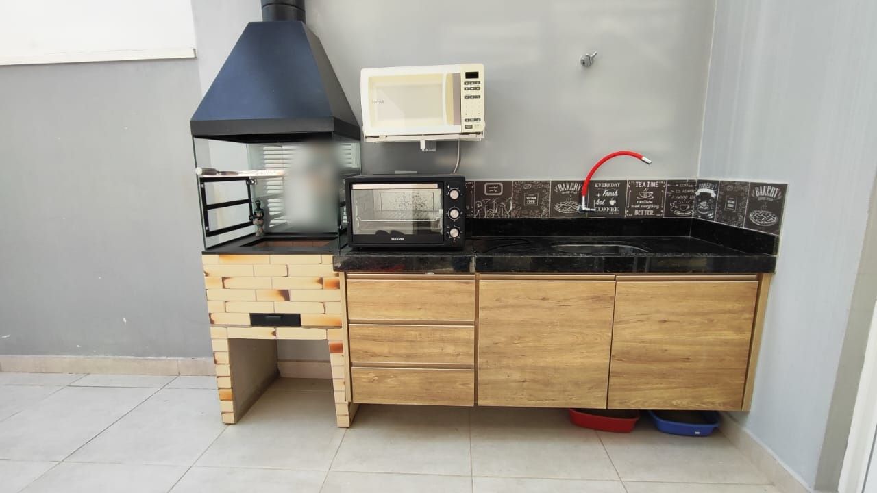 O imóvel dispõe de 3 dormitórios, sendo 1 suíte, além de sala de estar integrada à cozinha. Conta também com área gourmet, área de serviço e 3 vagas de garagem, sendo 1 coberta.