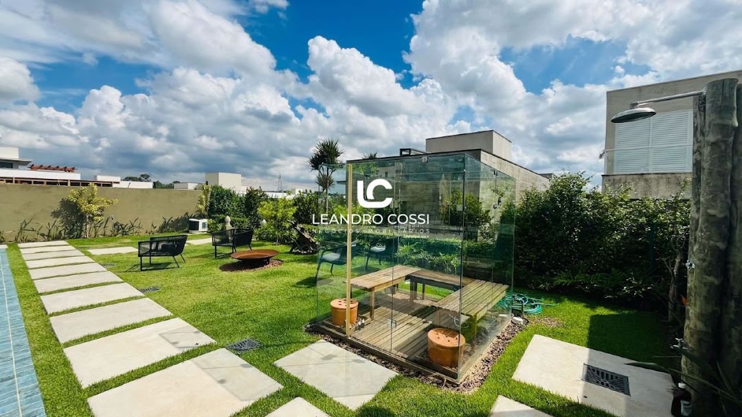 Conta ainda com lavabo, lavanderia e jardim com iluminação, piscina com prainha e spa, sauna de vidro e um amplo gramado, podendo desfrutar momentos com amigos e familiares.