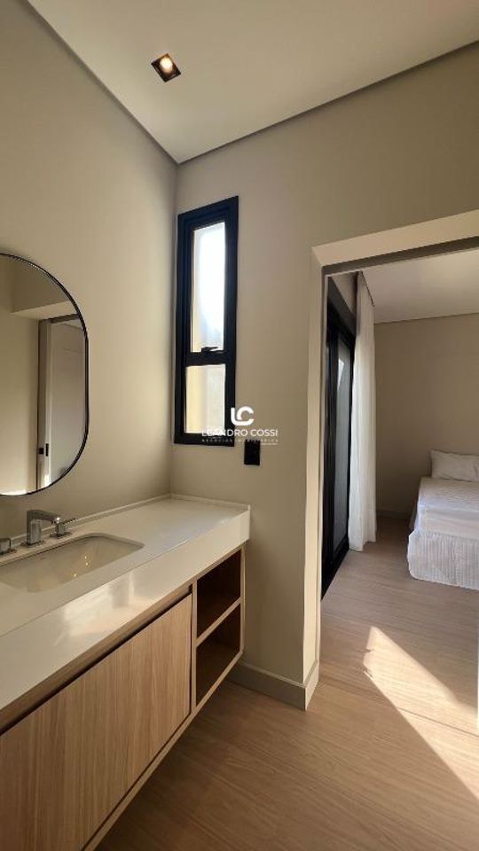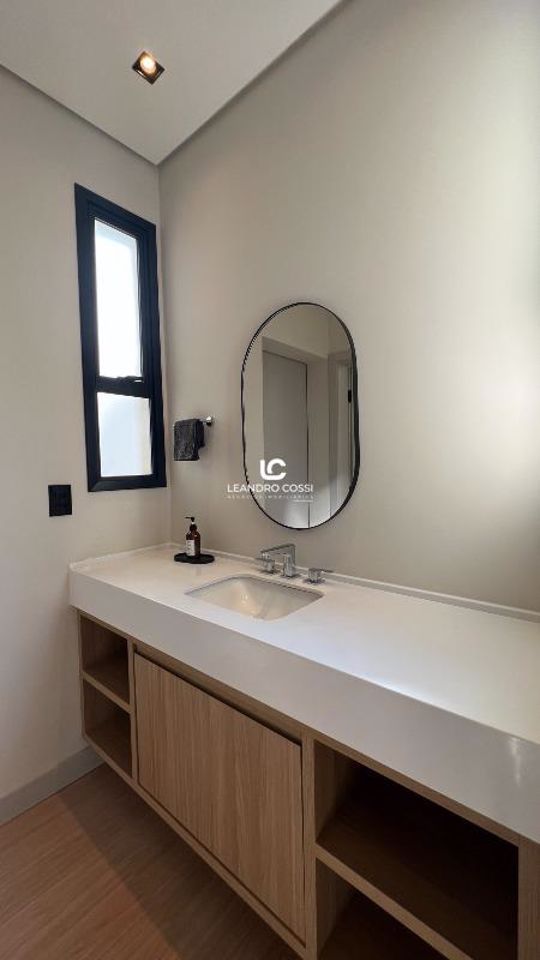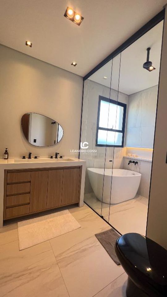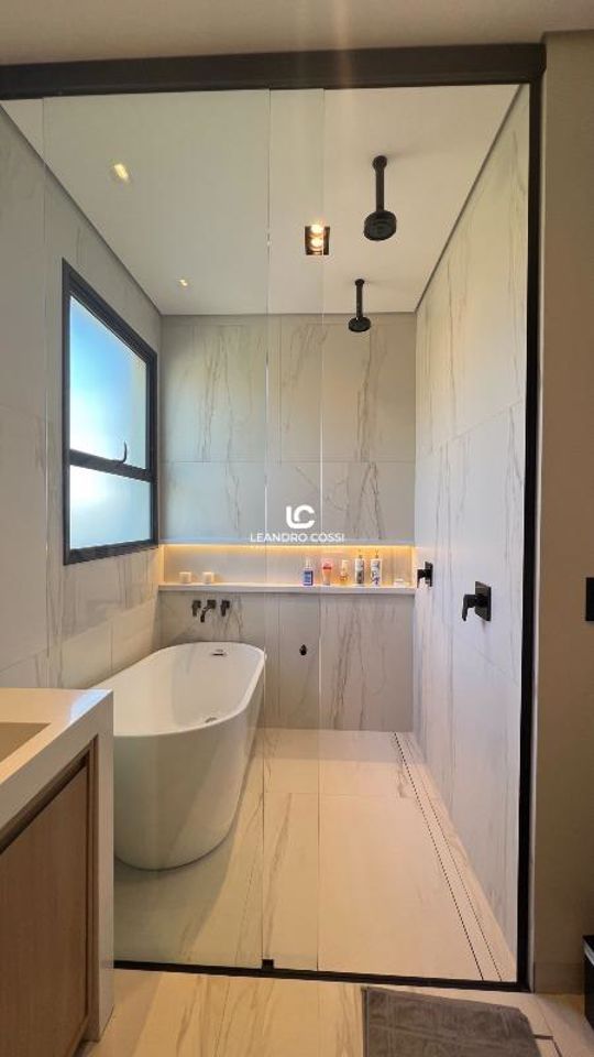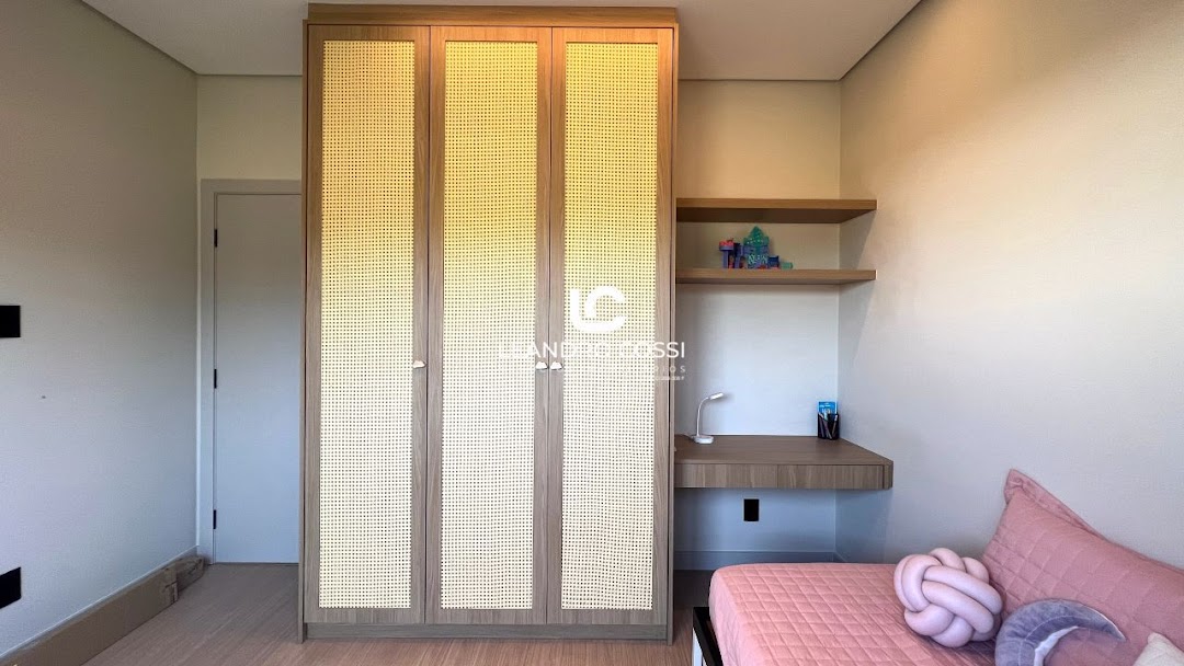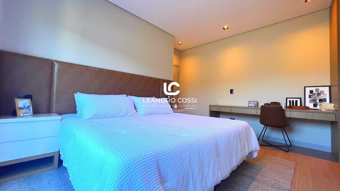 Diferenciais: armários planejados no home TV, rouparia, cozinha, área gourmet, lavanderia, banheiros, armário de apoio da suíte master, cabeceira almofadada e dois criados-mudos na suíte master; sistema de aquecimento solar; preparação para instalação de ar-condicionado; infraestrutura para aquecimento da piscina