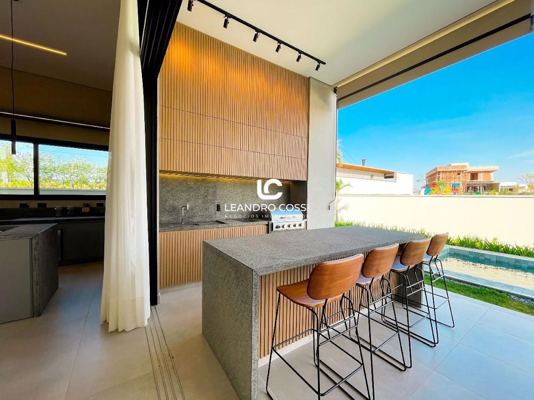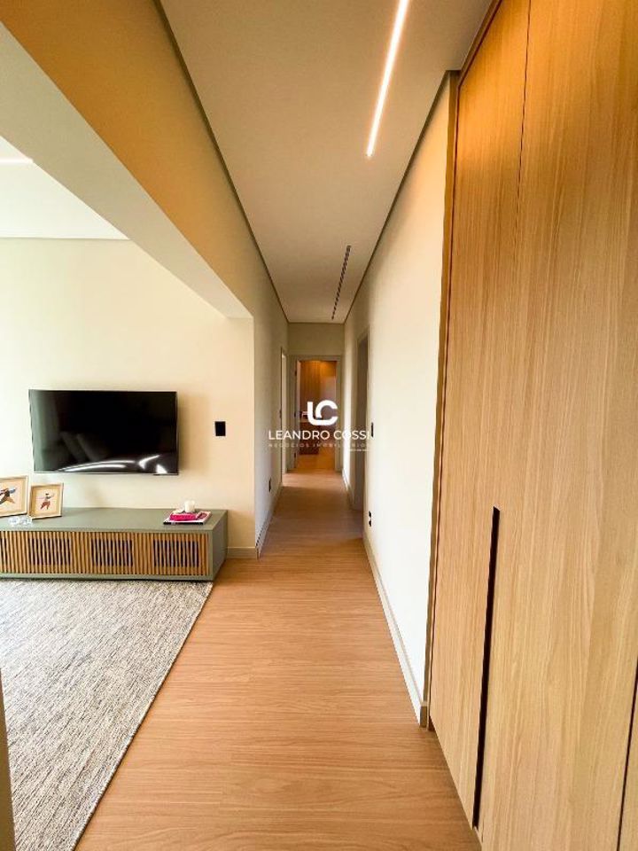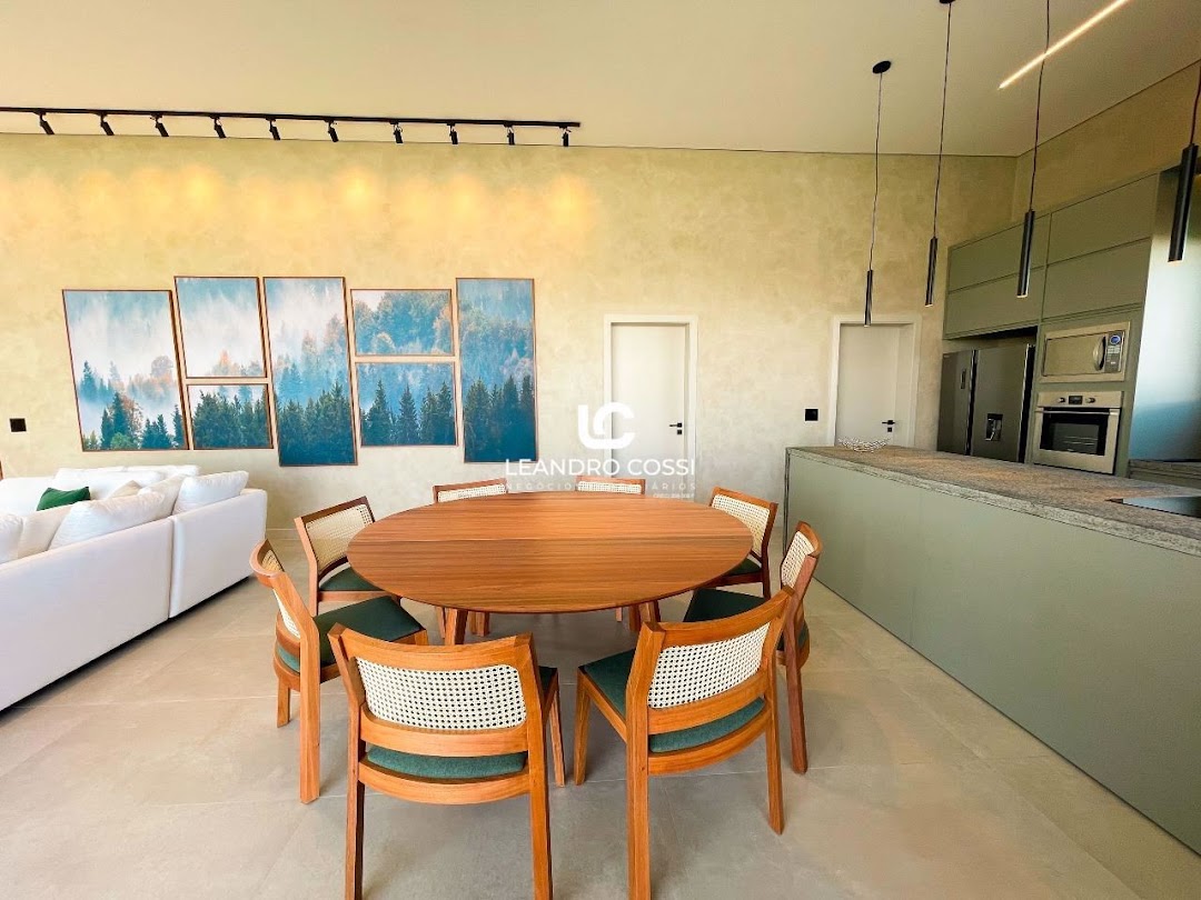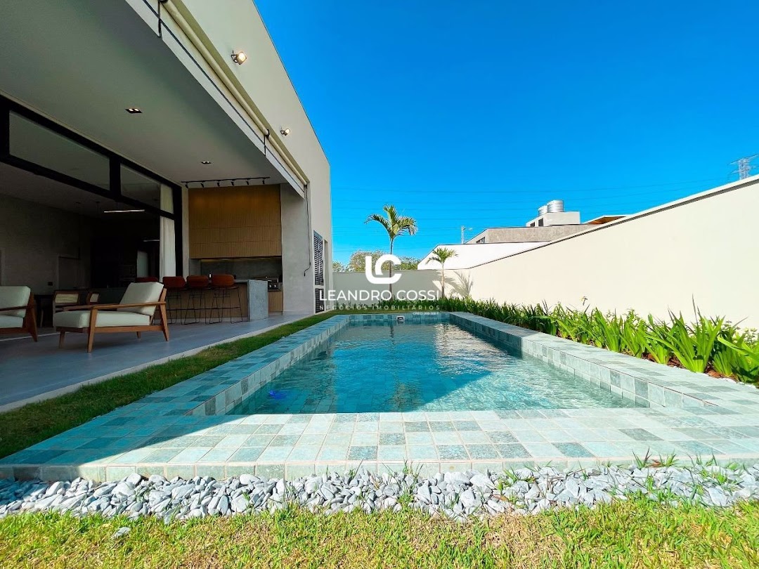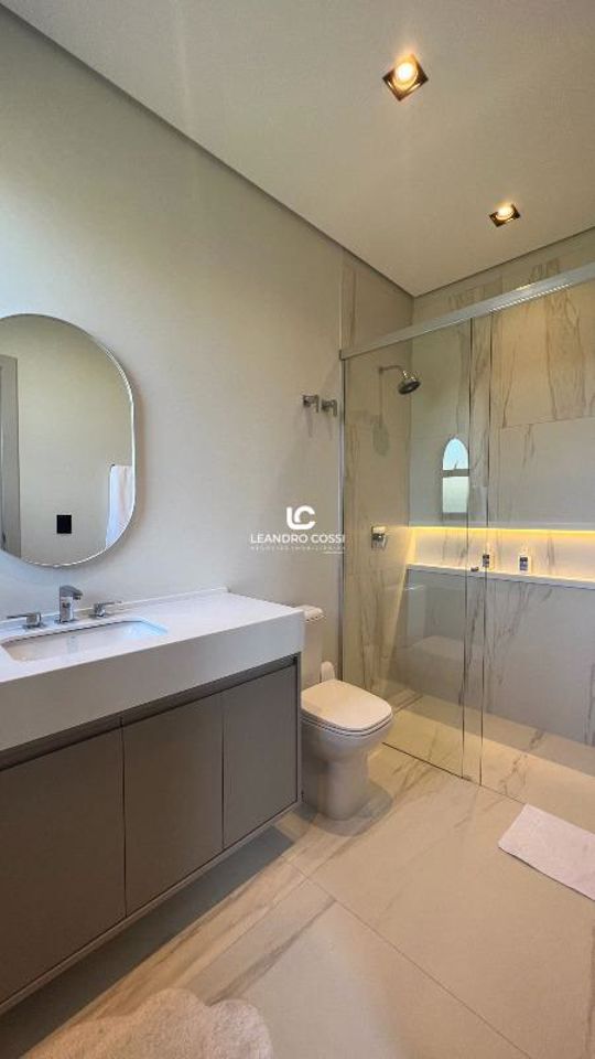 Diferenciais: armários planejados no home TV, rouparia, cozinha, área gourmet, lavanderia, banheiros, armário de apoio da suíte master, cabeceira almofadada e dois criados-mudos na suíte master; sistema de aquecimento solar; preparação para instalação de ar-condicionado; infraestrutura para aquecimento da piscina