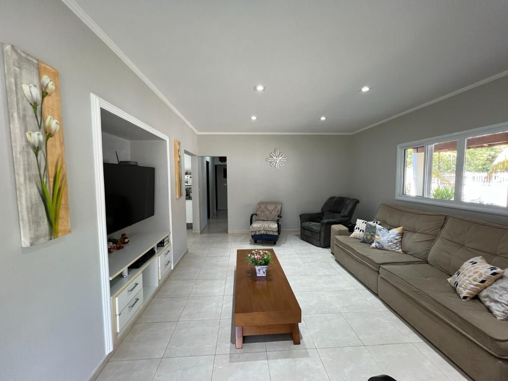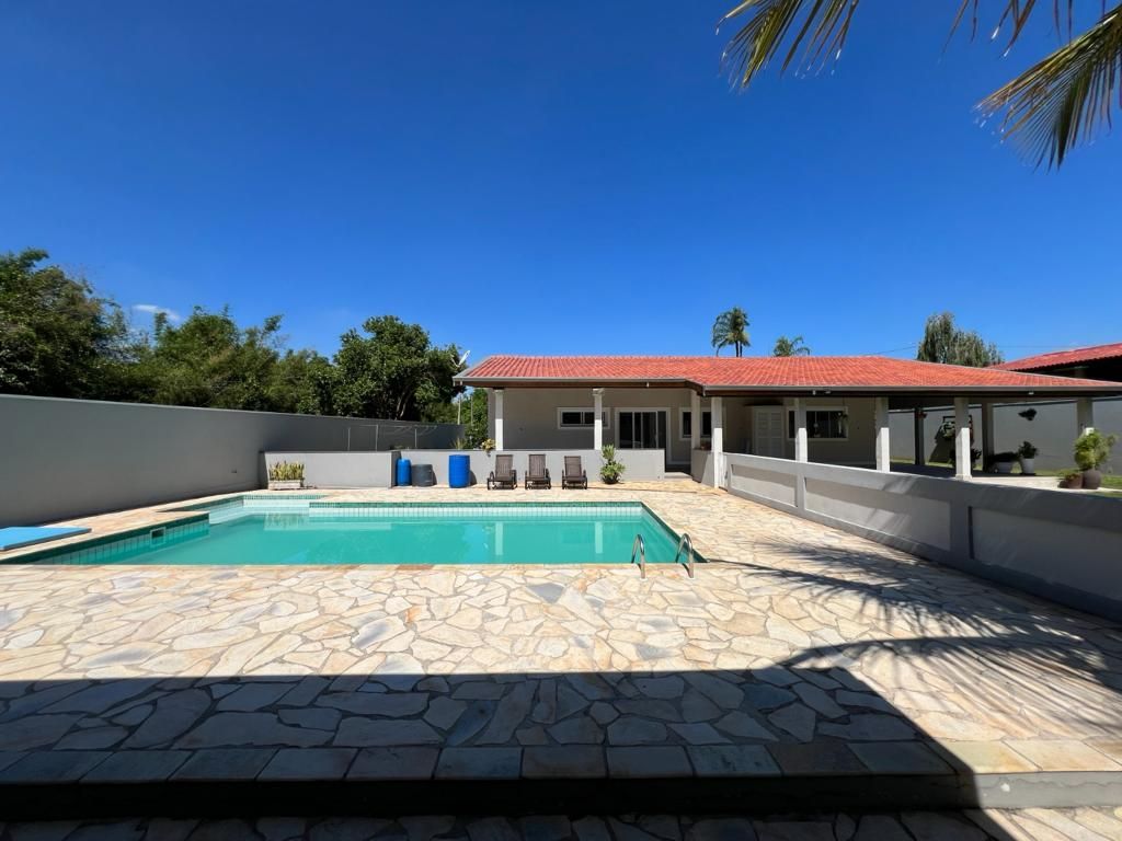 A área externa oferece um amplo quintal, com campo de futebol gramado, piscina, espaço gourmet e garagem coberta para 2 veículos.