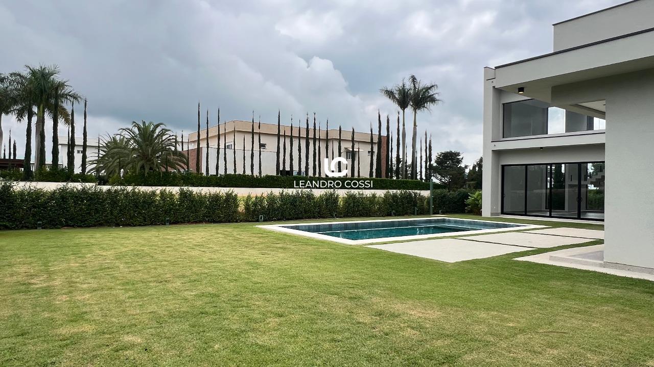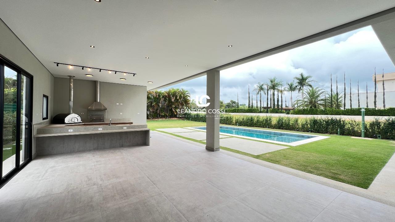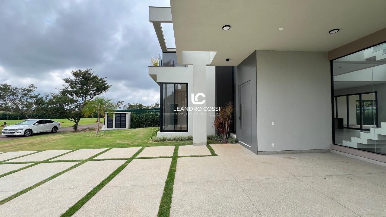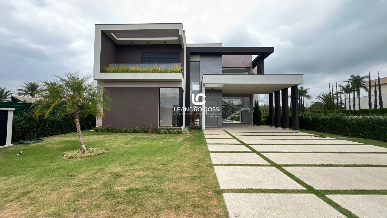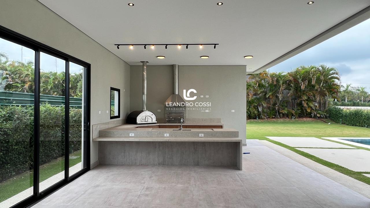 A residência conta com 4 suítes, sendo uma suíte master com closet e terraço exclusivo, proporcionando um espaço íntimo e reservado. Os ambientes sociais são integrados, com sala de estar e jantar conectadas à cozinha, além de lavabo, criando um layout moderno e acolhedor.