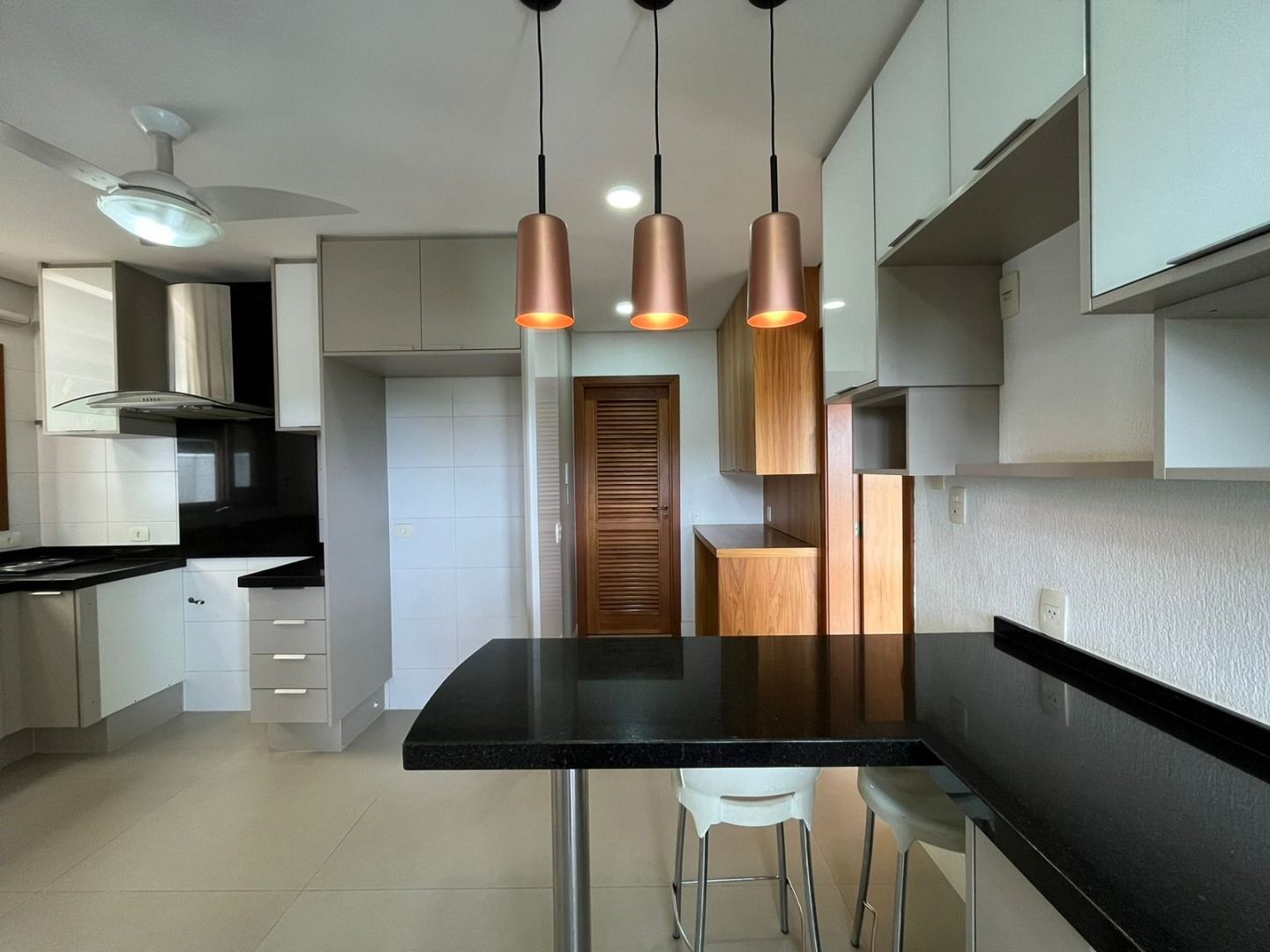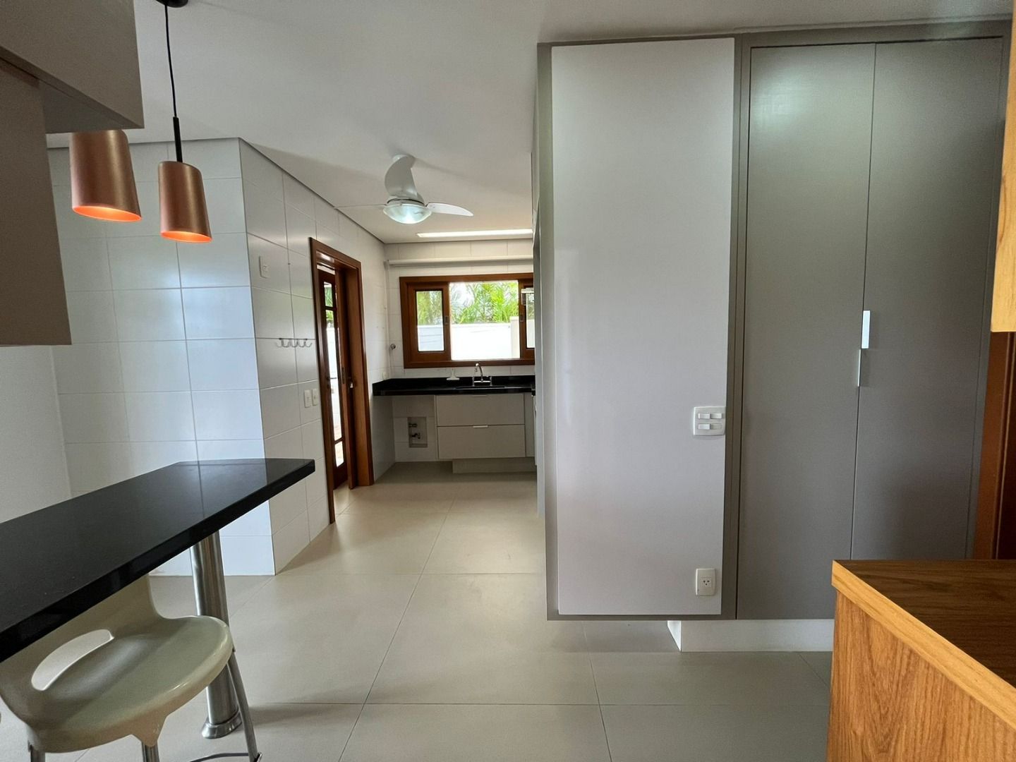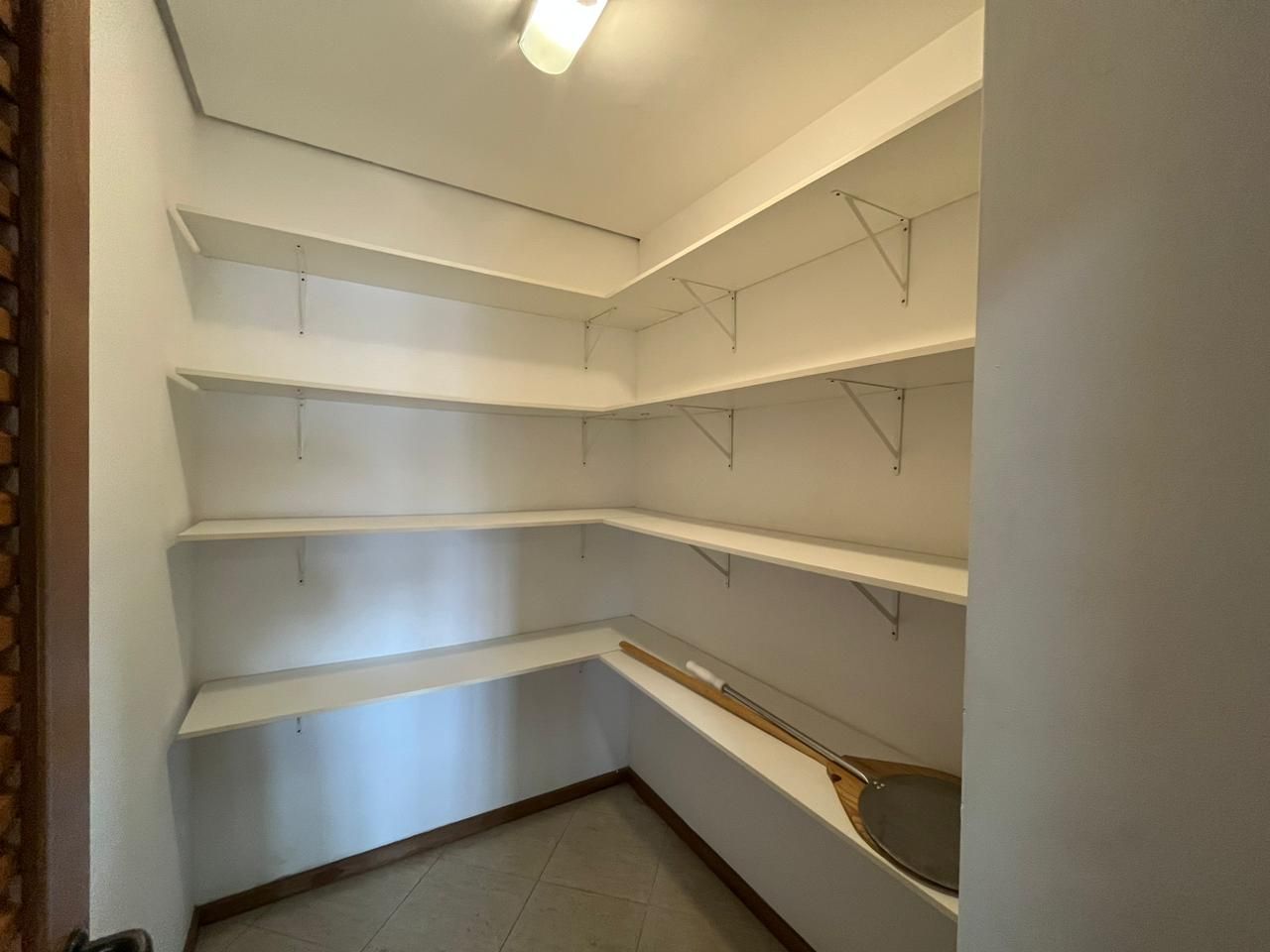 Sala de jantar e cozinha completa, com despensa