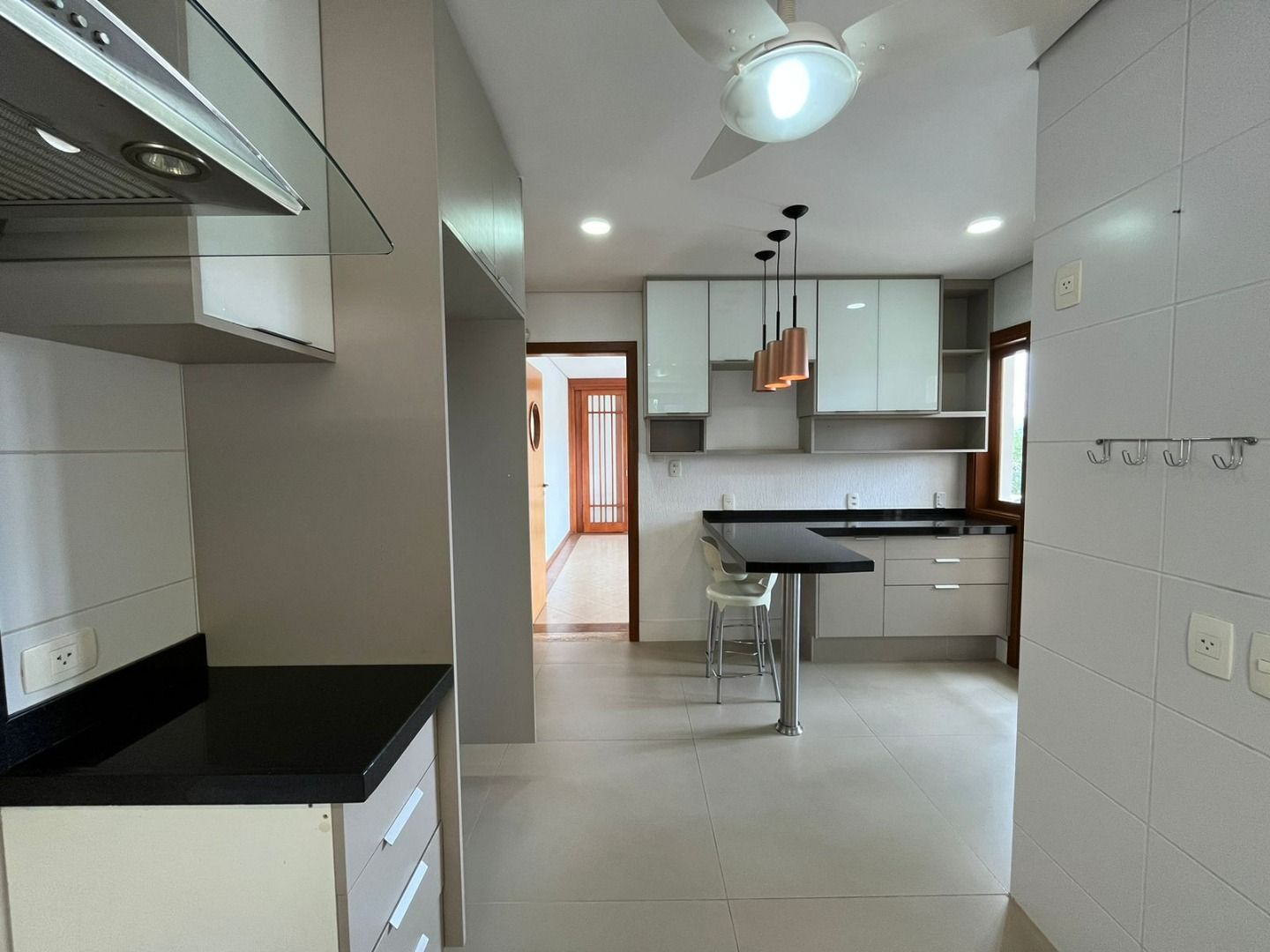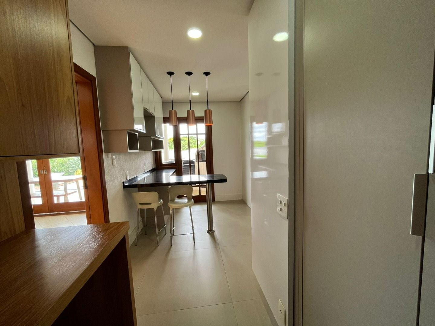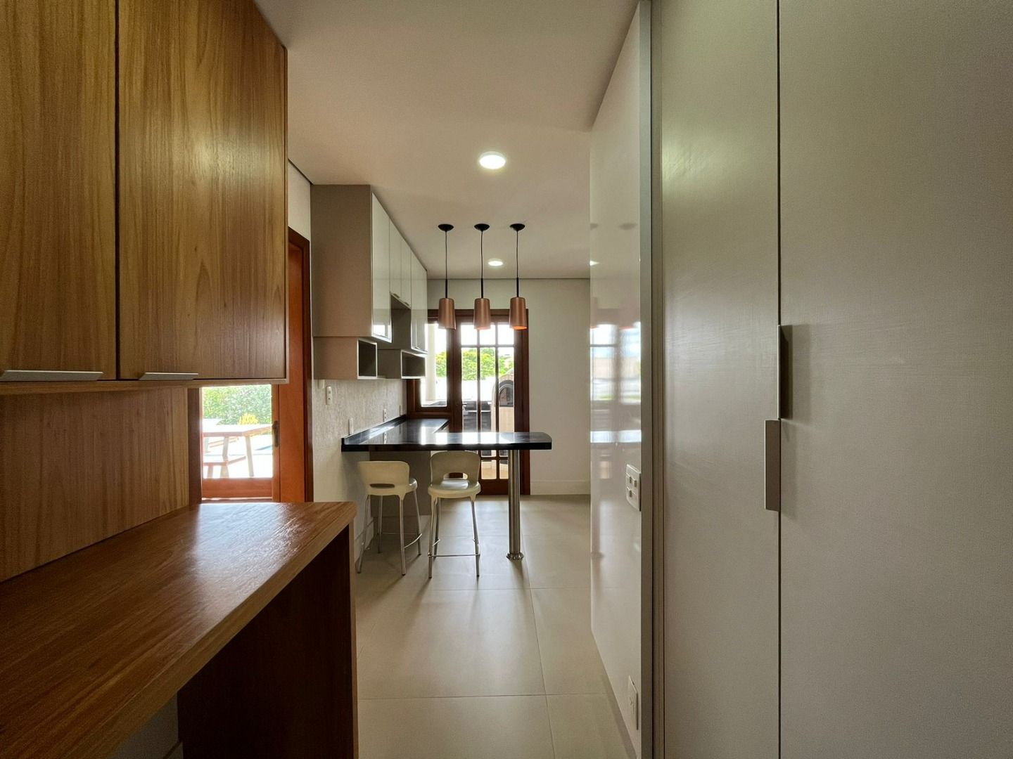 Sala de jantar e cozinha completa, com despensa