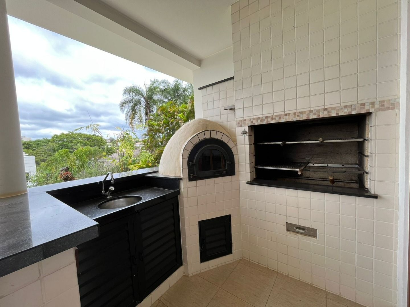 Área gourmet completa, equipada com churrasqueira e forno de pizza