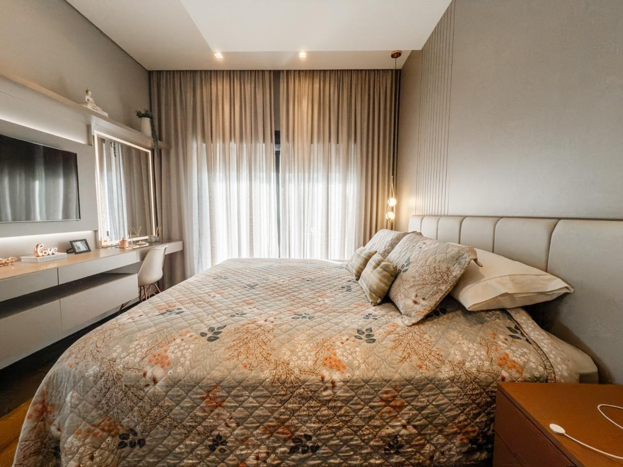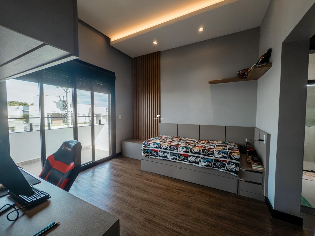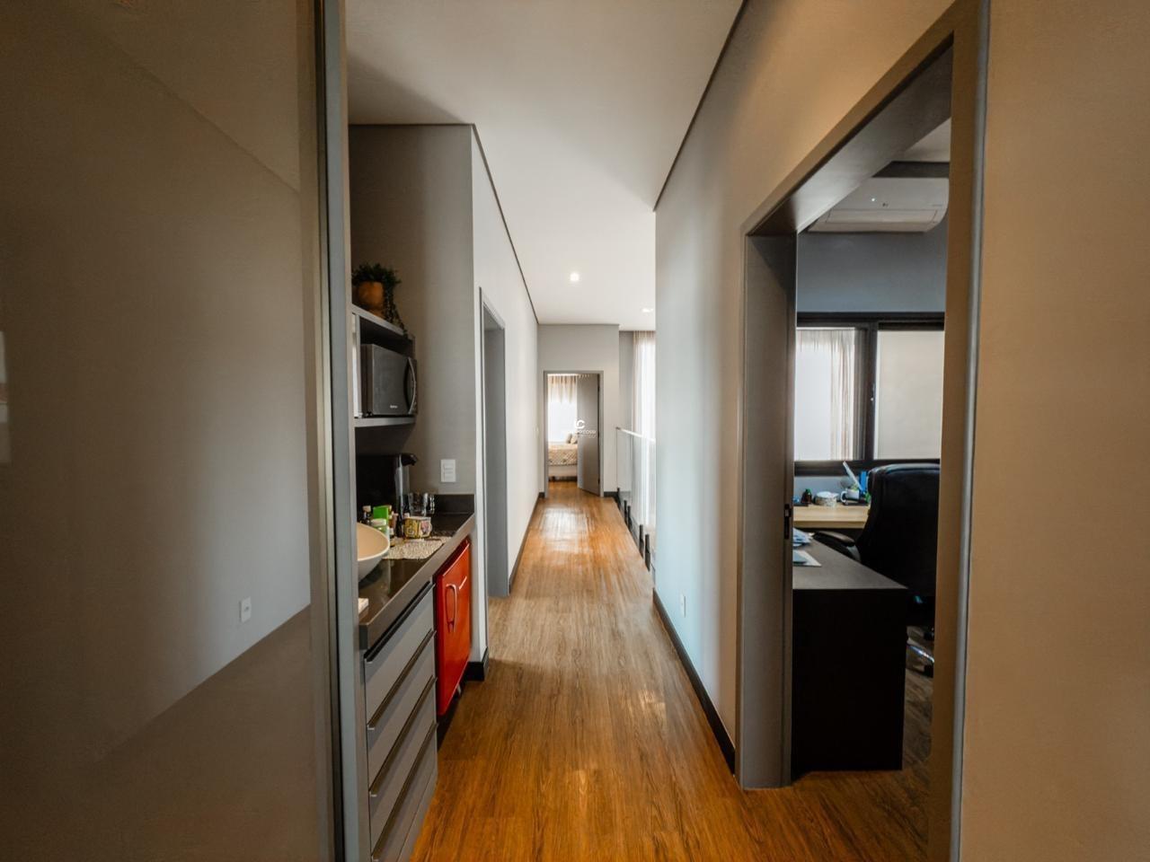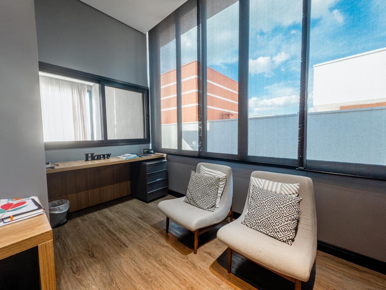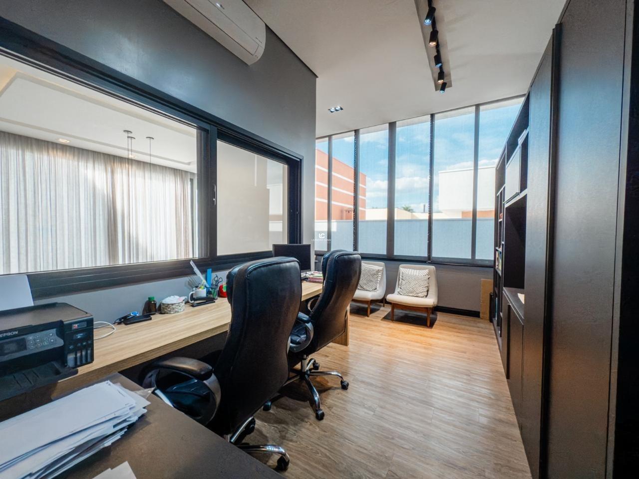 No piso superior, a casa conta com 4 suítes espaçosas e um escritório, ideal para home office.
