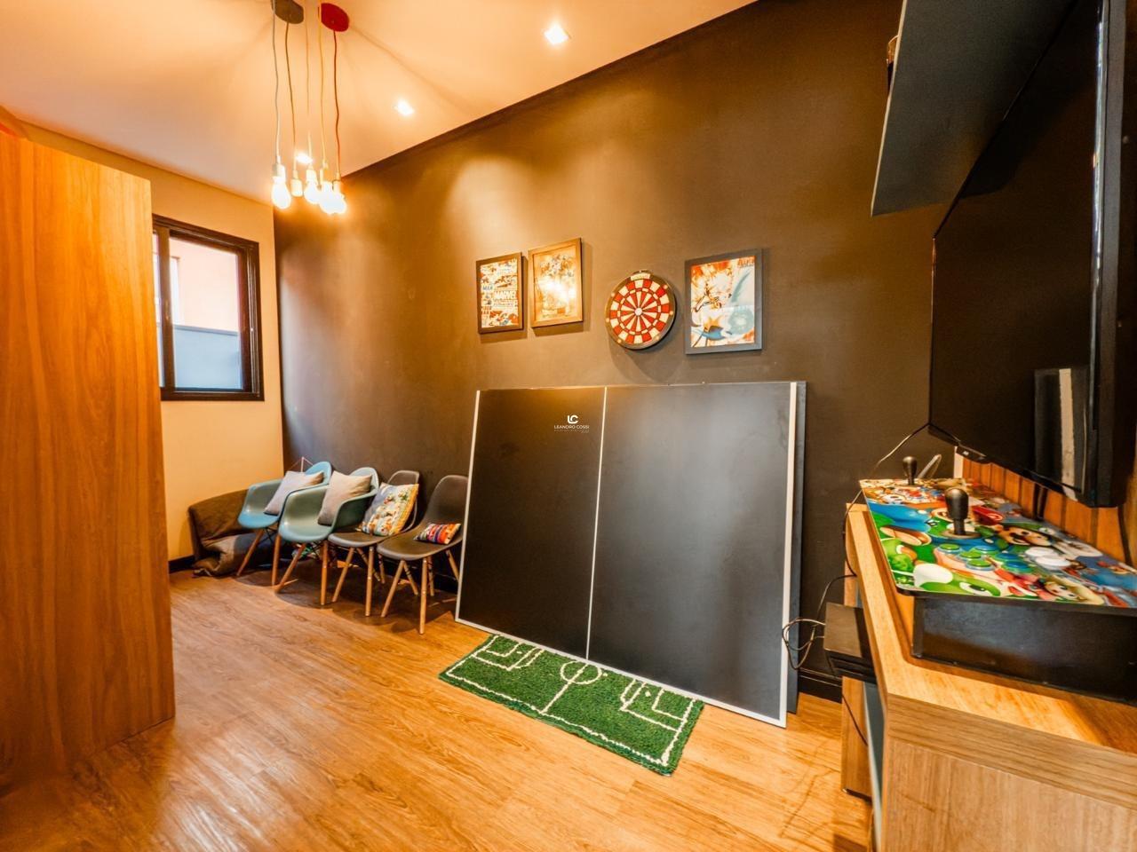 No piso térreo, possui sala de estar, cozinha planejada, lavabo, sala de TV privativa e uma charmosa brinquedoteca, perfeita para as crianças.