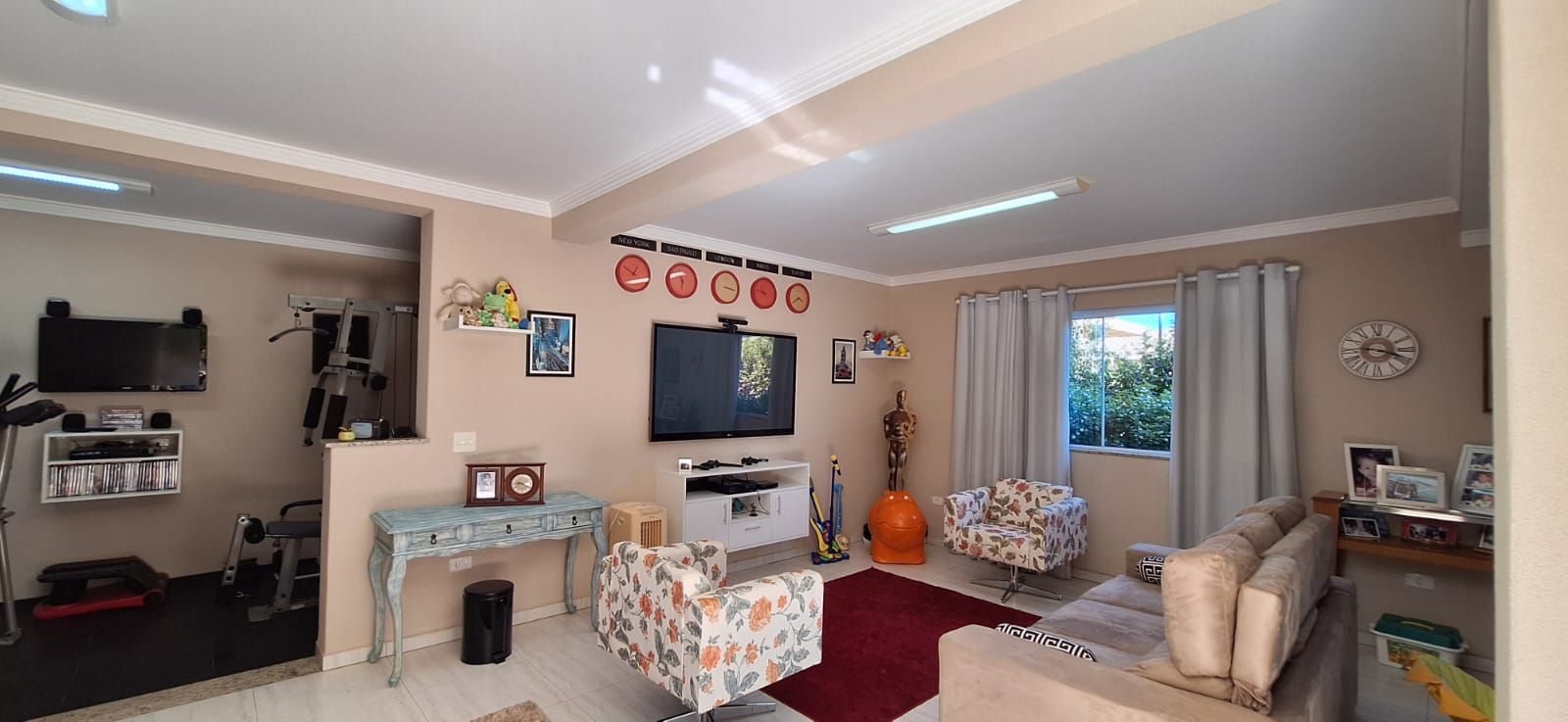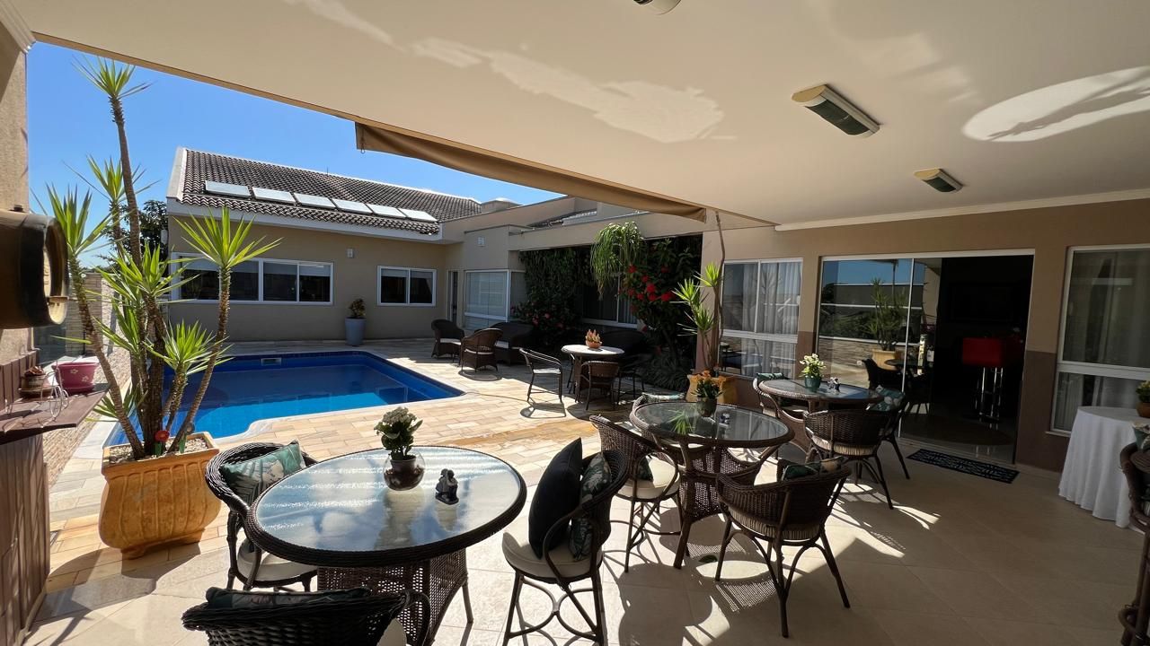 Para receber amigos e familiares, a casa oferece uma área gourmet completa, equipada com churrasqueira e forno a lenha. Na parte externa, o destaque vai para a piscina grande, o jardim bem cuidado e o quintal espaçoso, formando um cenário agradável, tranquilo e ideal para lazer e descanso.