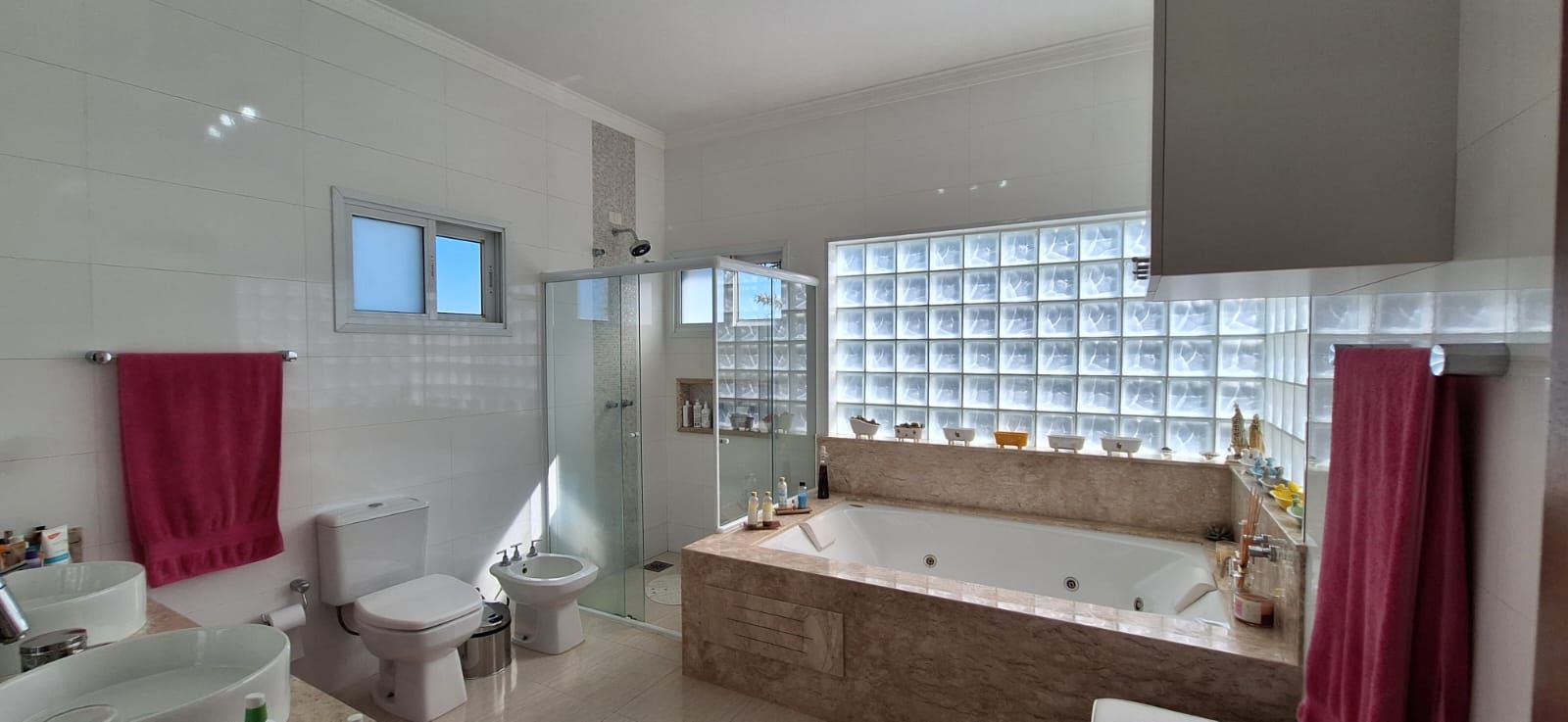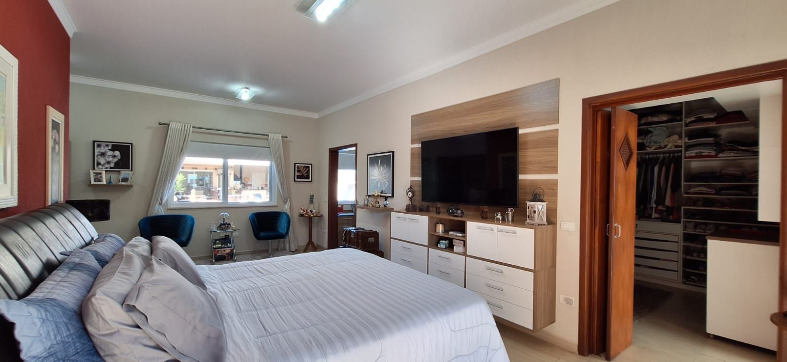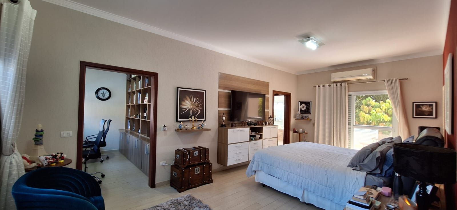 O imóvel conta com 5 suítes, todas amplas e muito bem iluminadas, sendo a suíte máster especialmente projetada com closet e banheira de hidromassagem, garantindo momentos de relaxamento e privacidade. Ao todo, são 8 banheiros, além de ar-condicionado em todos os ambientes e um escritório, ideal para quem precisa de um espaço confortável para home office.