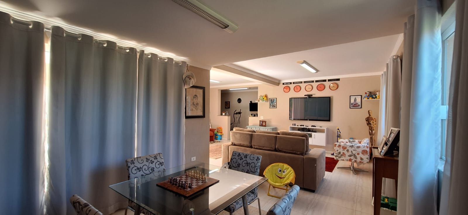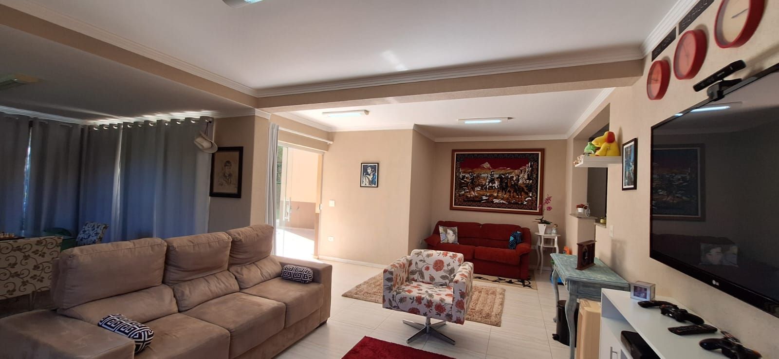 A área social é composta por sala de estar espaçosa, sala de TV e sala de jantar, criando ambientes acolhedores e perfeitos para a convivência. A cozinha planejada, ampla e arejada, atende perfeitamente quem gosta de cozinhar, e a despensa garante mais organização no dia a dia.