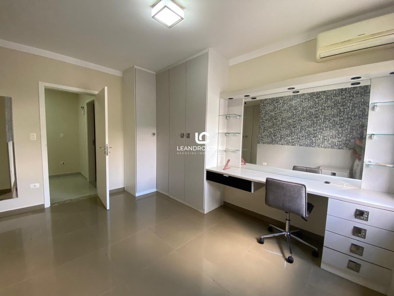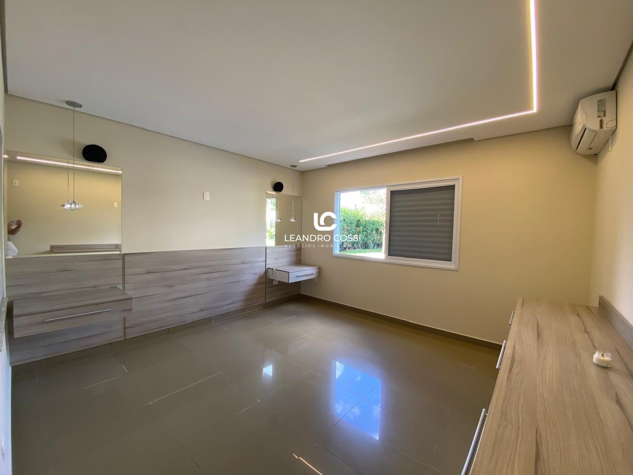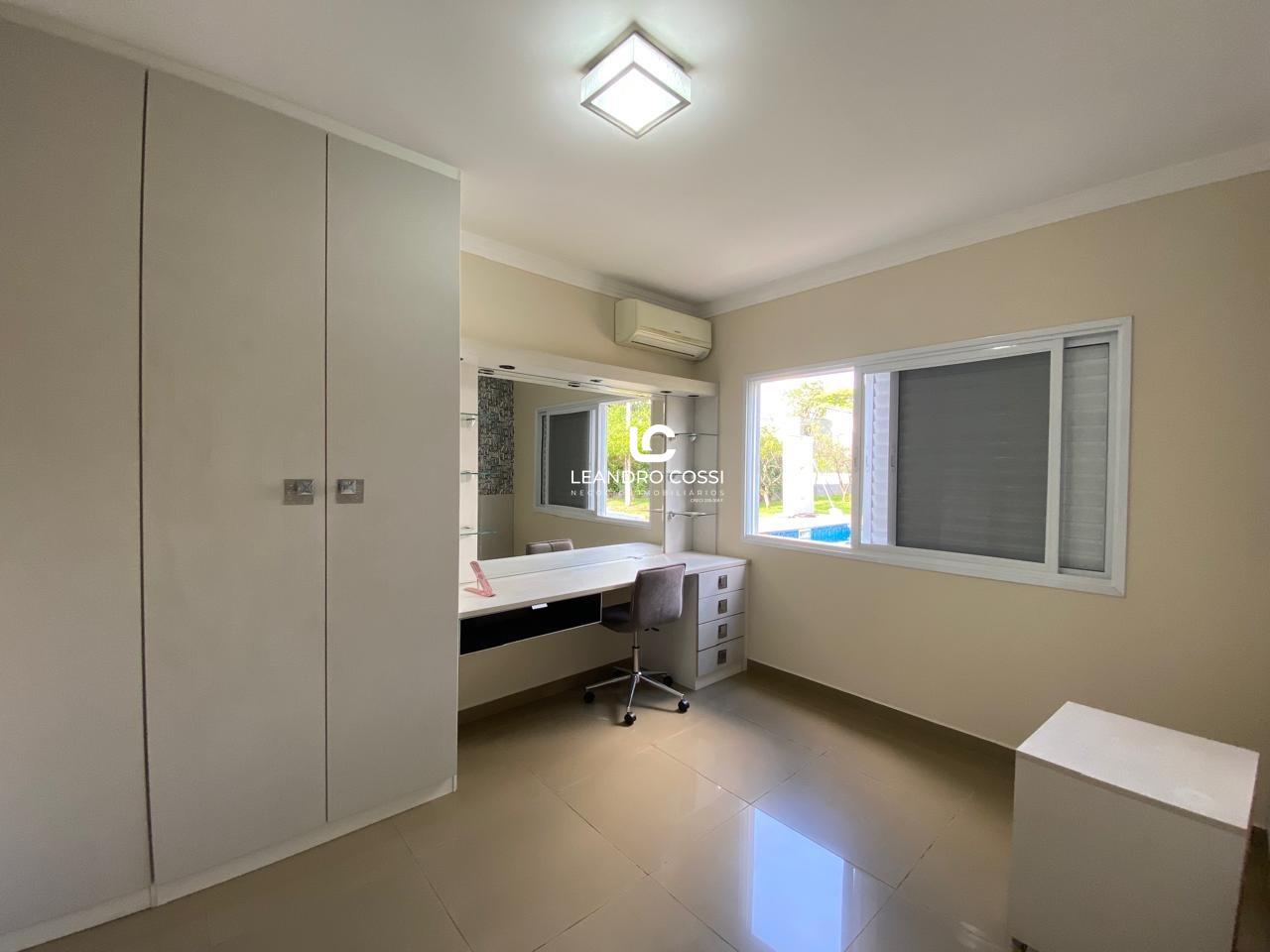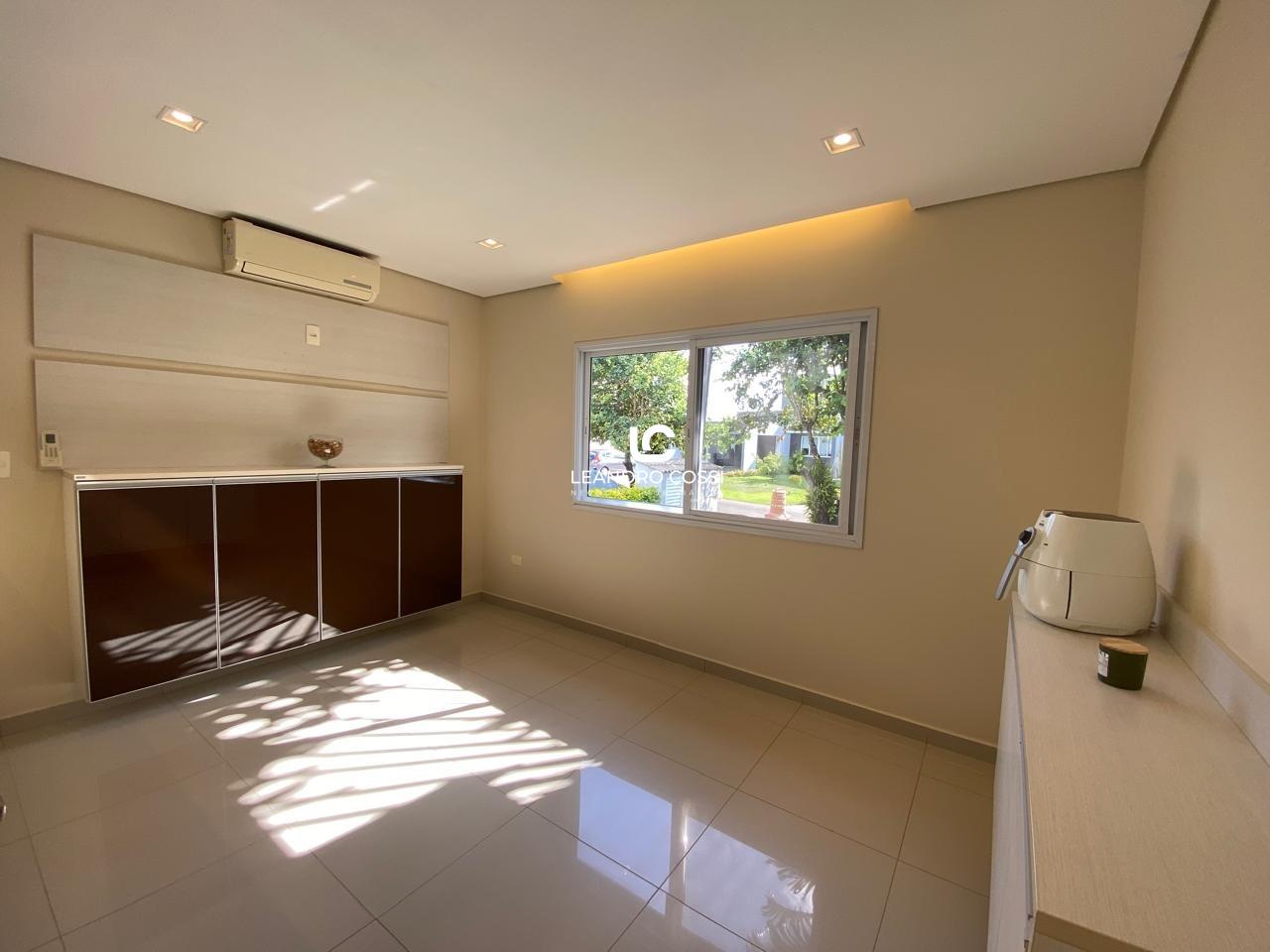 São 4 dormitórios, sendo 3 suítes com ar-condicionado e armários planejados – com destaque para a suíte master, que conta com banheira, hidromassagem e cromoterapia. A casa possui ainda escritório, hall de entrada, lavabo duplo integrado, copa e cozinha amplas, além de uma lavanderia funcional.