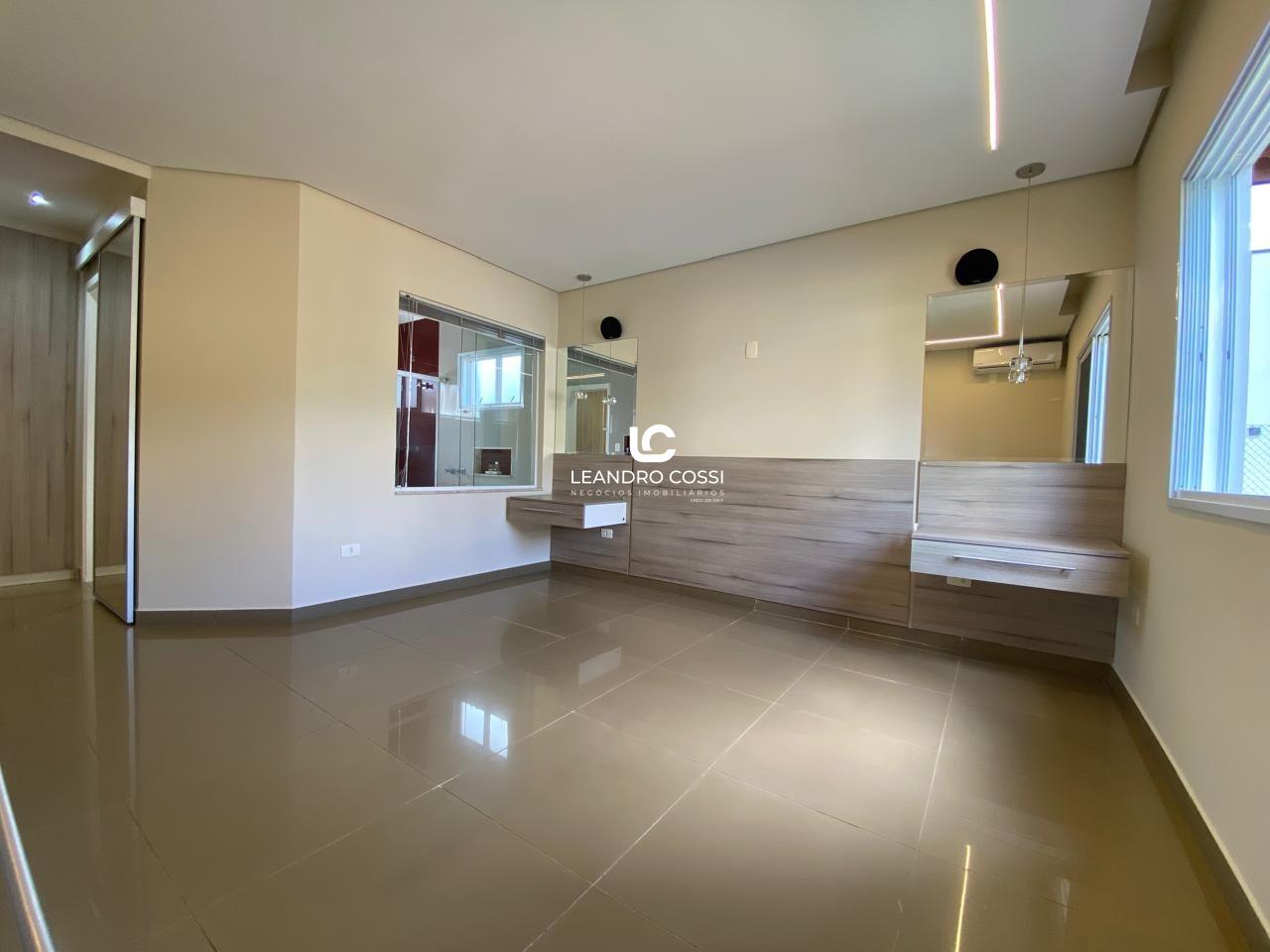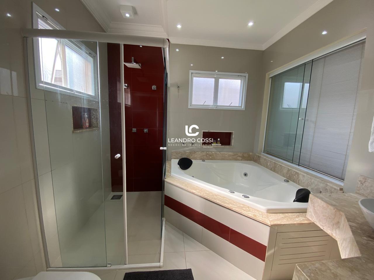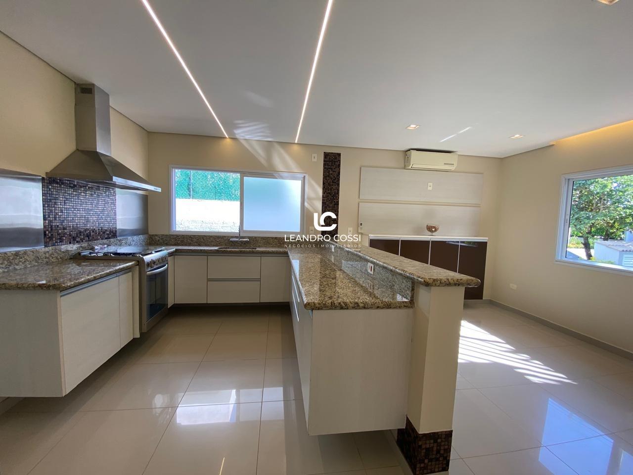 São 4 dormitórios, sendo 3 suítes com ar-condicionado e armários planejados – com destaque para a suíte master, que conta com banheira, hidromassagem e cromoterapia. A casa possui ainda escritório, hall de entrada, lavabo duplo integrado, copa e cozinha amplas, além de uma lavanderia funcional.