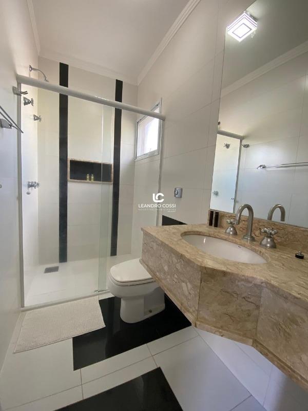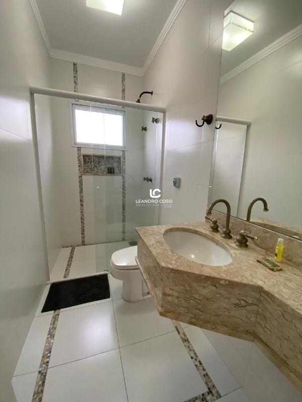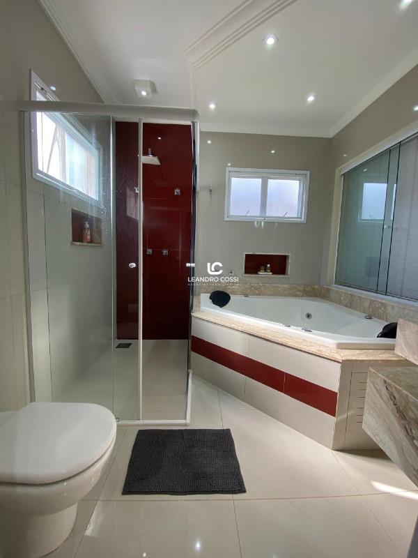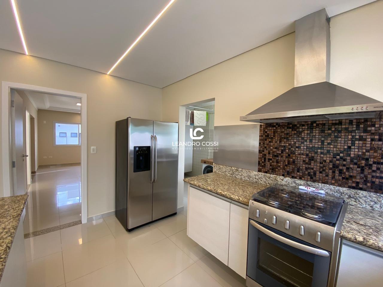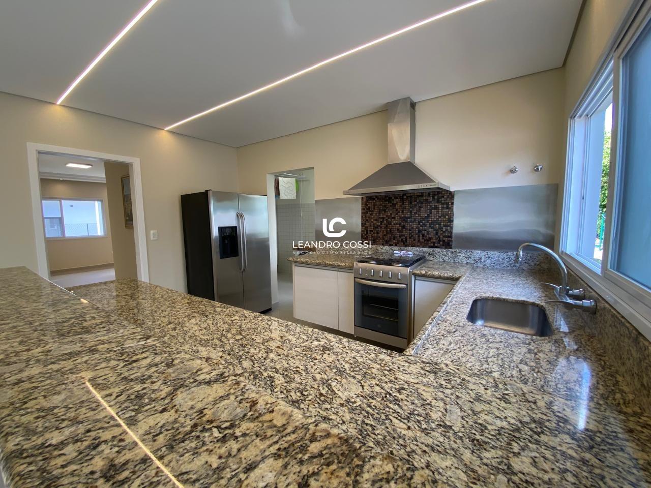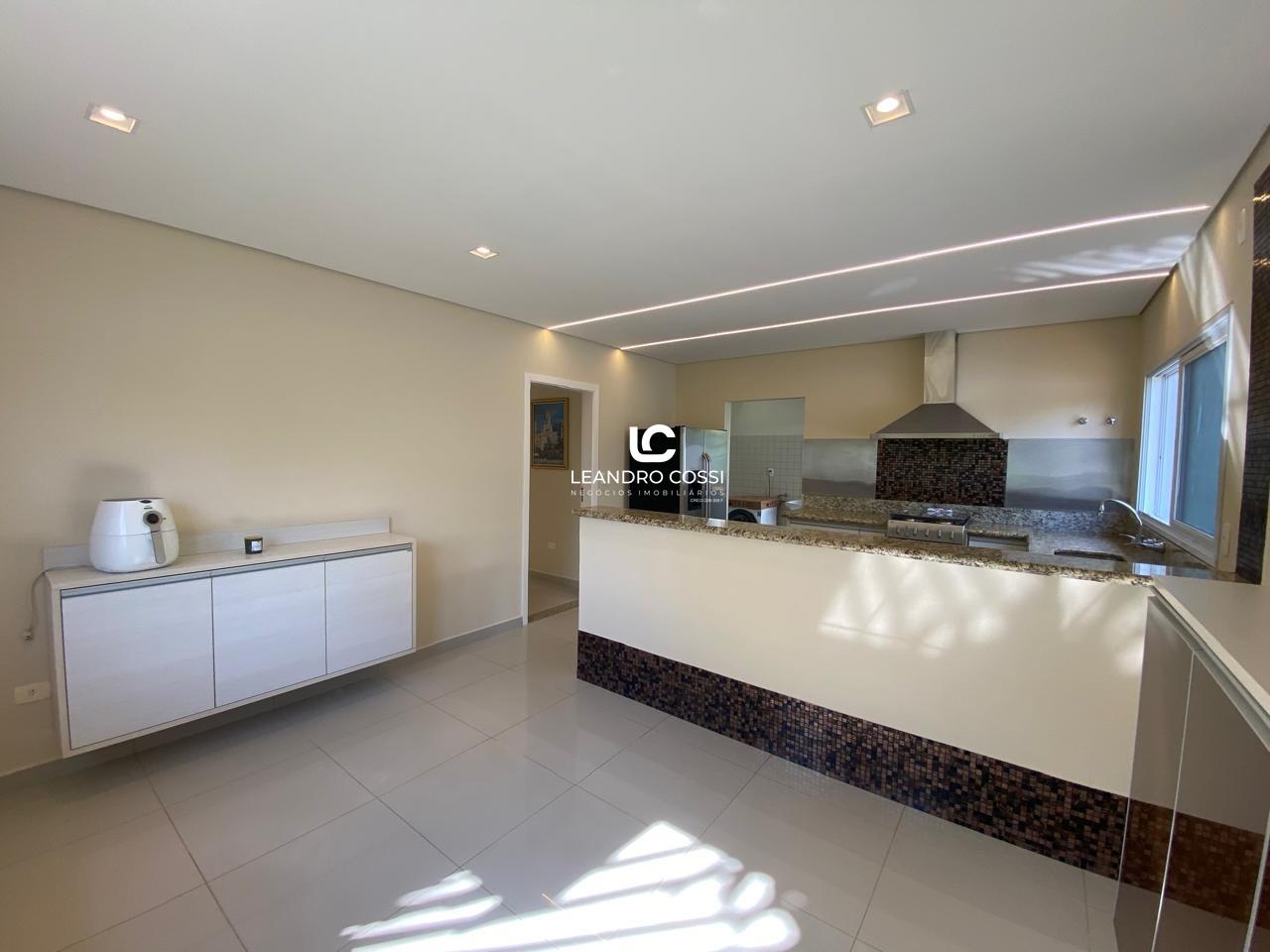 São 4 dormitórios, sendo 3 suítes com ar-condicionado e armários planejados – com destaque para a suíte master, que conta com banheira, hidromassagem e cromoterapia. A casa possui ainda escritório, hall de entrada, lavabo duplo integrado, copa e cozinha amplas, além de uma lavanderia funcional.
