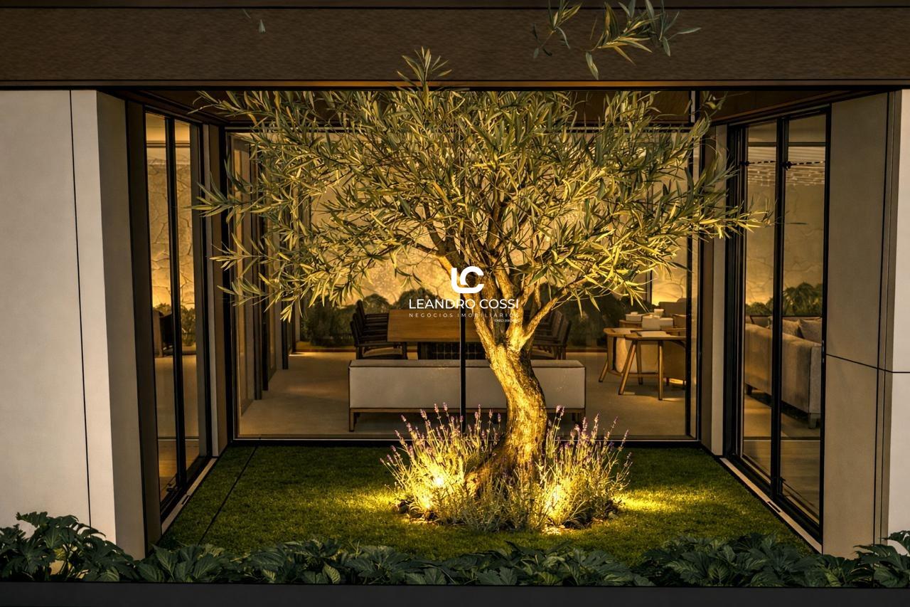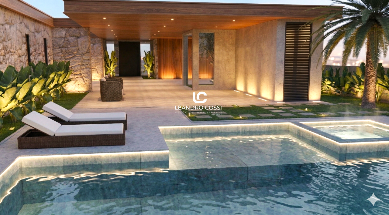 O espaço externo complementa a experiência com um amplo quintal gramado, perfeito para momentos ao ar livre, além de piscina e um espaço gourmet com churrasqueira, ideal para reunir família e amigos.