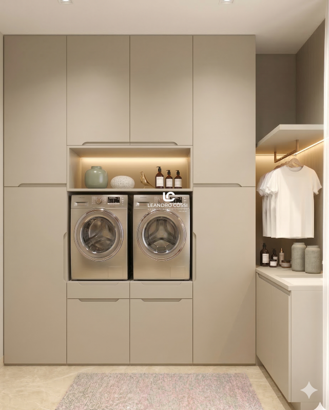 Na área íntima, são 4 suítes, incluindo uma suíte master que oferece mais conforto e privacidade. O imóvel conta ainda com lavabo e uma lavanderia funcional, atendendo bem à rotina da casa.