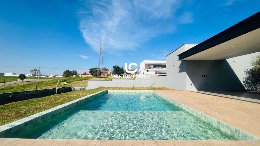 Piscina moderna e amplo quintal gramado, ideal para pets e momentos de lazer