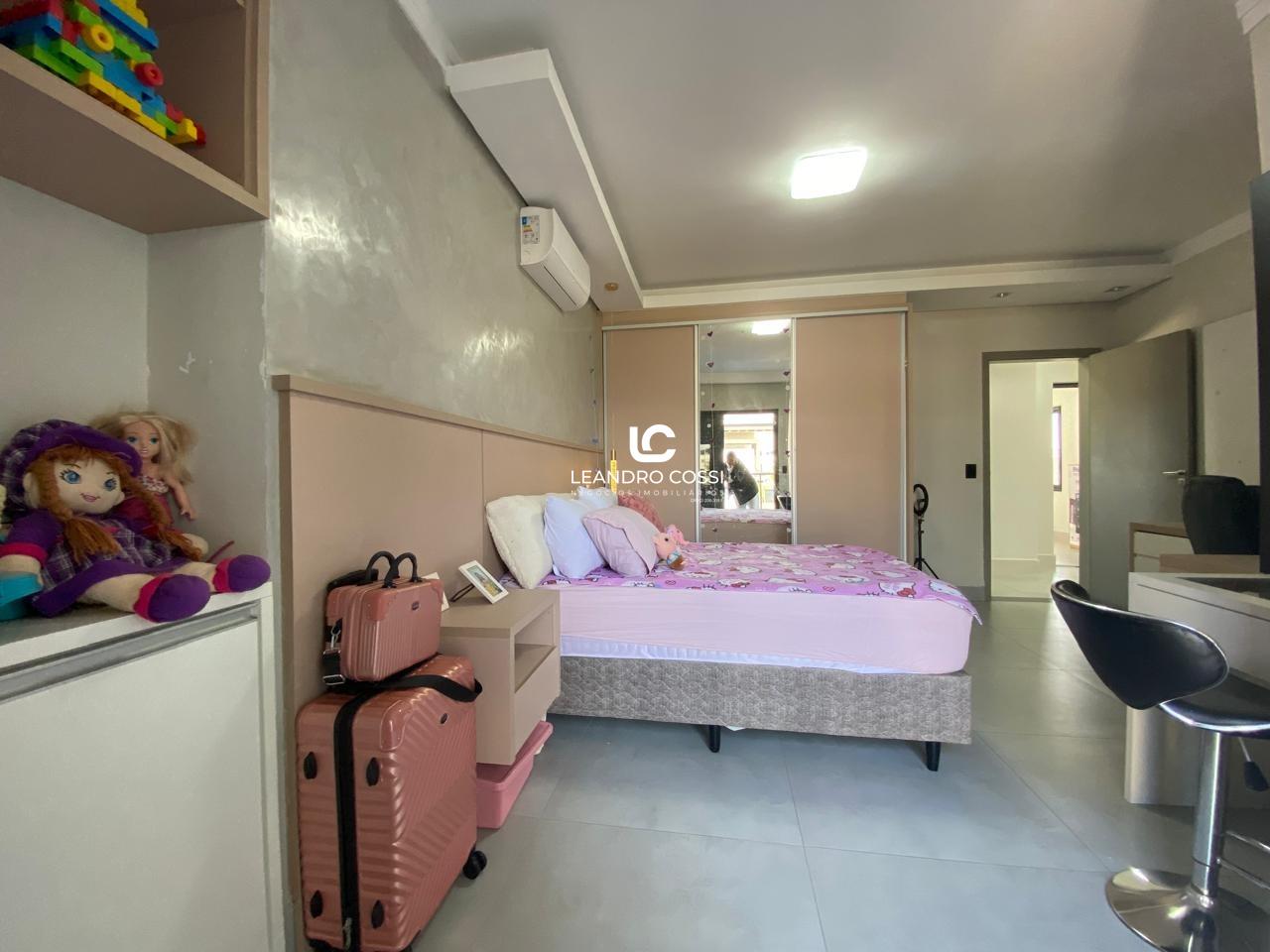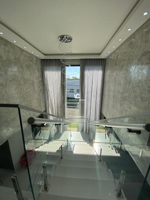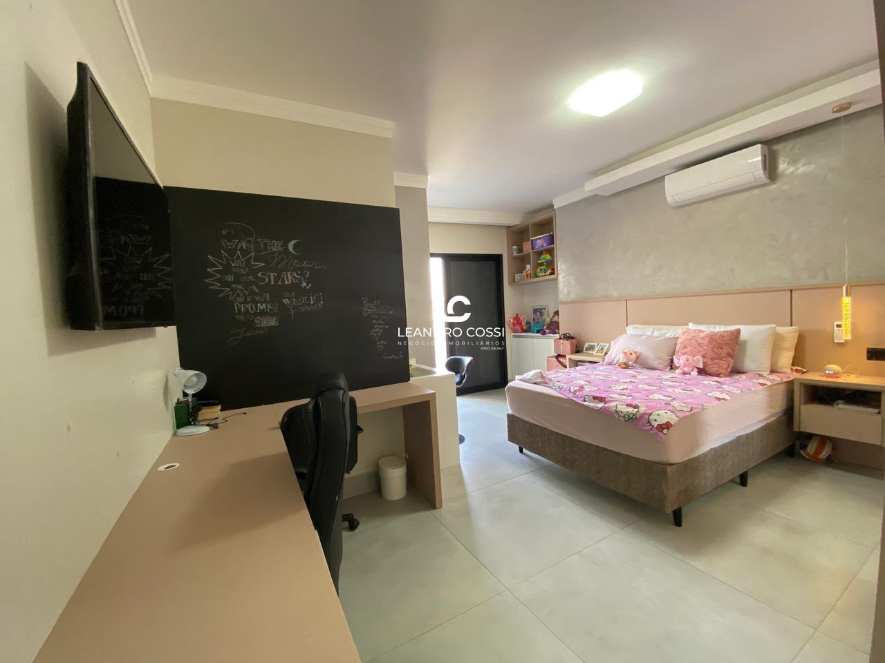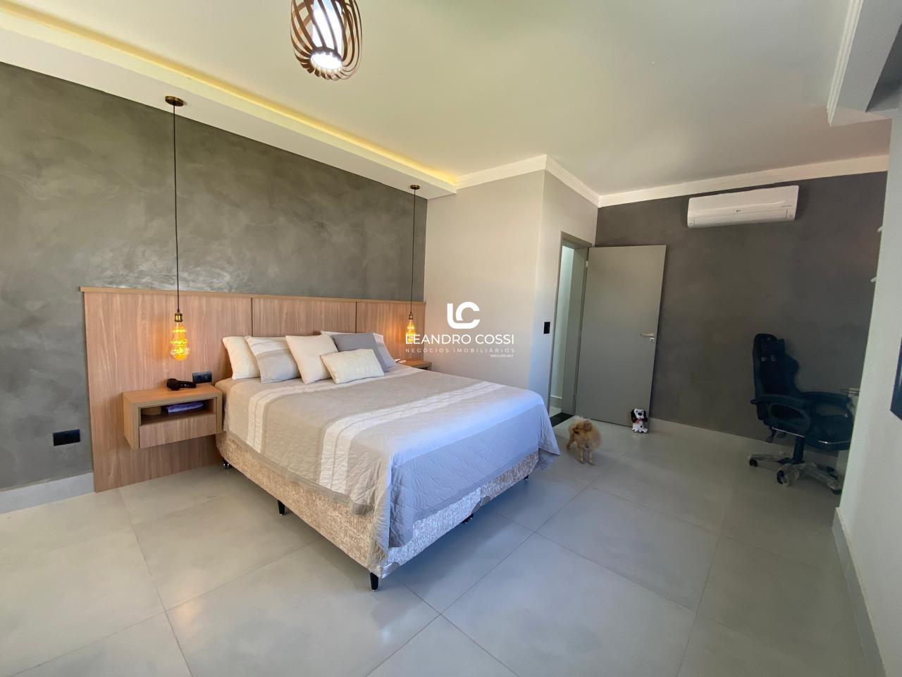 No piso superior, a casa conta com 5 suítes amplas e confortáveis, além de um escritório ideal para home office e um espaço reservado para academia no pavimento superior.