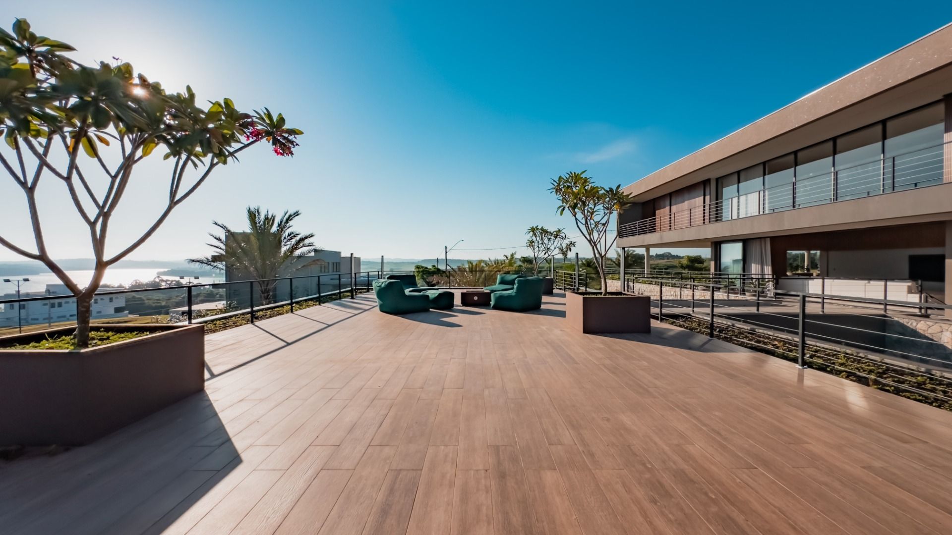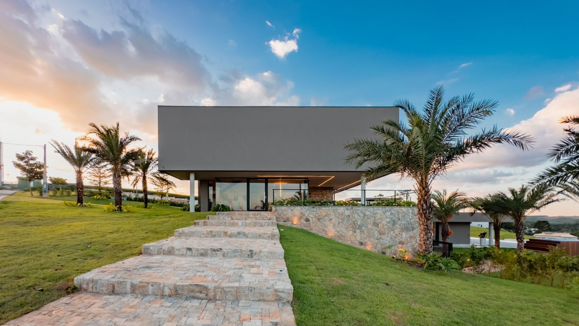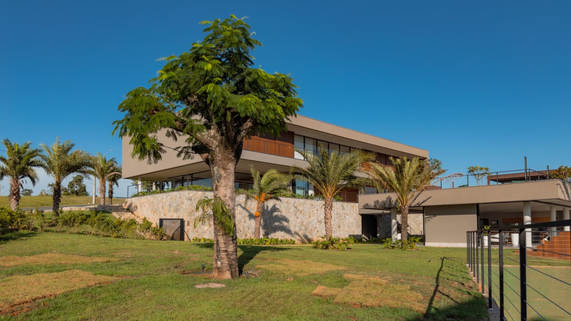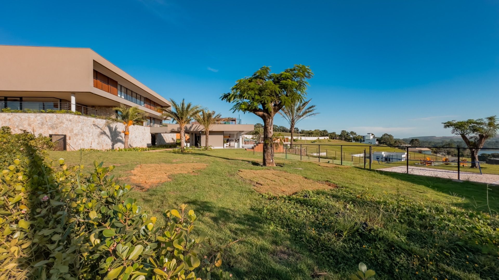 Mais diferenciais da casa, como: Irrigação do jardim e paisagismo 100 % automatizada; Água com aquecimento solar; Sistema de energia fotovoltaica suficiente; Cisterna com capacidade para 70 mil litros de água; Viabilidade aprovada de Heliponto na residência;