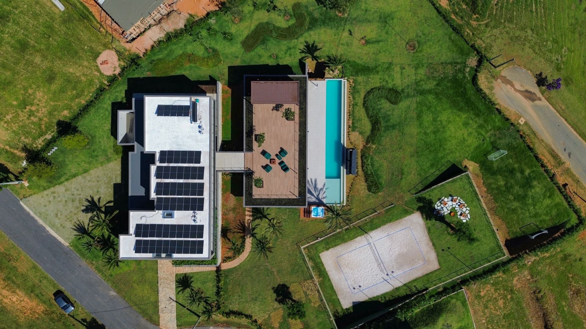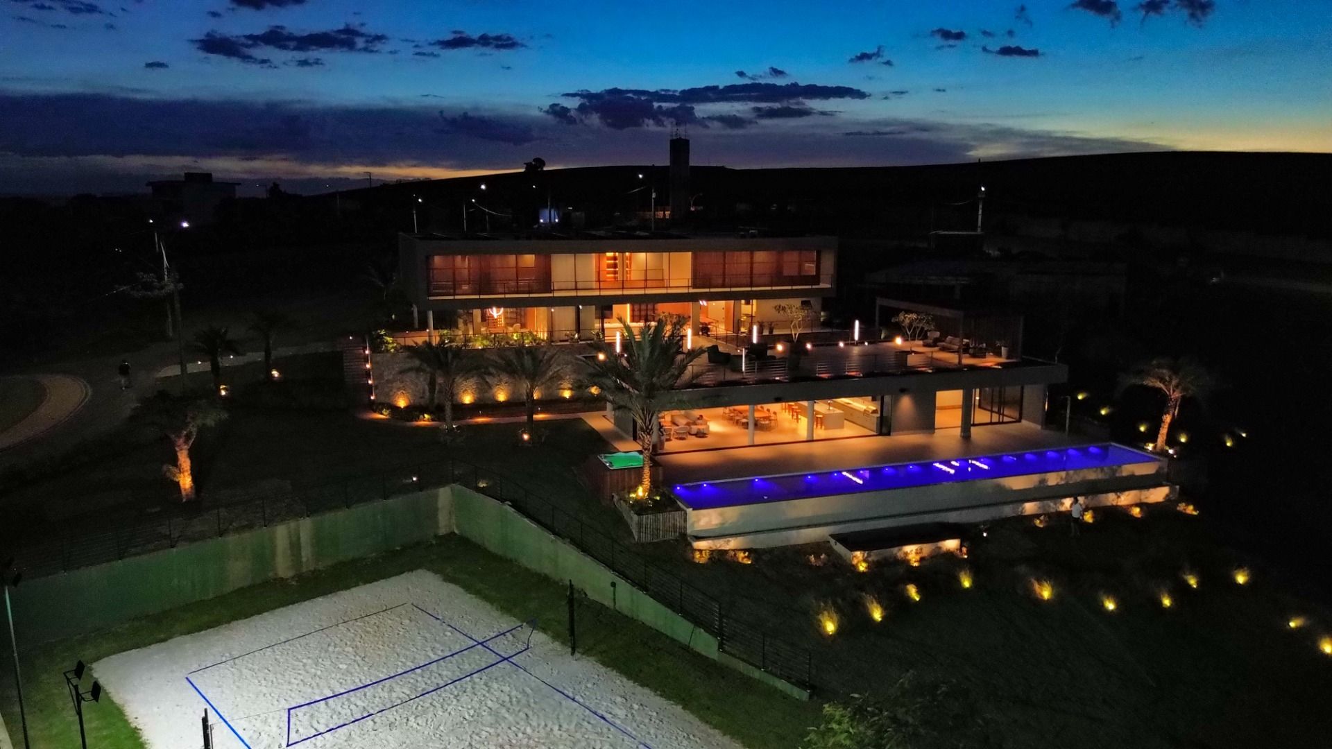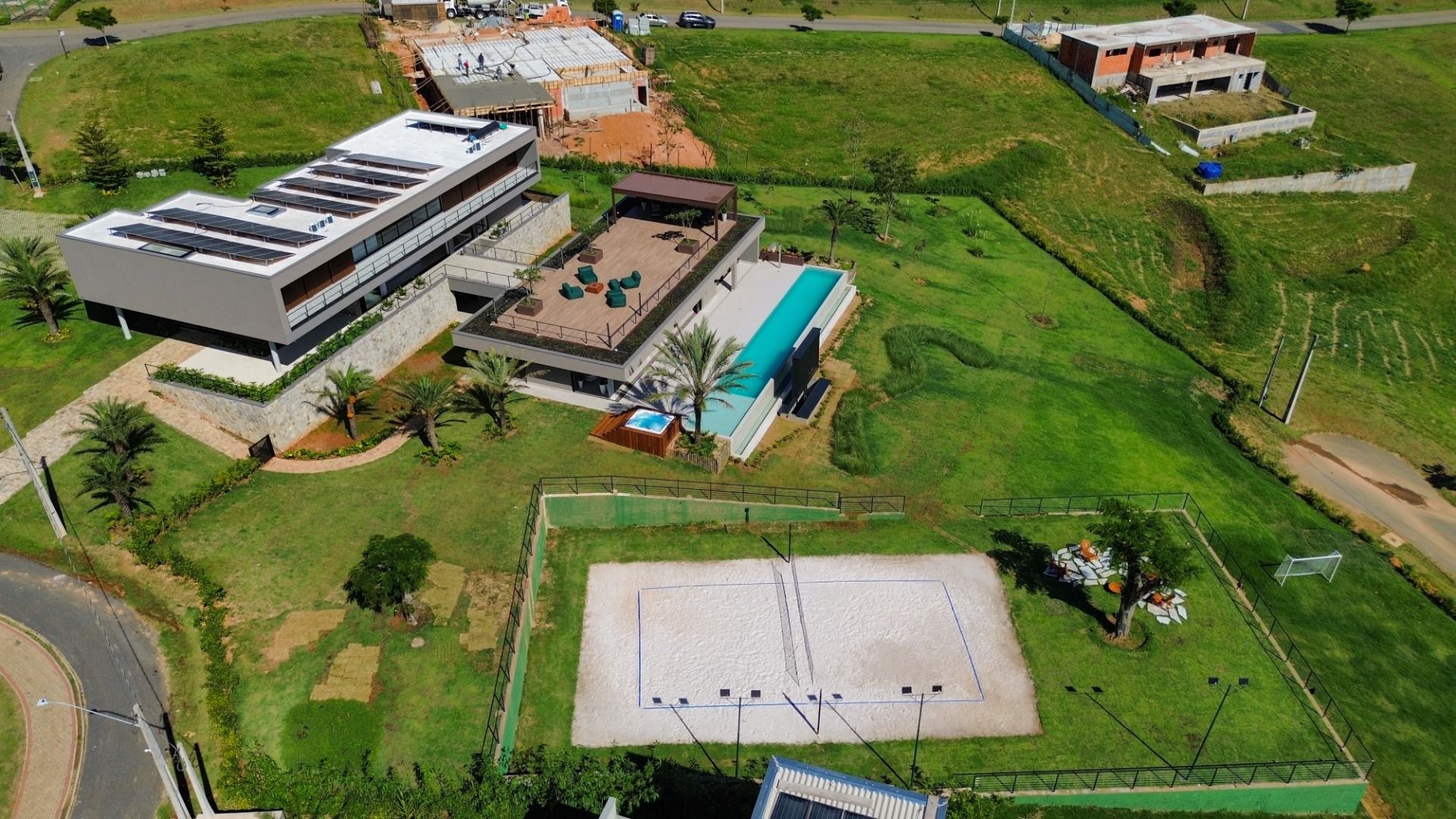 A área externa é um verdadeiro convite ao lazer, com uma piscina refrescante, um telão para sessões de cinema ao ar livre, e um espaço versátil que pode ser transformado em salão de jogos ou academia. Além disso, há uma suíte adicional, uma quadra de areia e um campo de futebol, garantindo diversão para todas as idades.