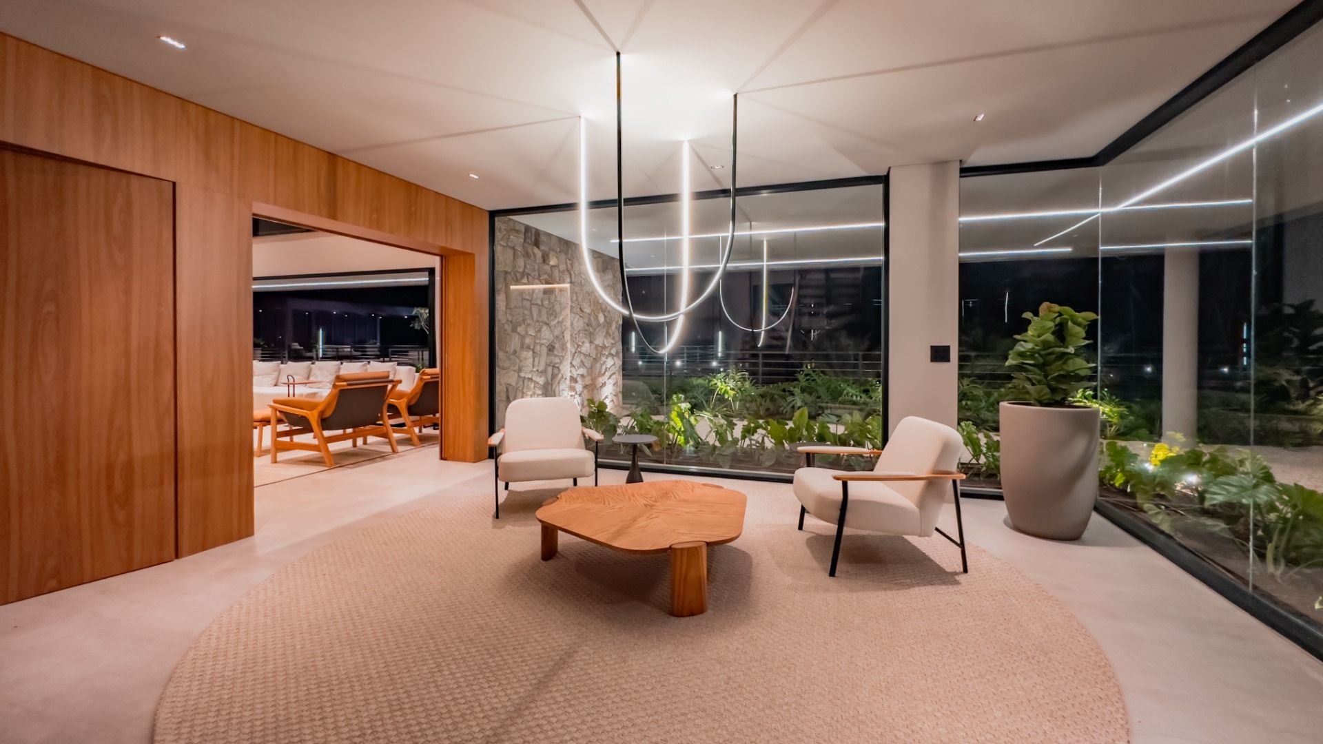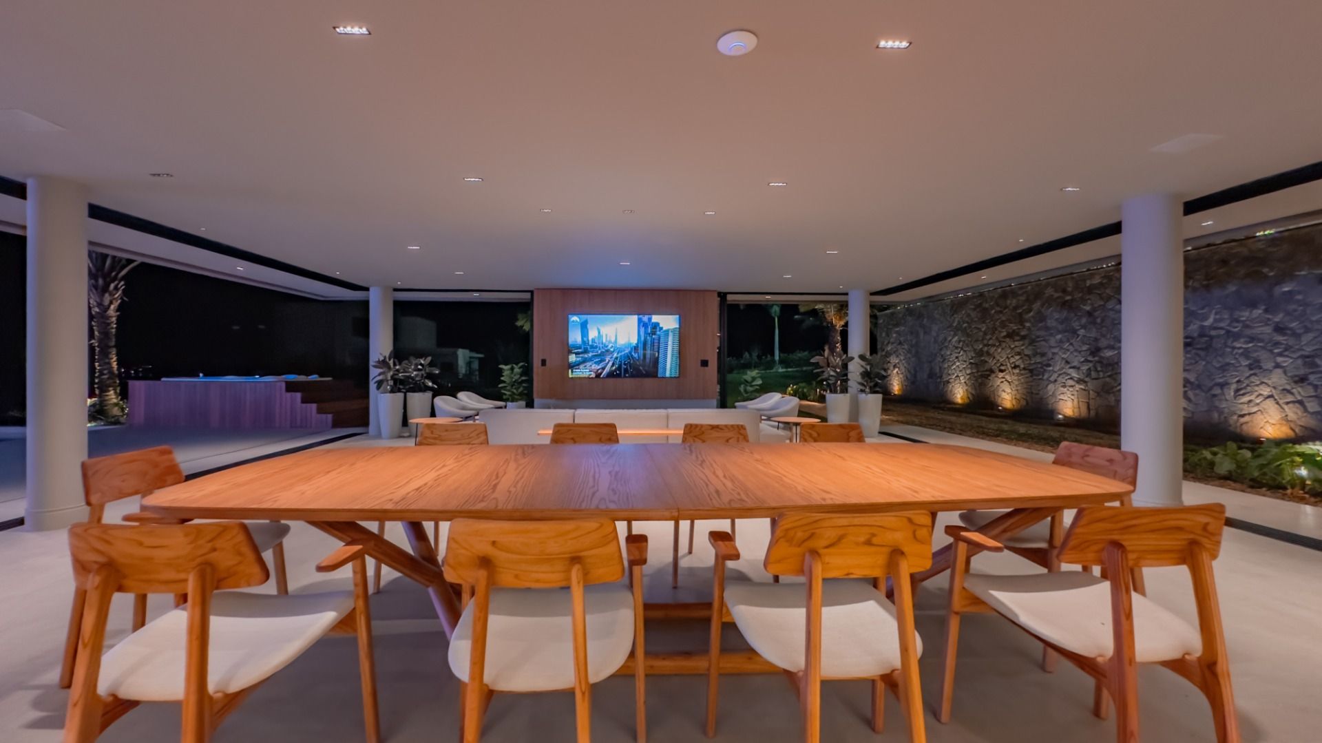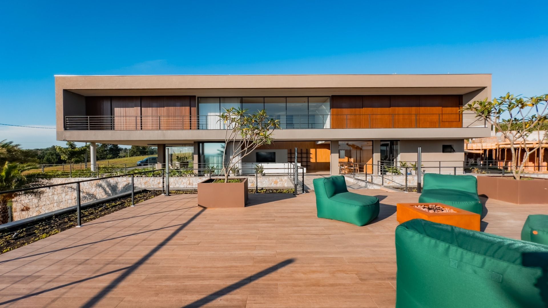 A área externa é um verdadeiro convite ao lazer, com uma piscina refrescante, um telão para sessões de cinema ao ar livre, e um espaço versátil que pode ser transformado em salão de jogos ou academia. Além disso, há uma suíte adicional, uma quadra de areia e um campo de futebol, garantindo diversão para todas as idades.