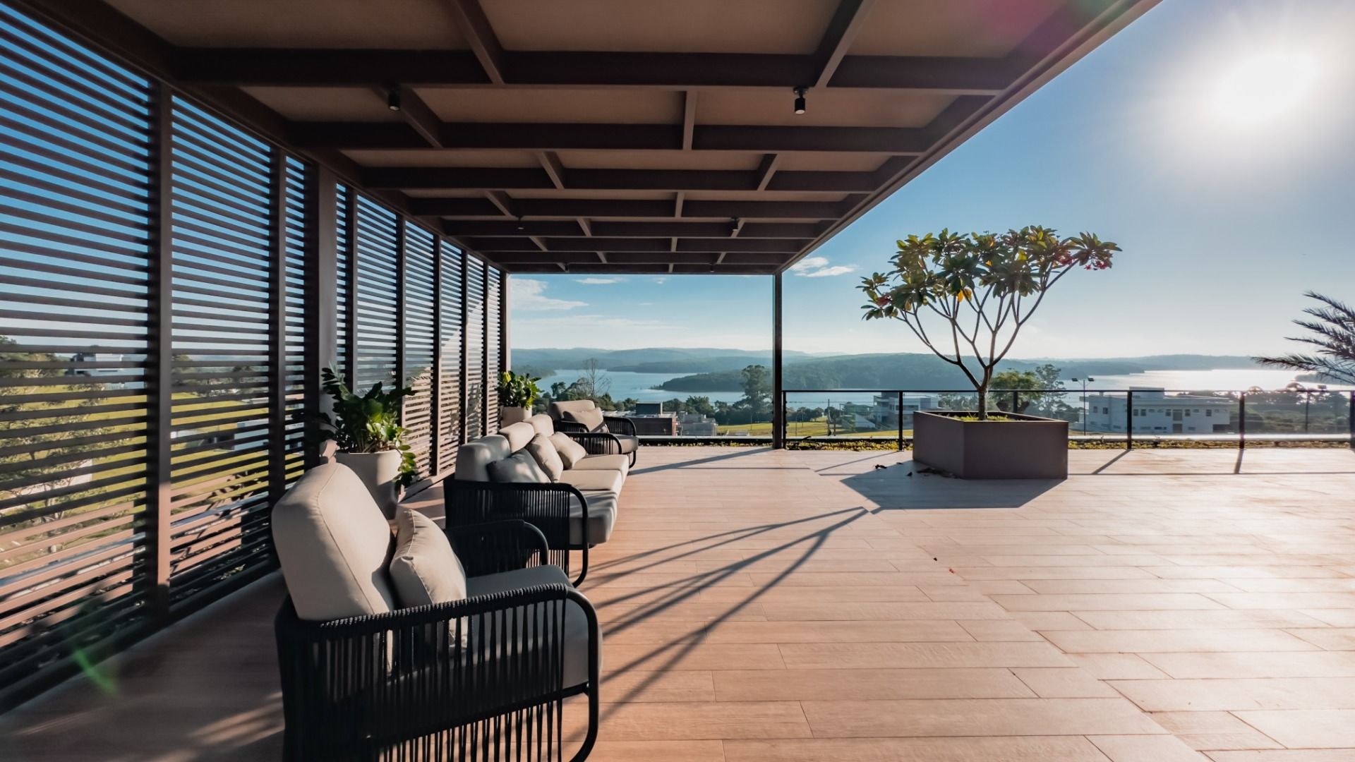 A área social é composta por uma aconchegante sala de estar e uma cozinha totalmente equipada, complementada por uma despensa generosa. No rooftop, você poderá desfrutar de uma vista espetacular da represa, enquanto o espaço gourmet, equipado para receber amigos e familiares, promete momentos inesquecíveis.