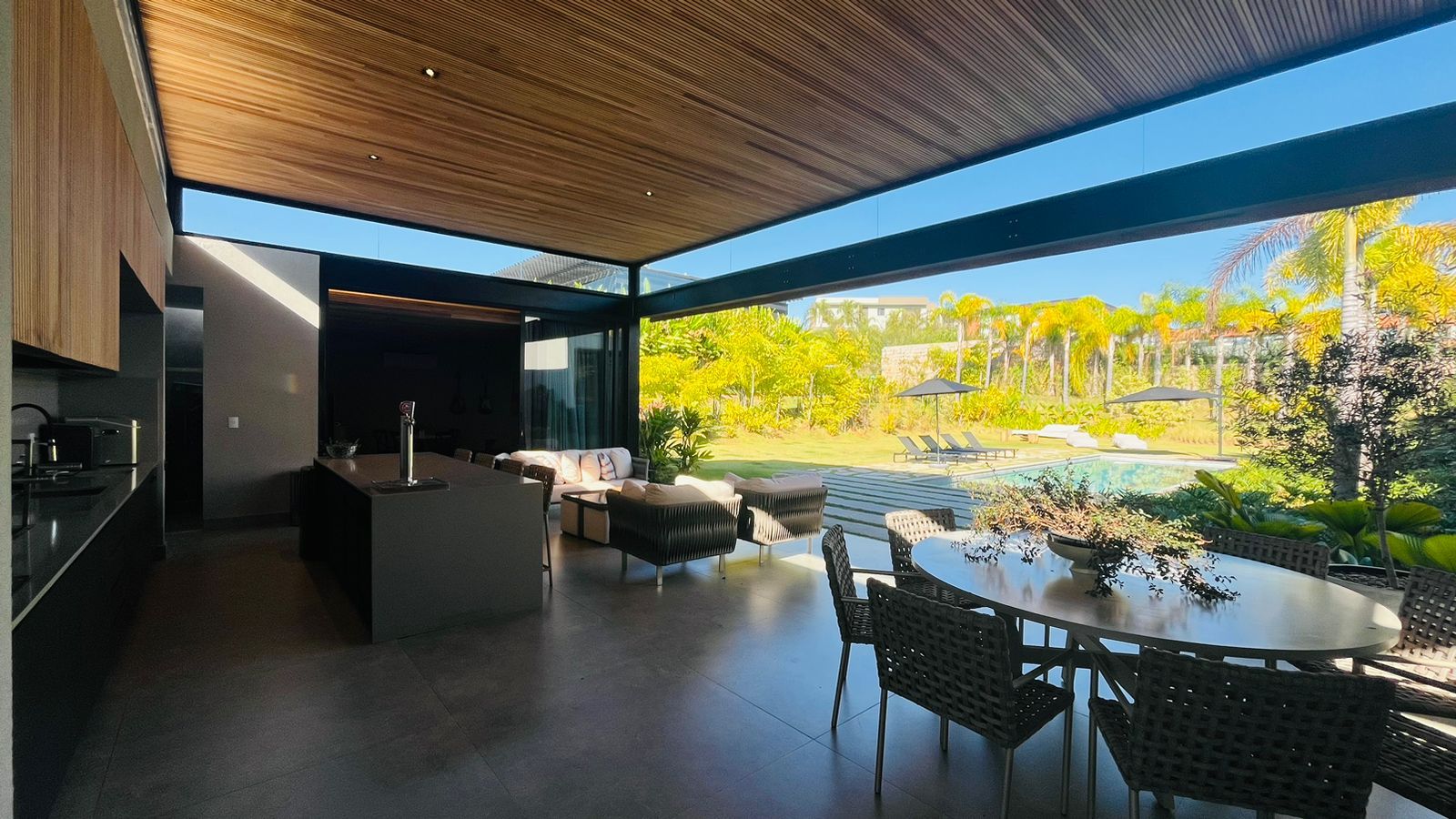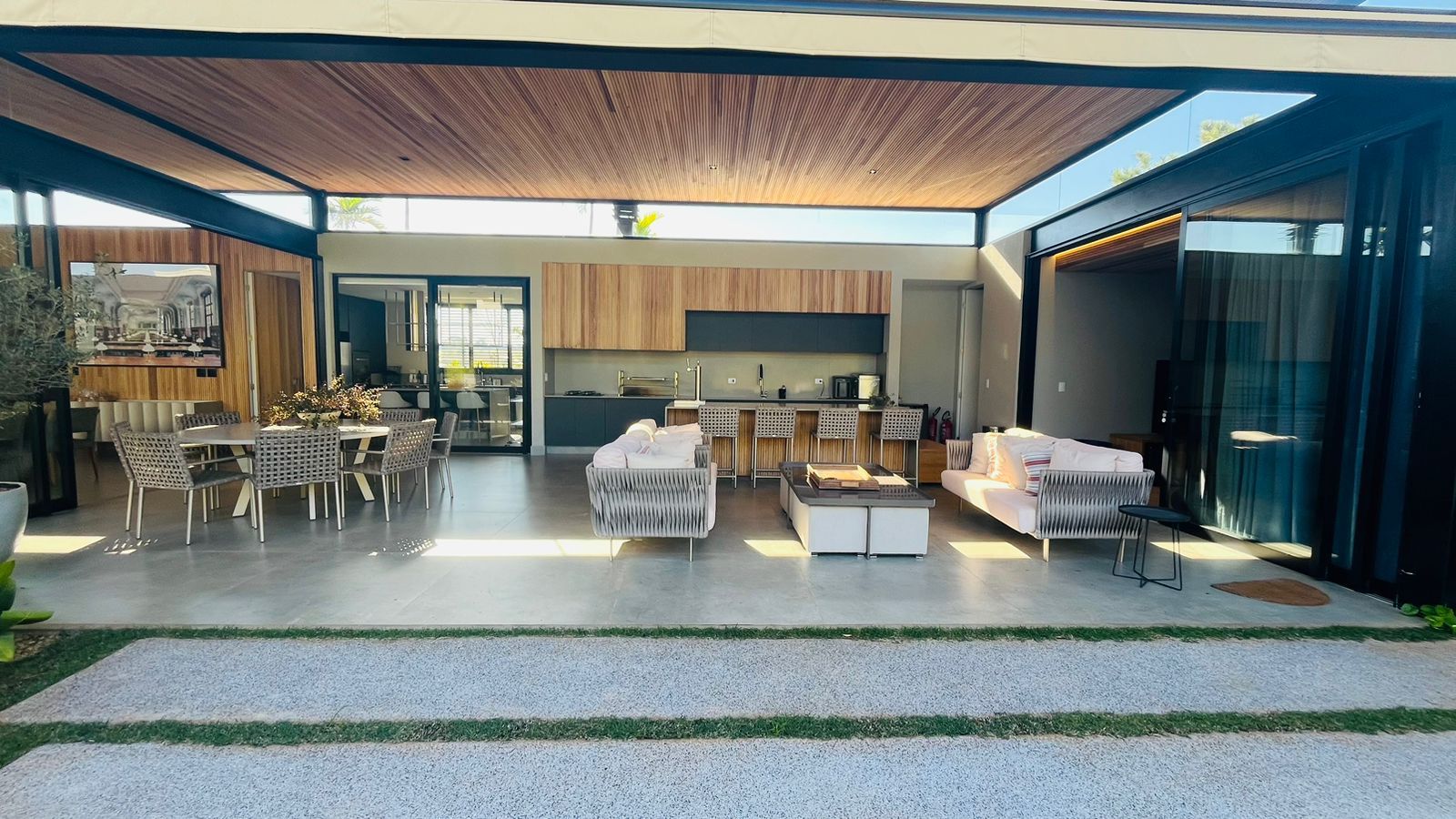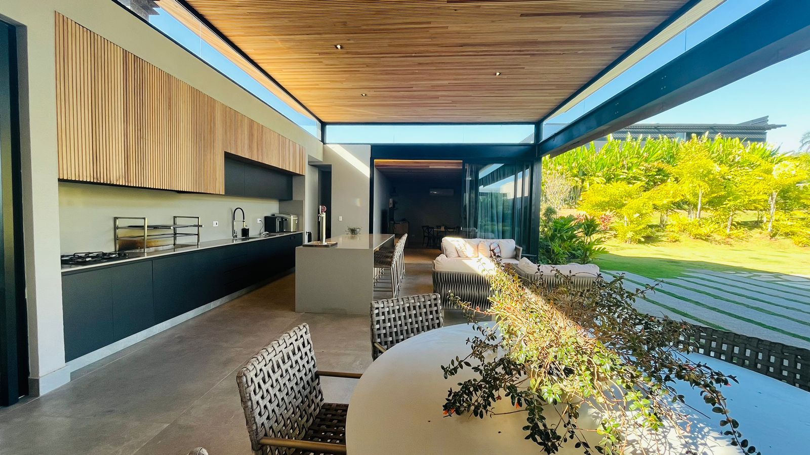 Residência de alto padrão com arquitetura moderna assinada pelo Arquiteto Cristiano Ribeiro, oferecendo sofisticação, integração e conforto em cada ambiente. São 590 m² de área construída em um amplo terreno de 2.200 m², ideal para quem busca exclusividade e contato com a natureza.