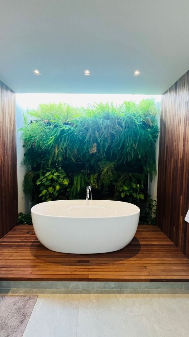 Suíte master com hidromassagem e jardim vertical