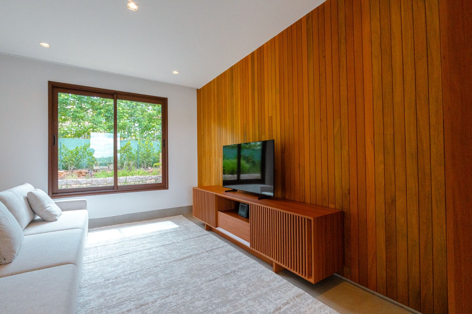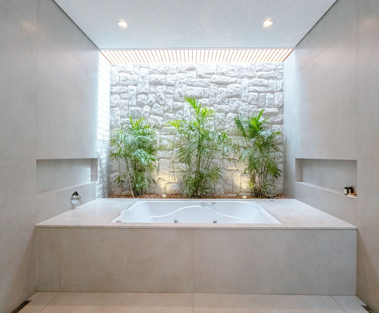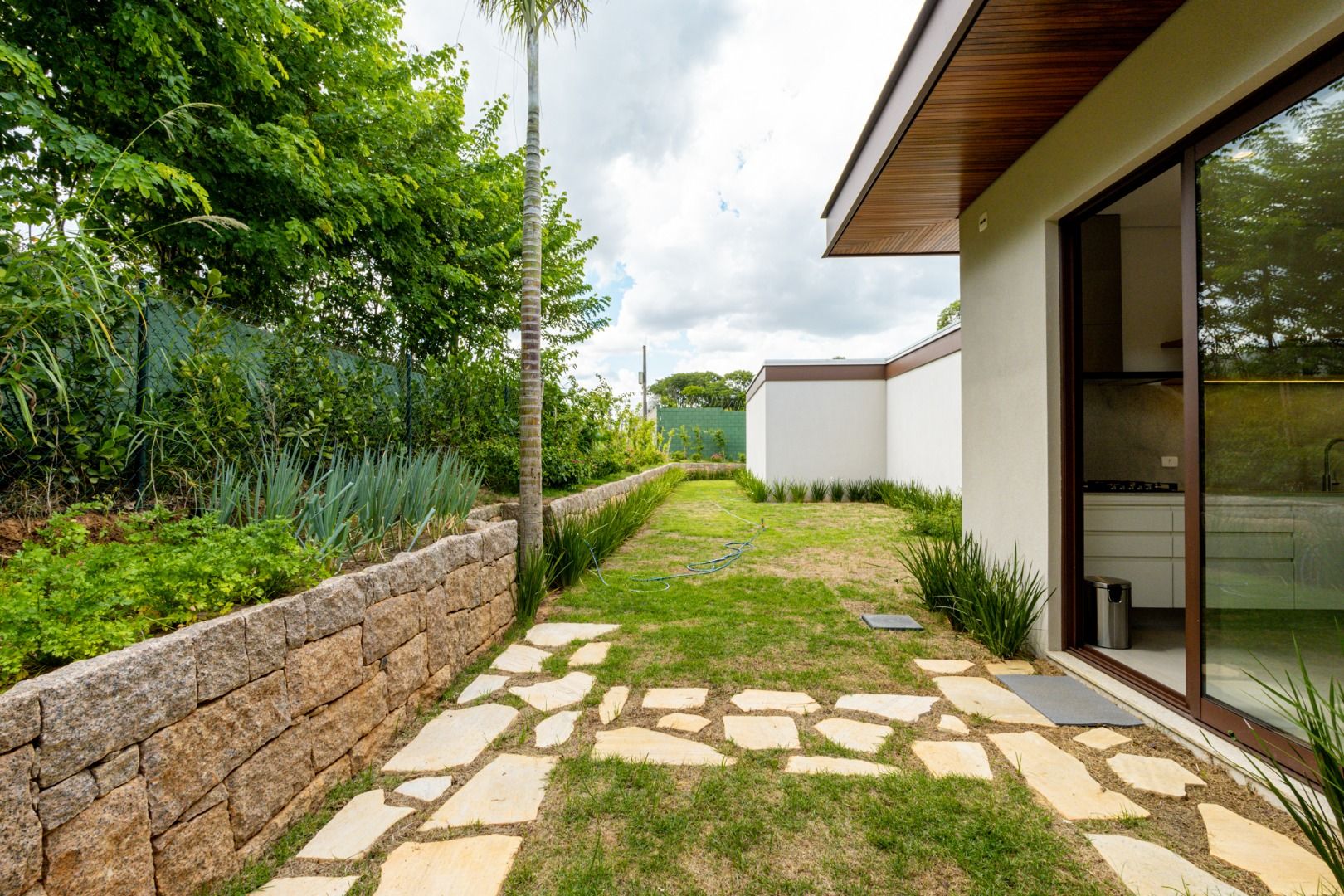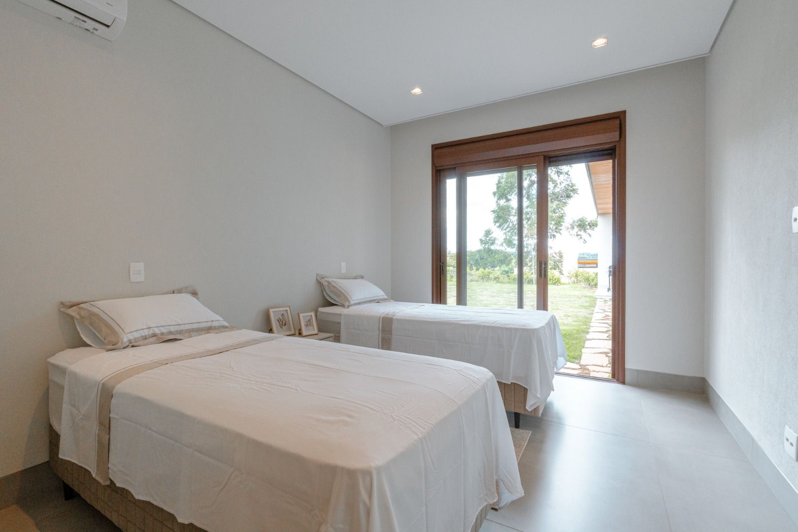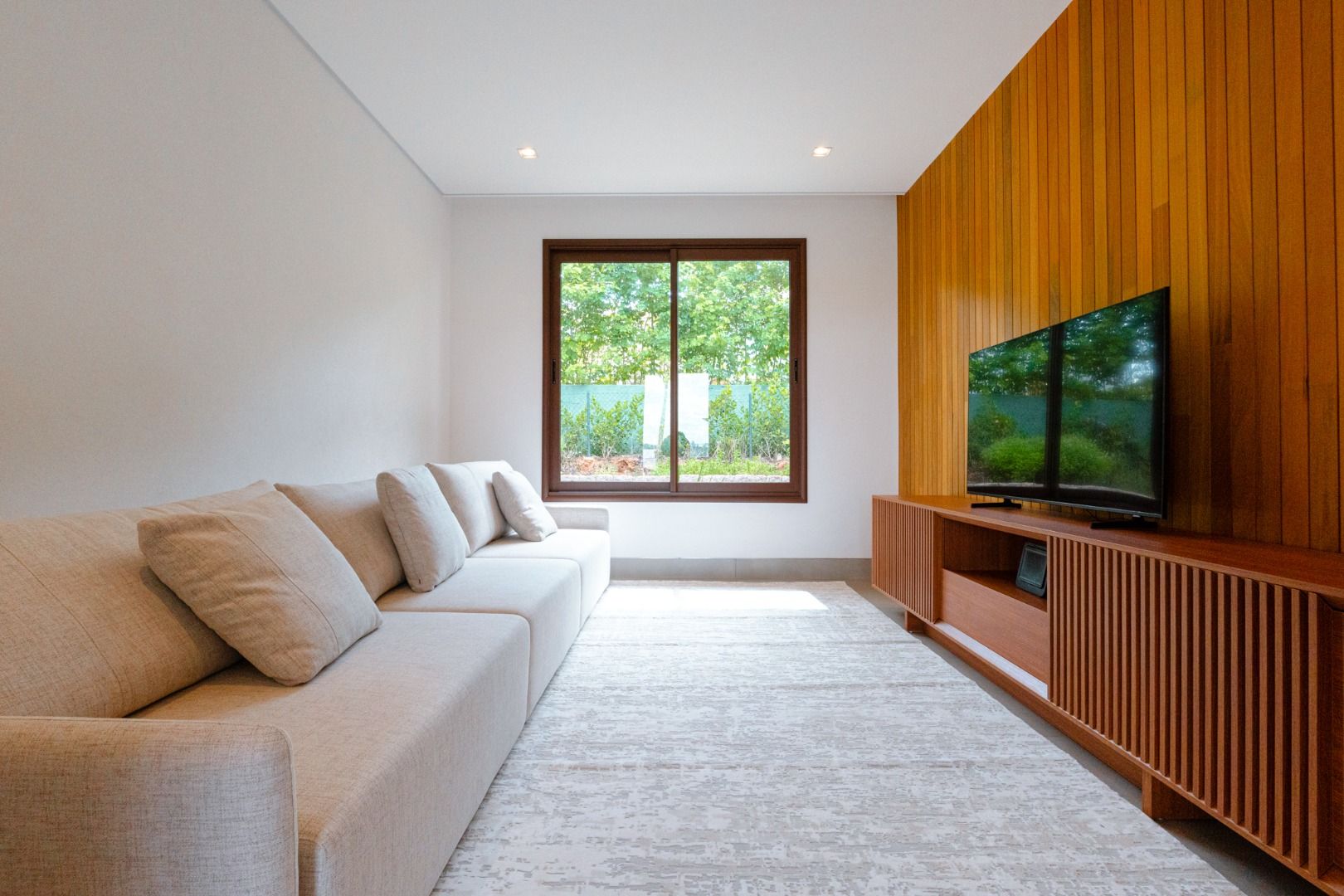 Dispõe de 5 suítes espaçosas, todas com vista para a área externa, incluindo uma suíte master com closet, chuveiros duplos e banheira de imersão. Sala de estar com pé-direito duplo, painel em madeira ripada e um charmoso lavabo com jardim interno. Espaço gourmet sofisticado, integrado à cozinha e com vista para a área de lazer, além de uma sala de TV anexa.