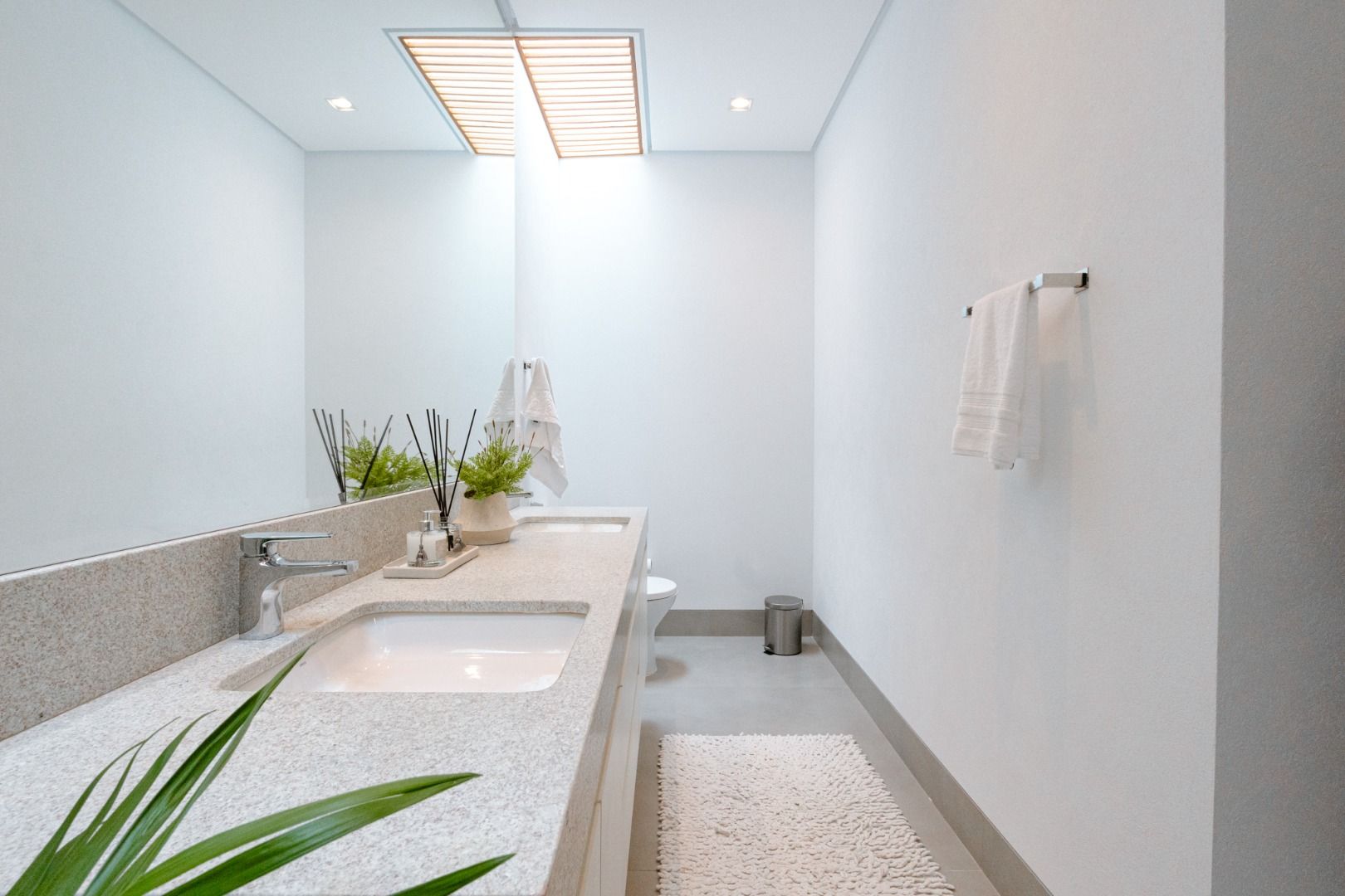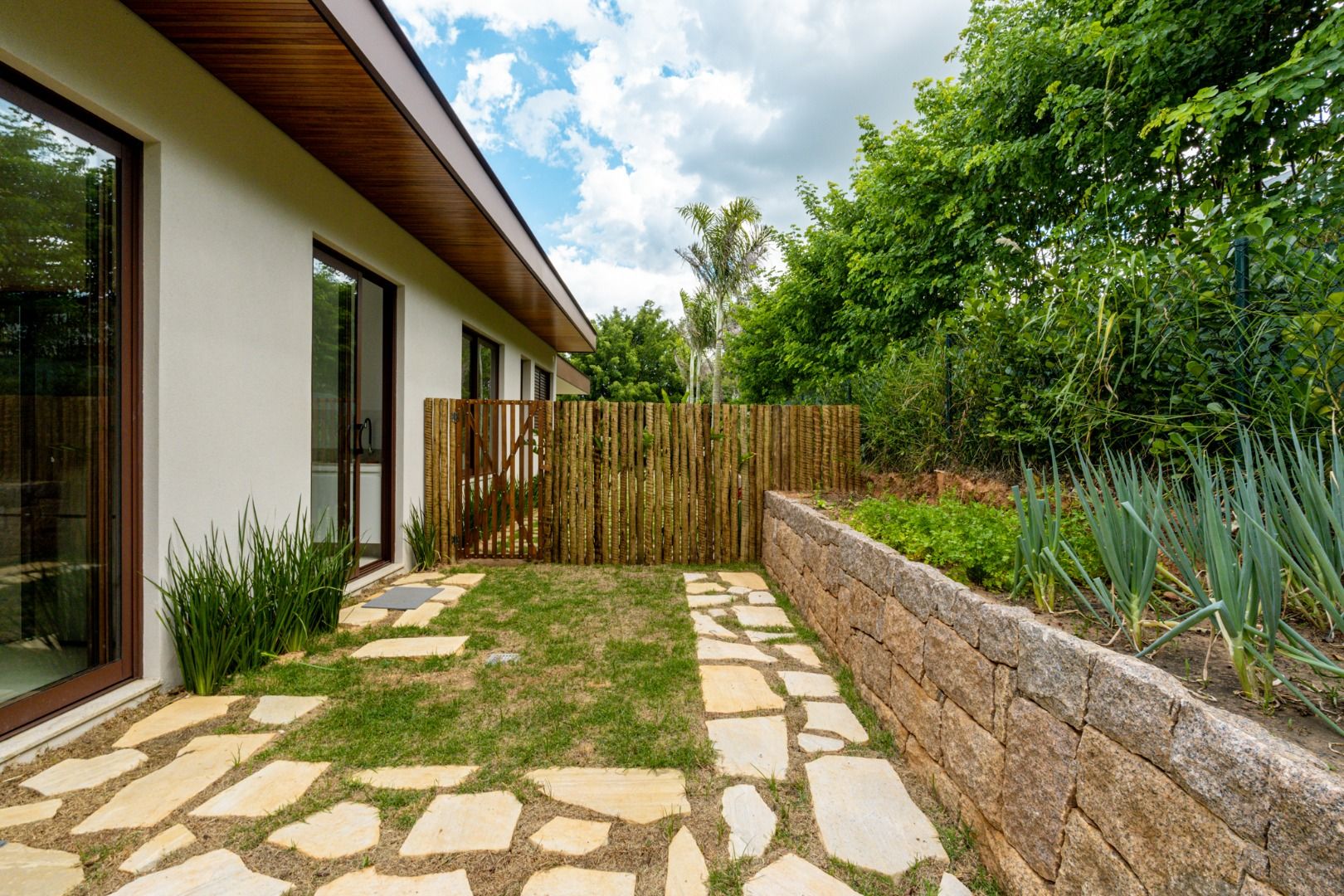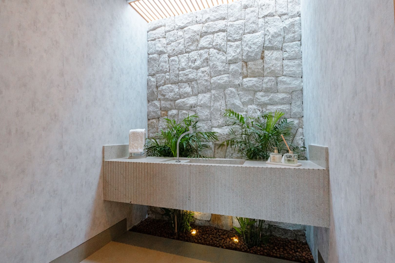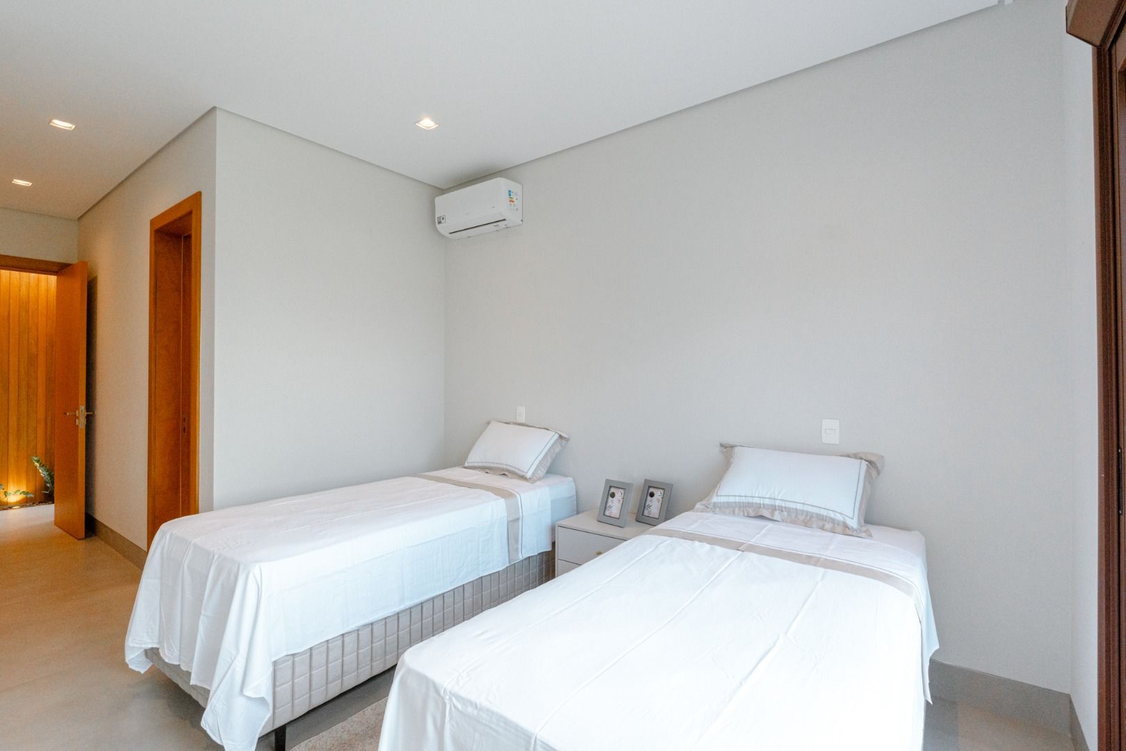 Dispõe de 5 suítes espaçosas, todas com vista para a área externa, incluindo uma suíte master com closet, chuveiros duplos e banheira de imersão. Sala de estar com pé-direito duplo, painel em madeira ripada e um charmoso lavabo com jardim interno. Espaço gourmet sofisticado, integrado à cozinha e com vista para a área de lazer, além de uma sala de TV anexa.