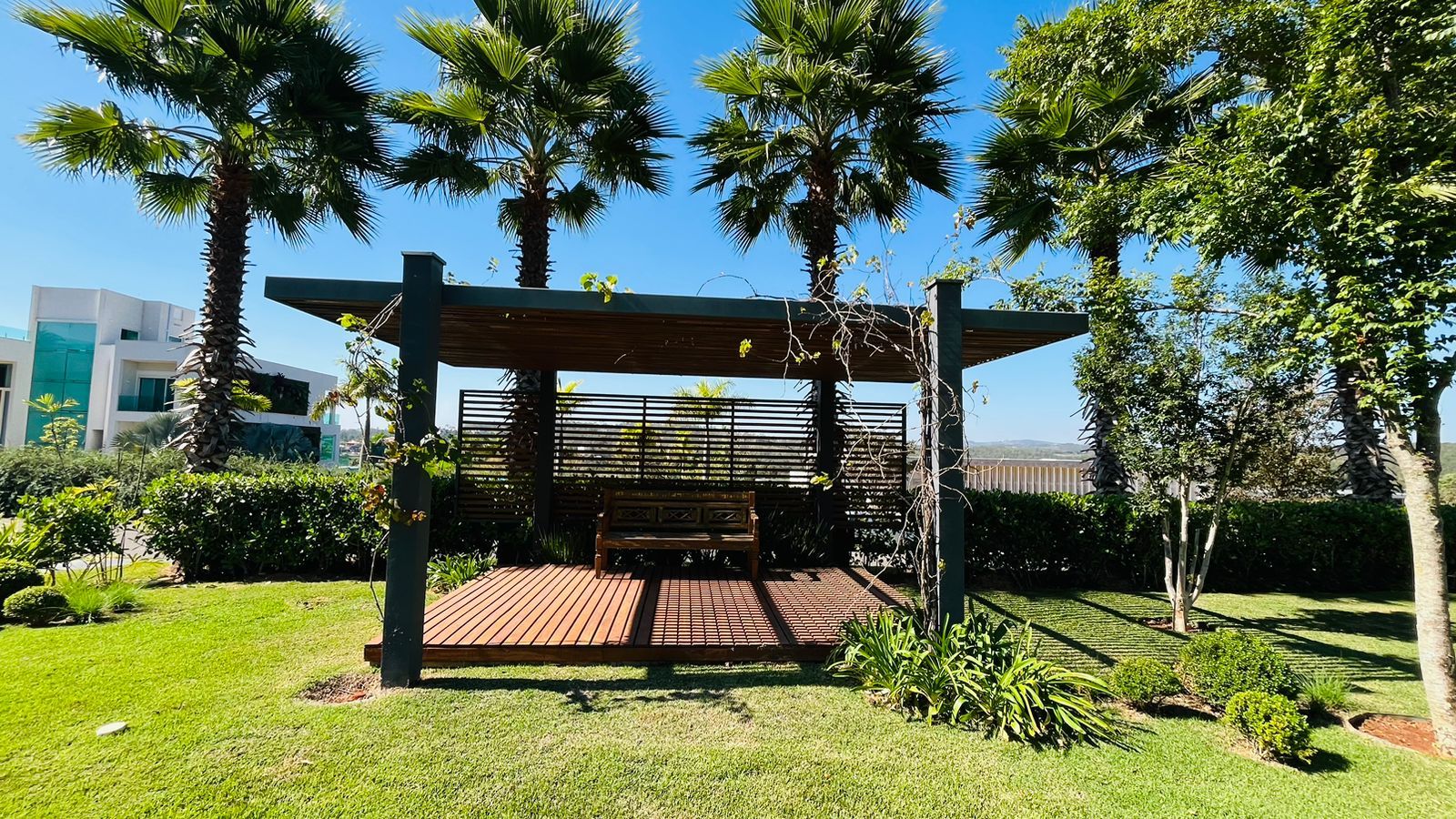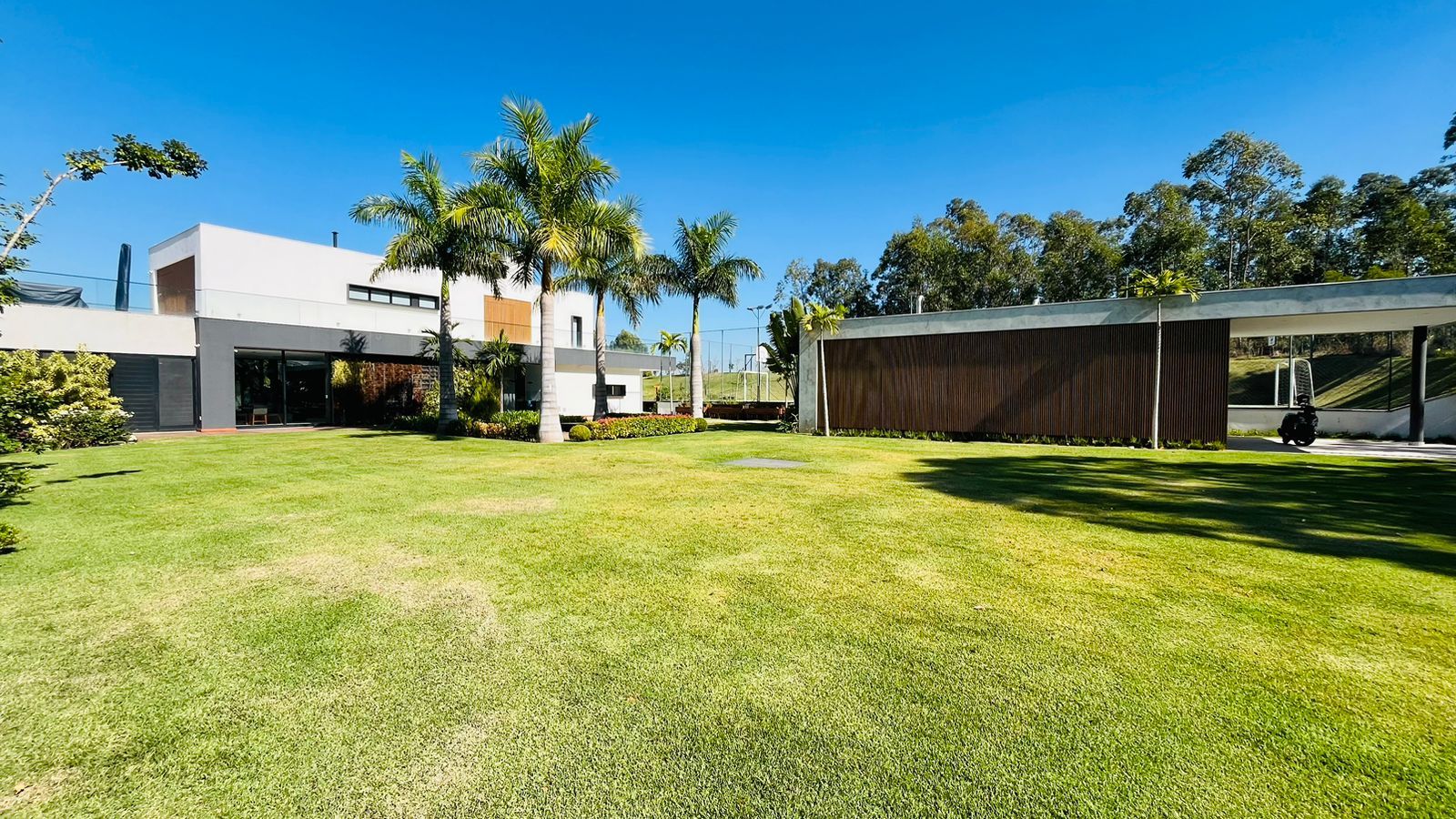 Amplo quintal gramado para momentos de descanso e descontração